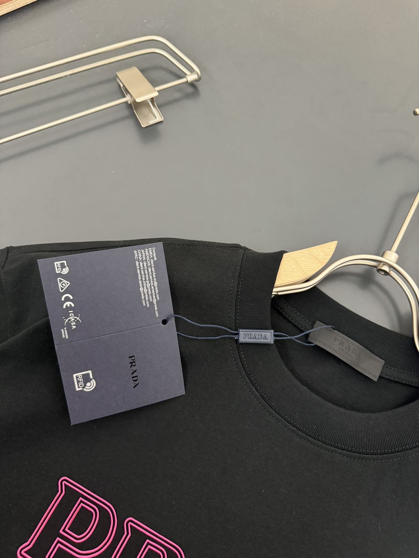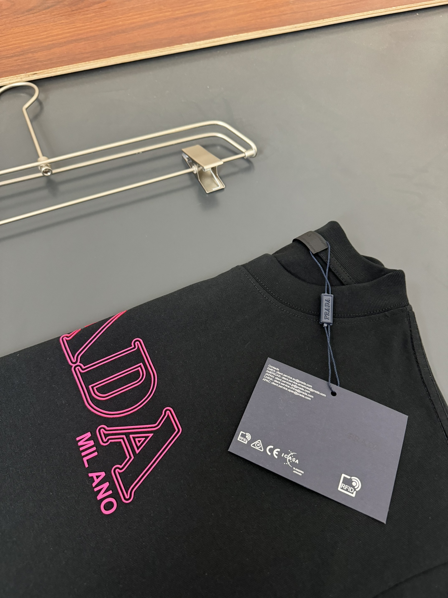 這款衣服是AAAAA 1:1 質量(非常棒). 使用了和原版一模一樣的材料. 商標部分也保持了和普拉達/Prada一樣. 圖片拍攝是實物衣服拍攝, 您所收到的實物保證和我們圖片一模一樣.
