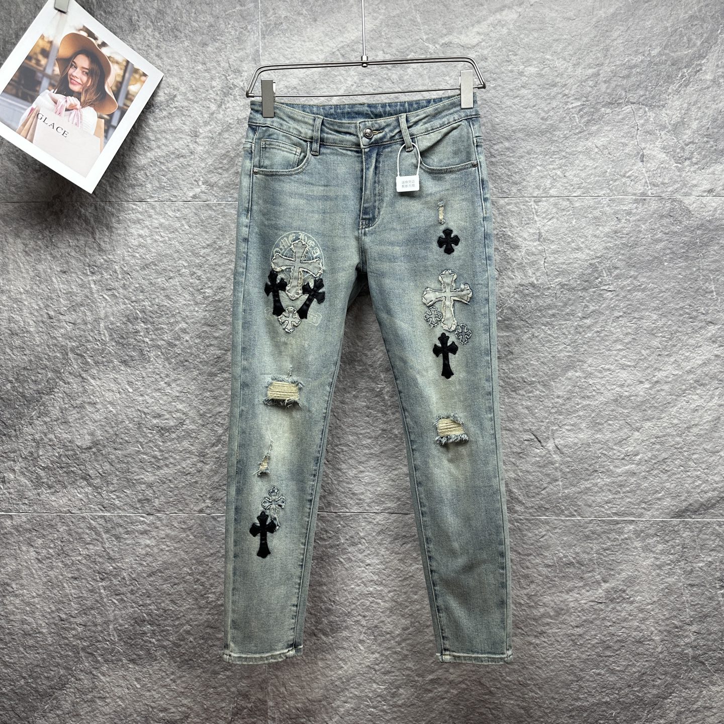 這款衣服是AAAAA 1:1 質量(非常棒). 使用了和原版一模一樣的材料. 商標部分也保持了和鉻心/Chrome Hearts一樣. 圖片拍攝是實物衣服拍攝, 您所收到的實物保證和我們圖片一模一樣.