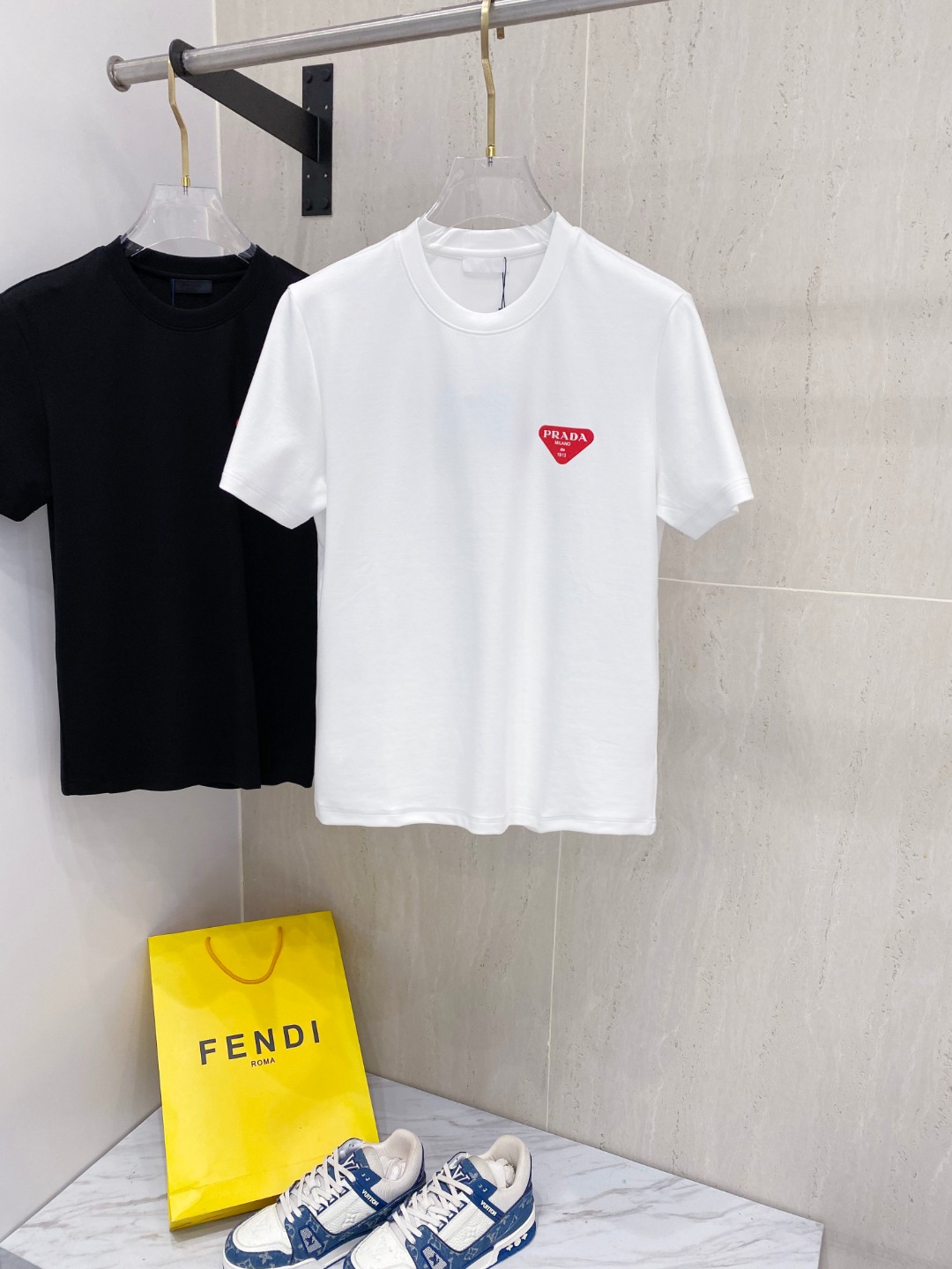 這款衣服是AAAAA 1:1 質量(非常棒). 使用了和原版一模一樣的材料. 商標部分也保持了和普拉達/Prada一樣. 圖片拍攝是實物衣服拍攝, 您所收到的實物保證和我們圖片一模一樣.