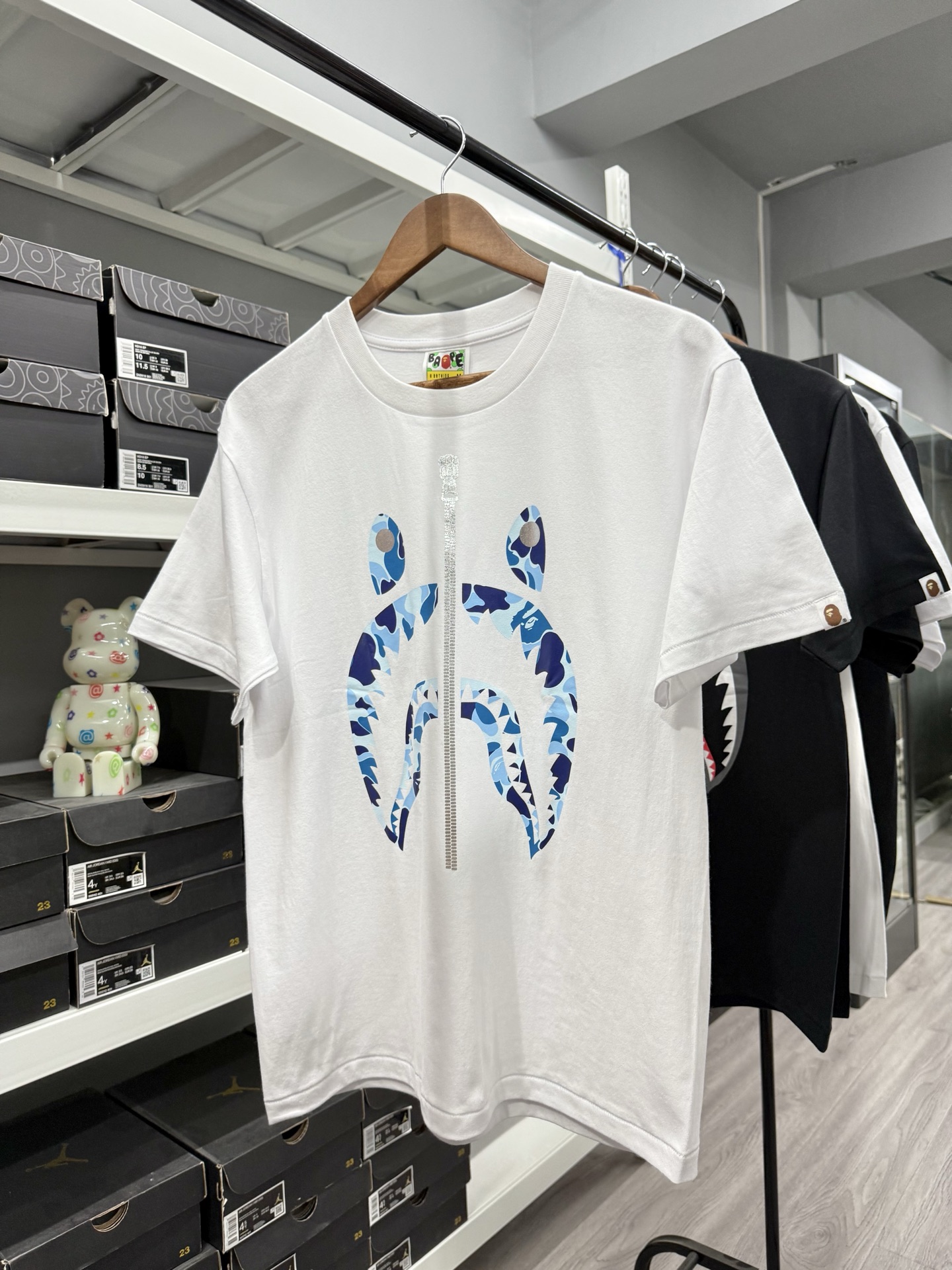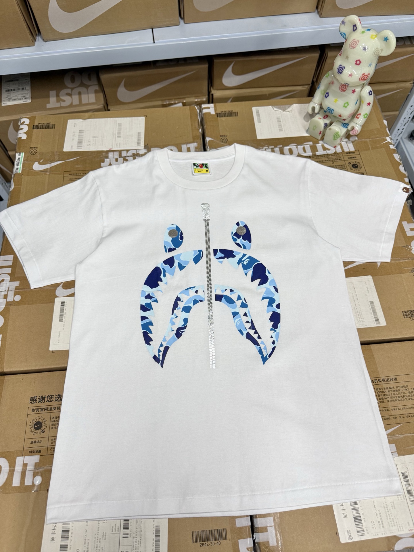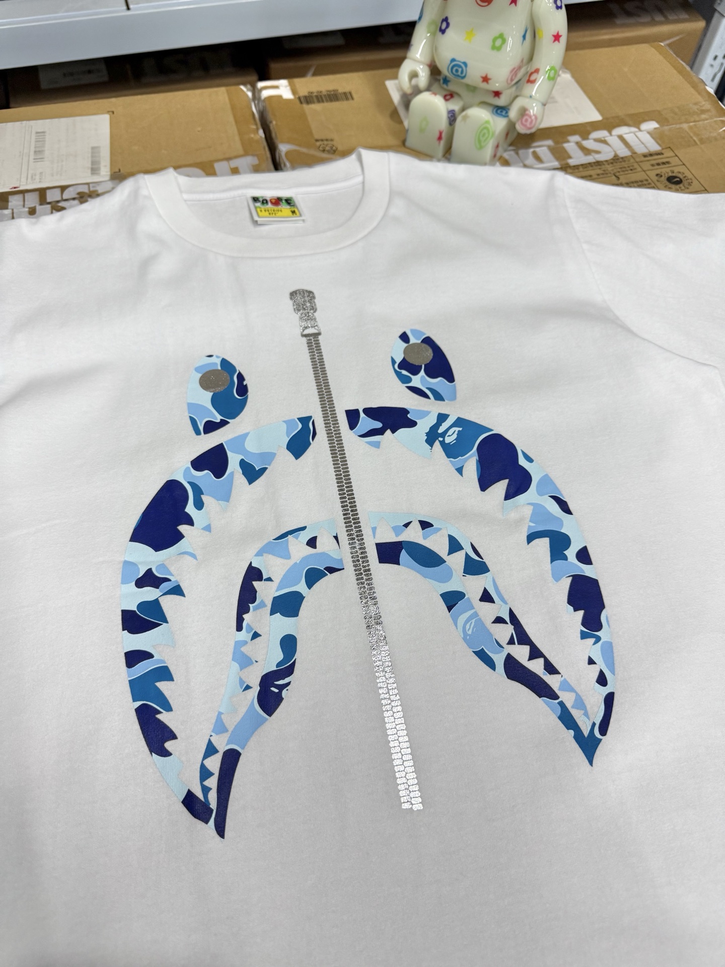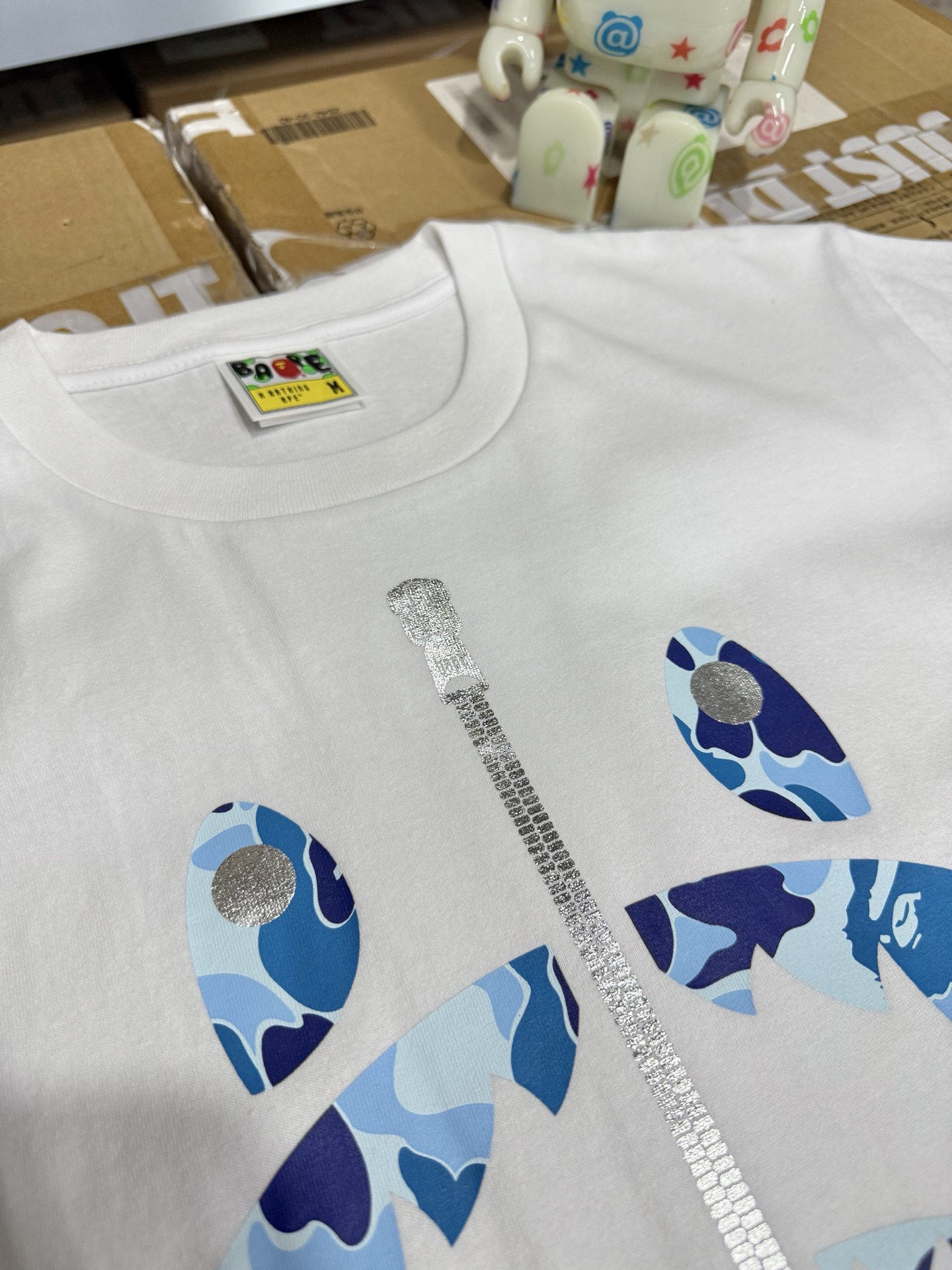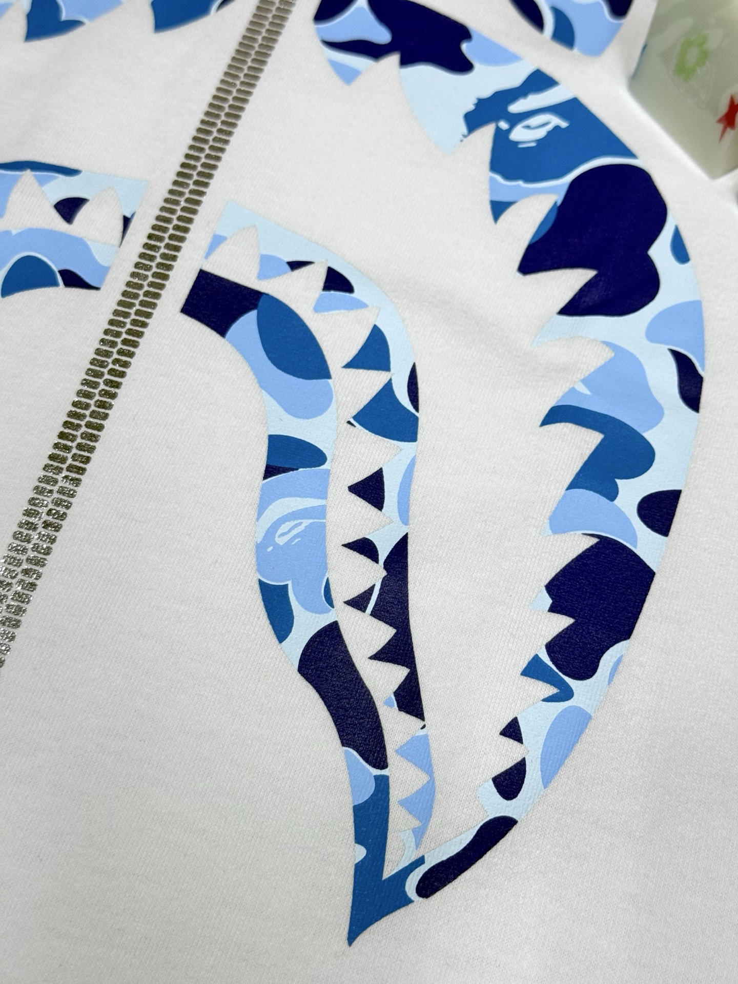 這款衣服是AAAAA 1:1 質量(非常棒). 使用了和原版一模一樣的材料. 商標部分也保持了和Bape一樣. 圖片拍攝是實物衣服拍攝, 您所收到的實物保證和我們圖片一模一樣.