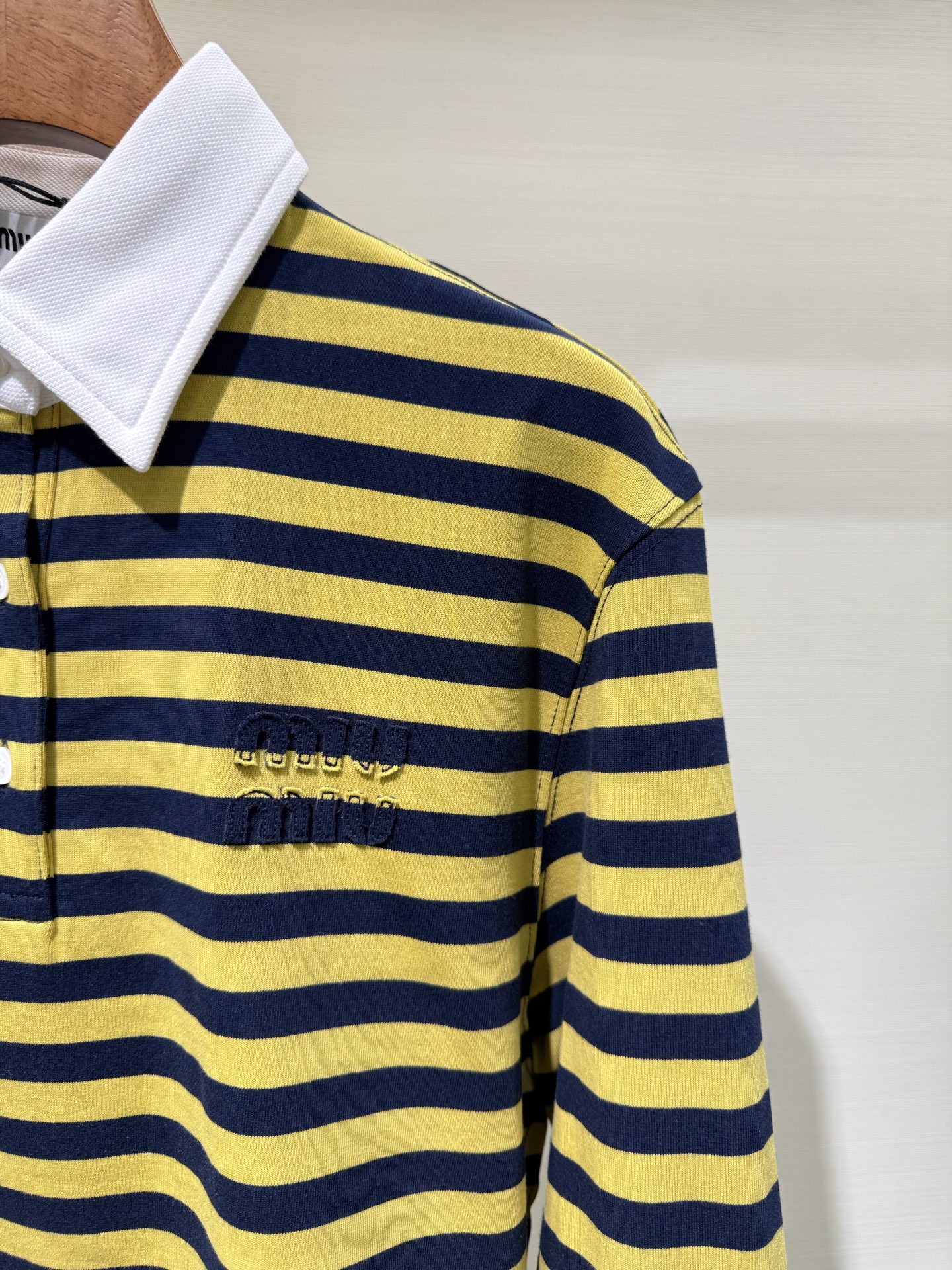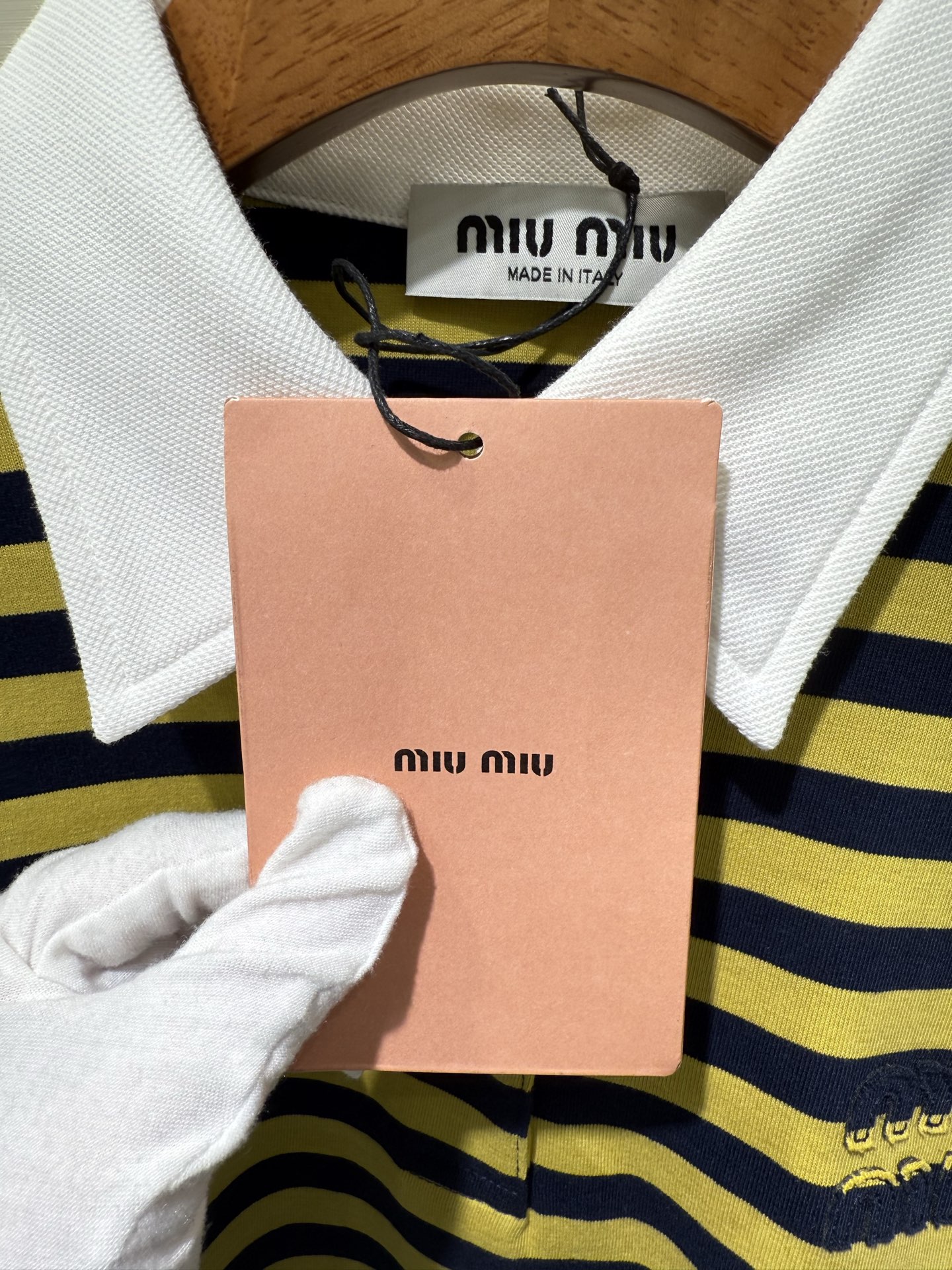 這款衣服是AAAAA 1:1 質量(非常棒). 使用了和原版一模一樣的材料. 商標部分也保持了和繆繆/Miu Miu一樣. 圖片拍攝是實物衣服拍攝, 您所收到的實物保證和我們圖片一模一樣.