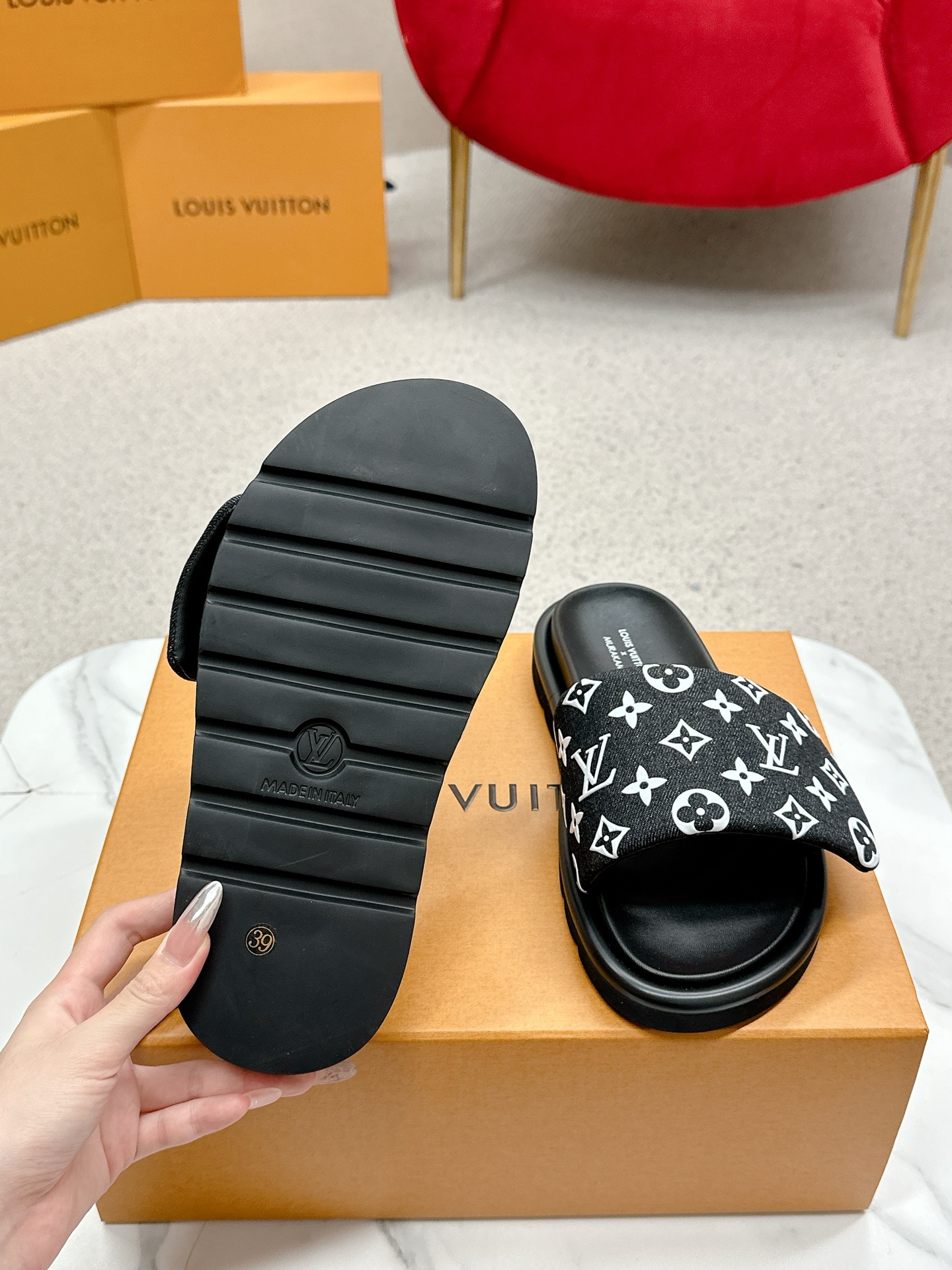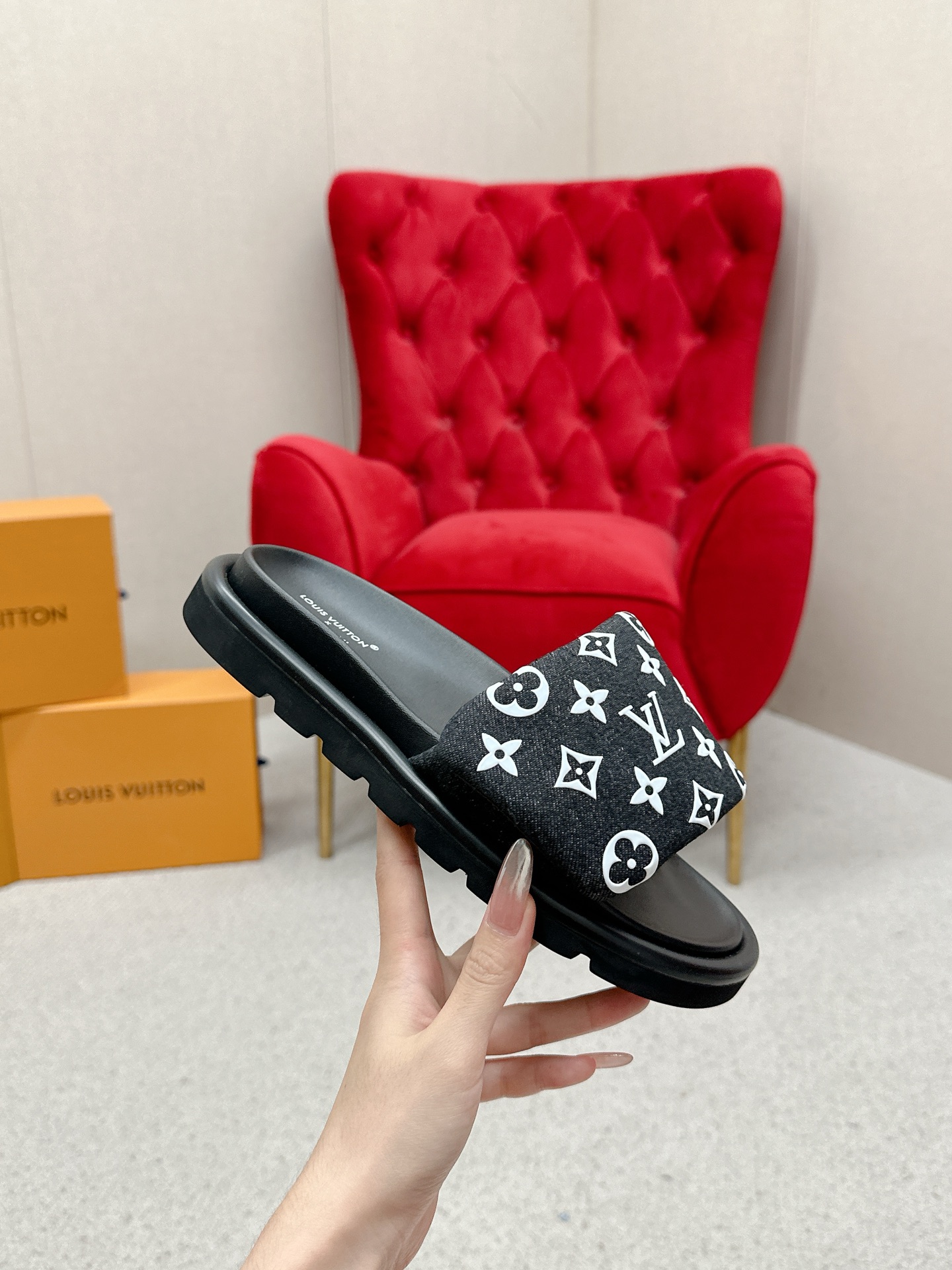 這款鞋子是AAAAA 1:1 質量(非常棒). 使用了和原版一模一樣的材料. 商標部分也保持了和路易威登/Louis Vuitton一樣. 圖片拍攝是實物鞋子拍攝, 您所收到的實物保證和我們圖片一模一樣.