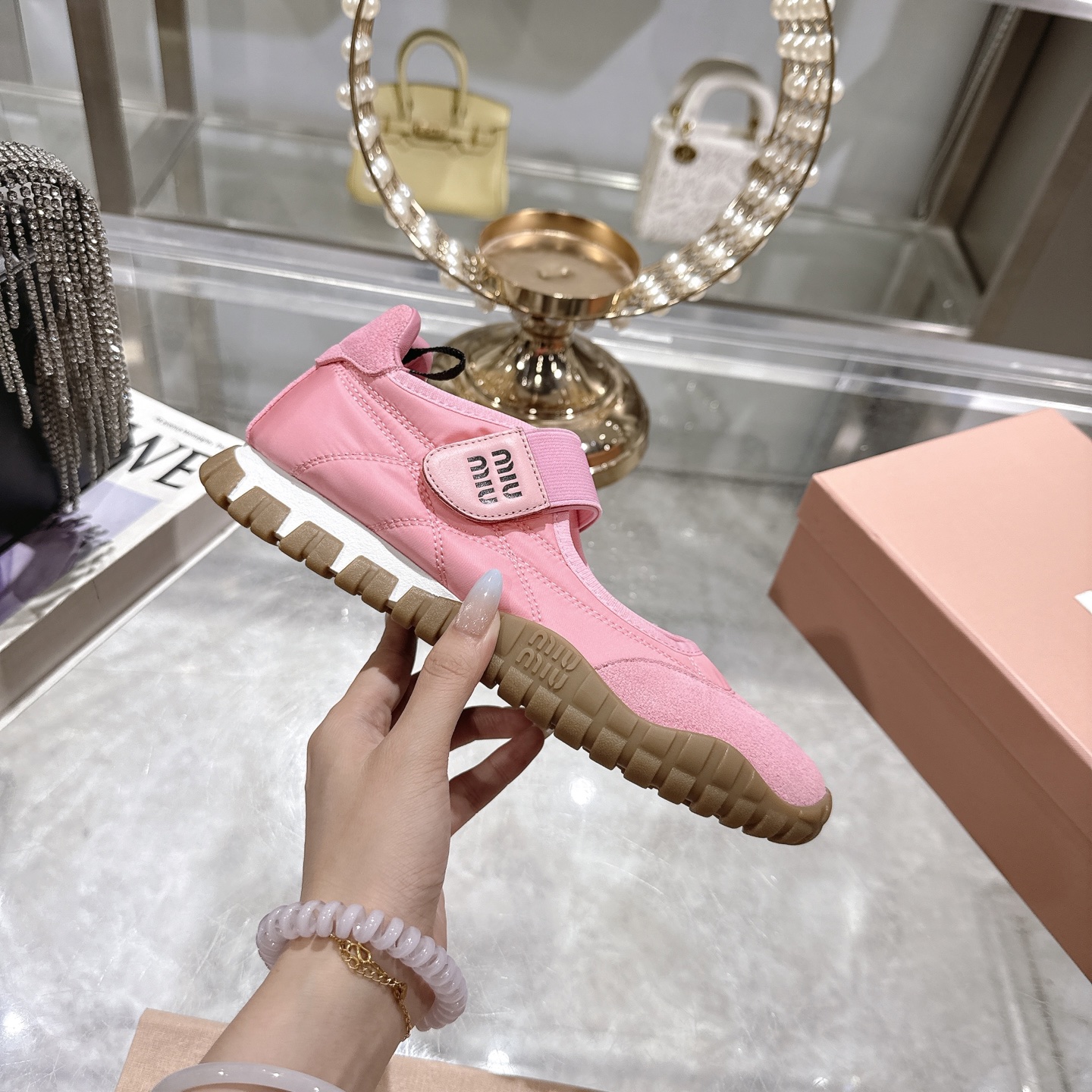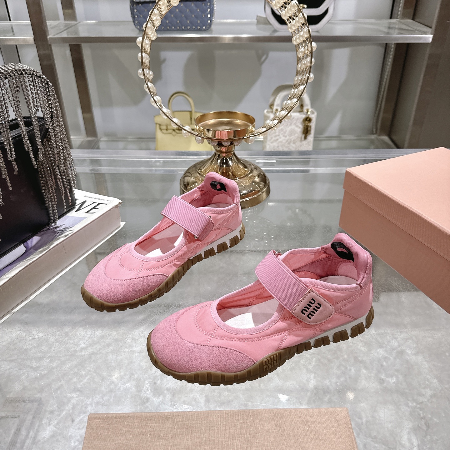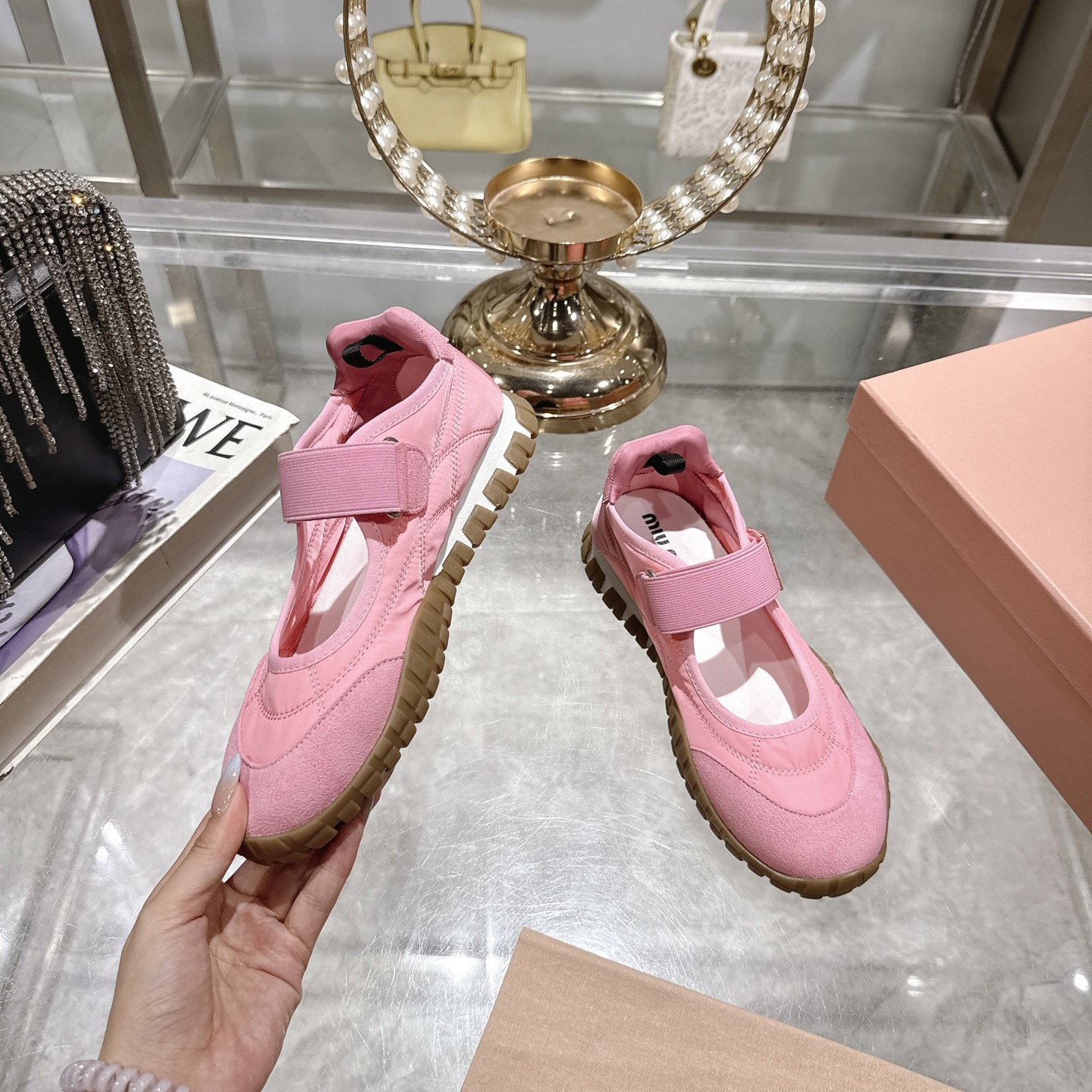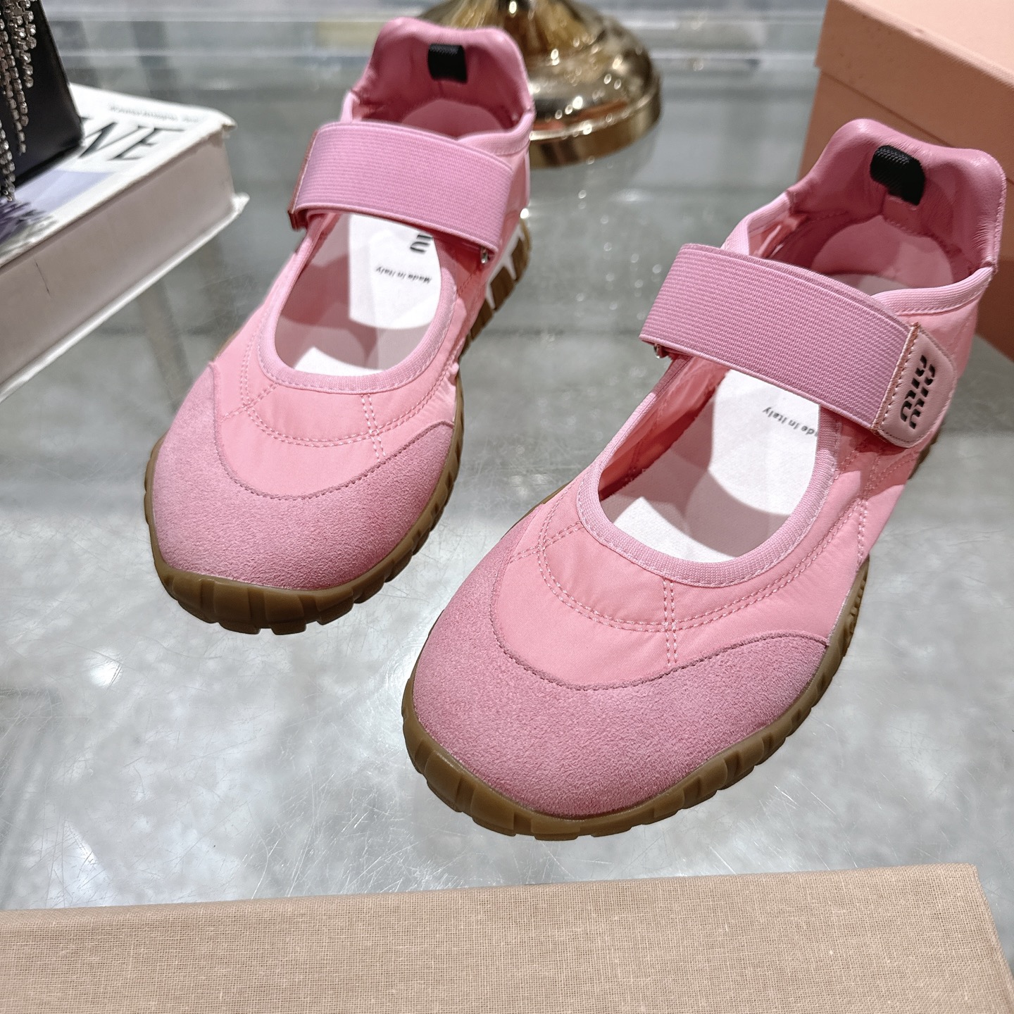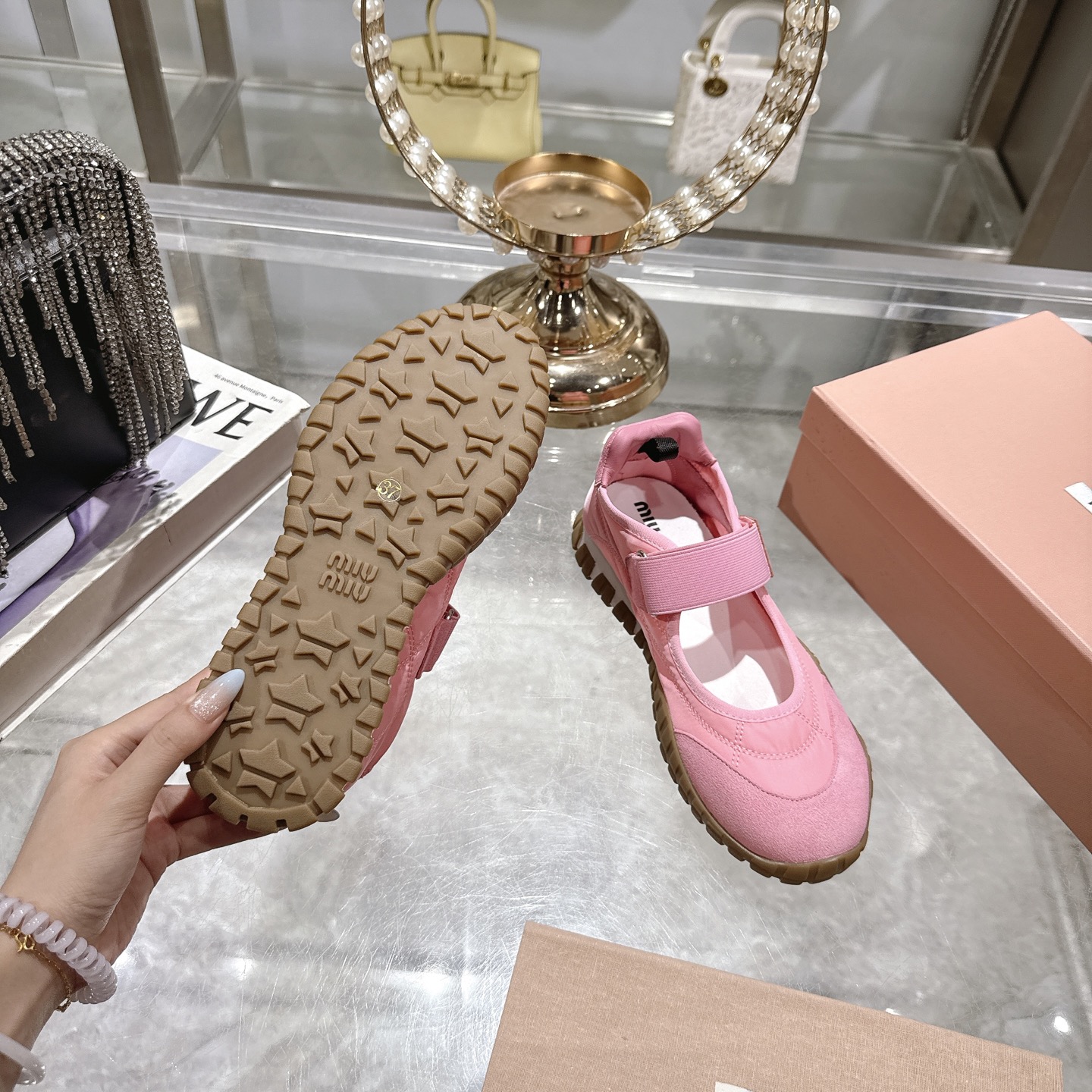 這款鞋子是AAAAA 1:1 質量(非常棒). 使用了和原版一模一樣的材料. 商標部分也保持了和繆繆/Miu Miu一樣. 圖片拍攝是實物鞋子拍攝, 您所收到的實物保證和我們圖片一模一樣.