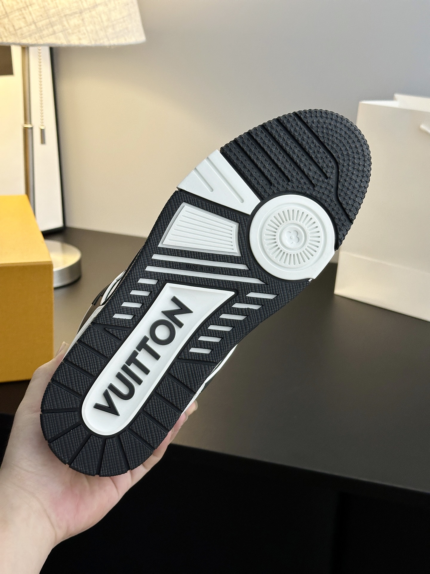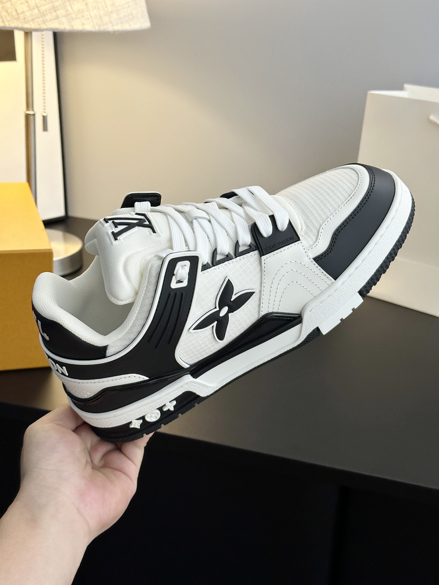 這款鞋子是AAAAA 1:1 質量(非常棒). 使用了和原版一模一樣的材料. 商標部分也保持了和路易威登/Louis Vuitton一樣. 圖片拍攝是實物鞋子拍攝, 您所收到的實物保證和我們圖片一模一樣.