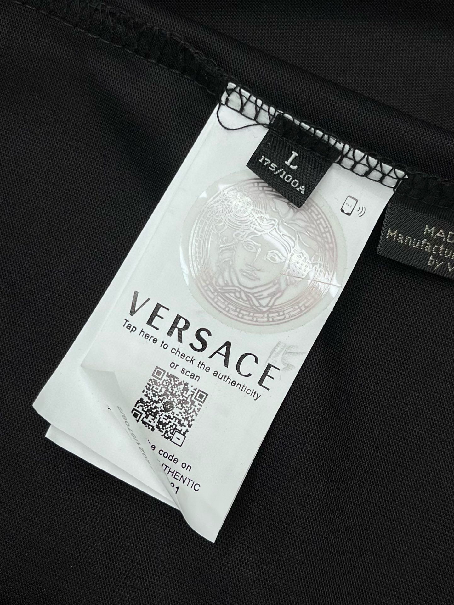 這款衣服是AAAAA 1:1 質量(非常棒). 使用了和原版一模一樣的材料. 商標部分也保持了和范思哲/Versace一樣. 圖片拍攝是實物衣服拍攝, 您所收到的實物保證和我們圖片一模一樣.