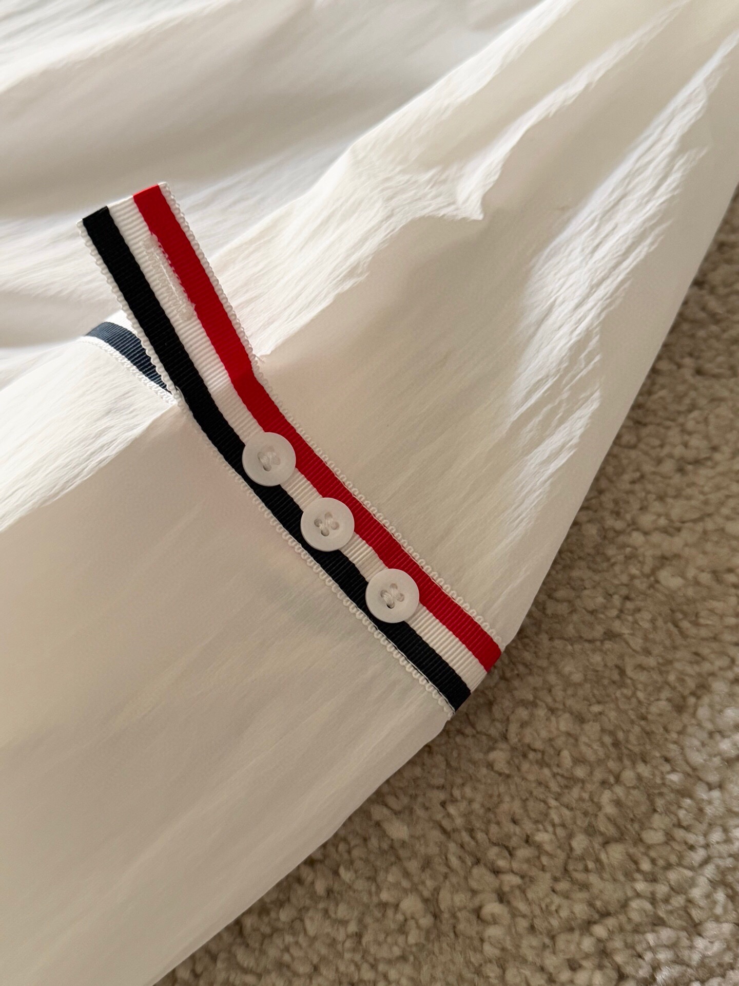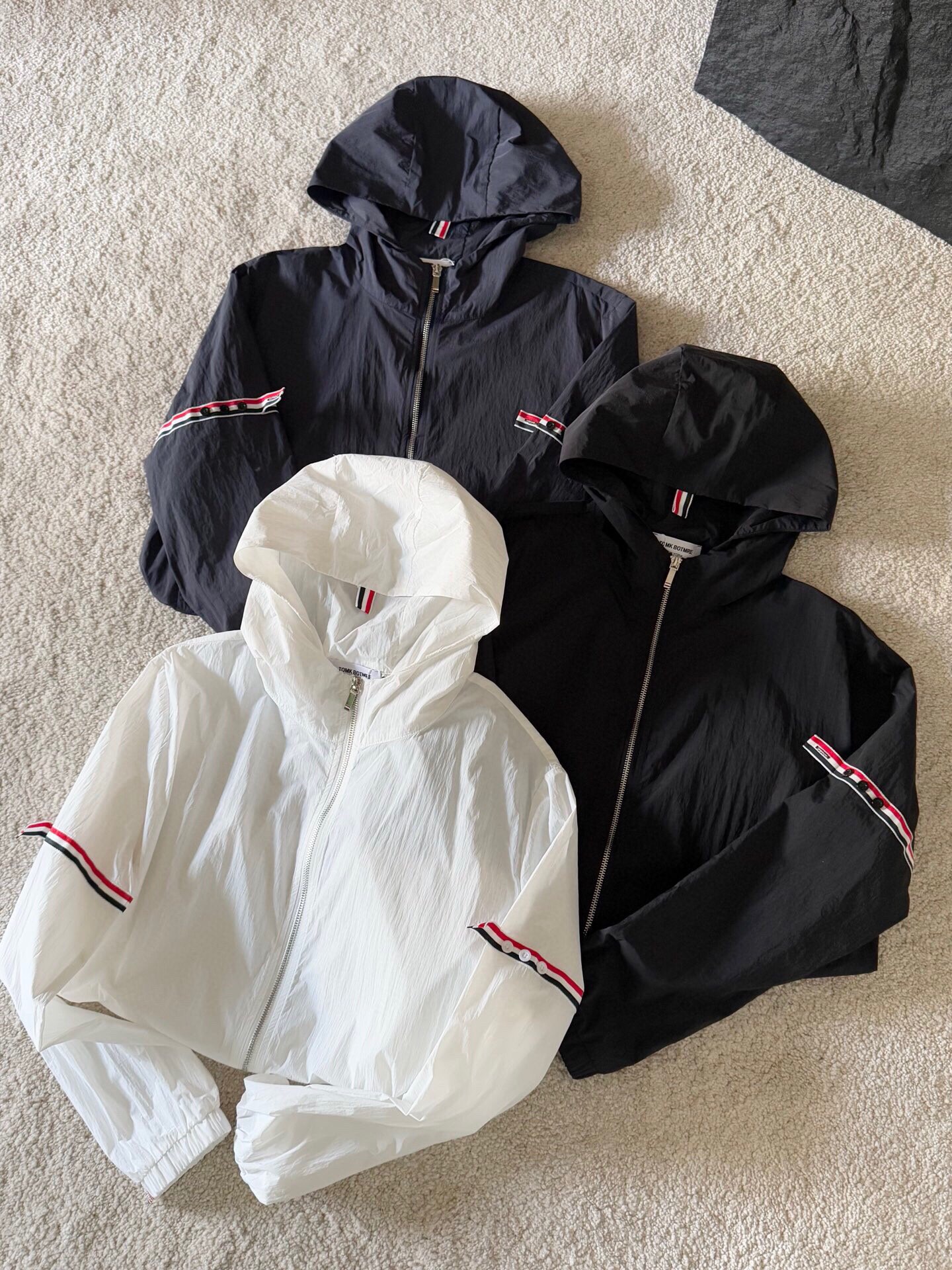 這款衣服是AAAAA 1:1 質量(非常棒). 使用了和原版一模一樣的材料. 商標部分也保持了和湯姆布朗/Thom Browne一樣. 圖片拍攝是實物衣服拍攝, 您所收到的實物保證和我們圖片一模一樣.