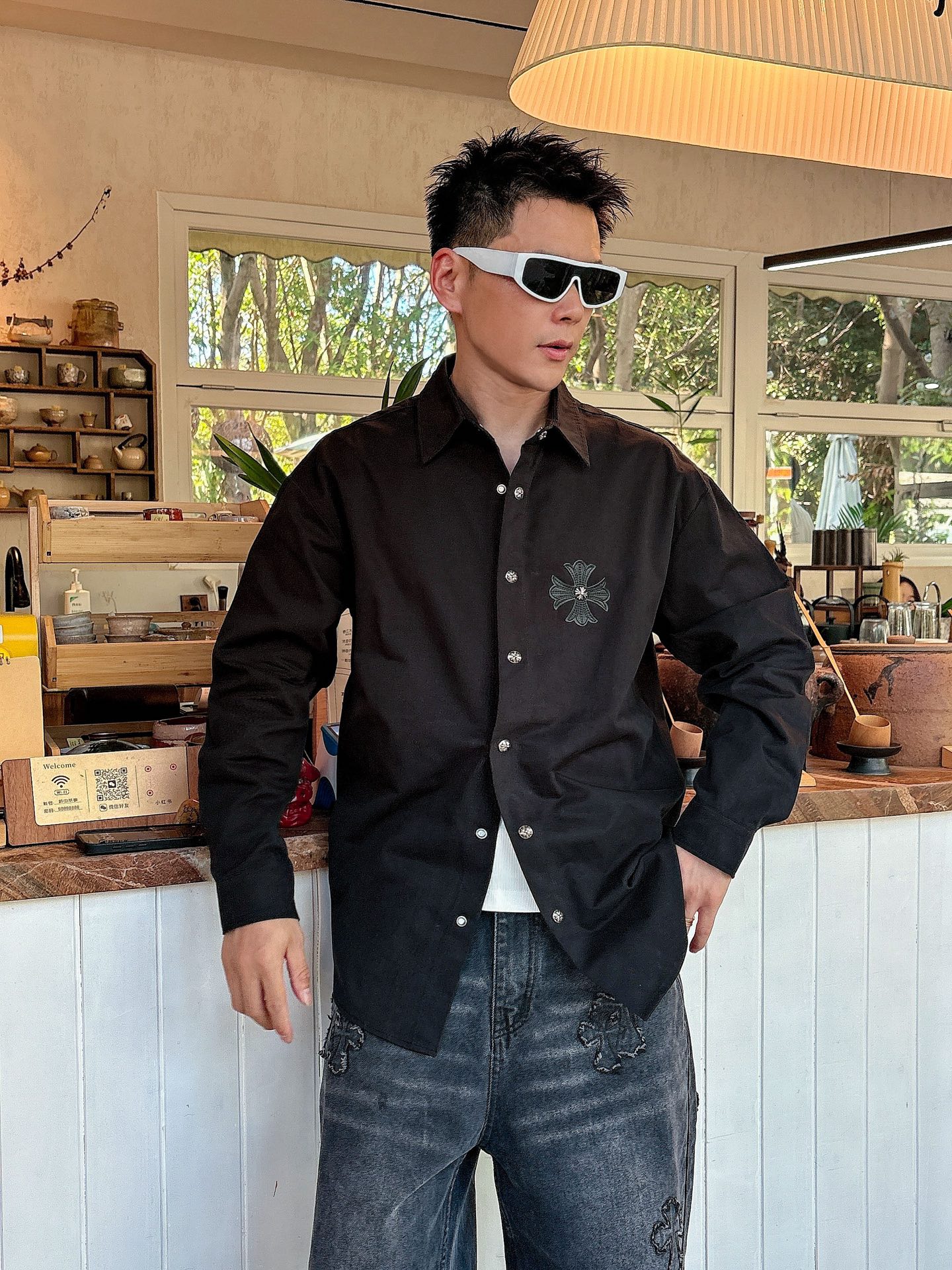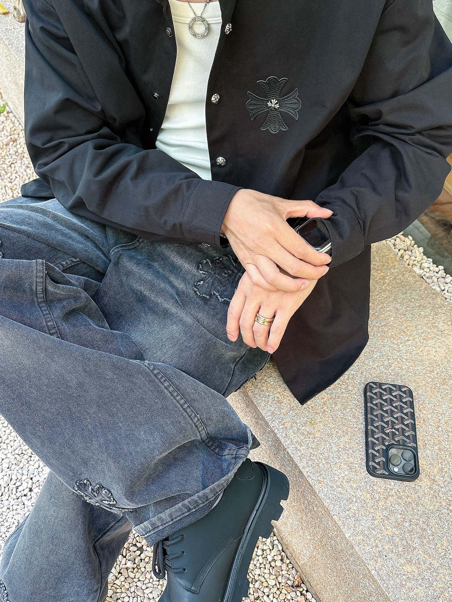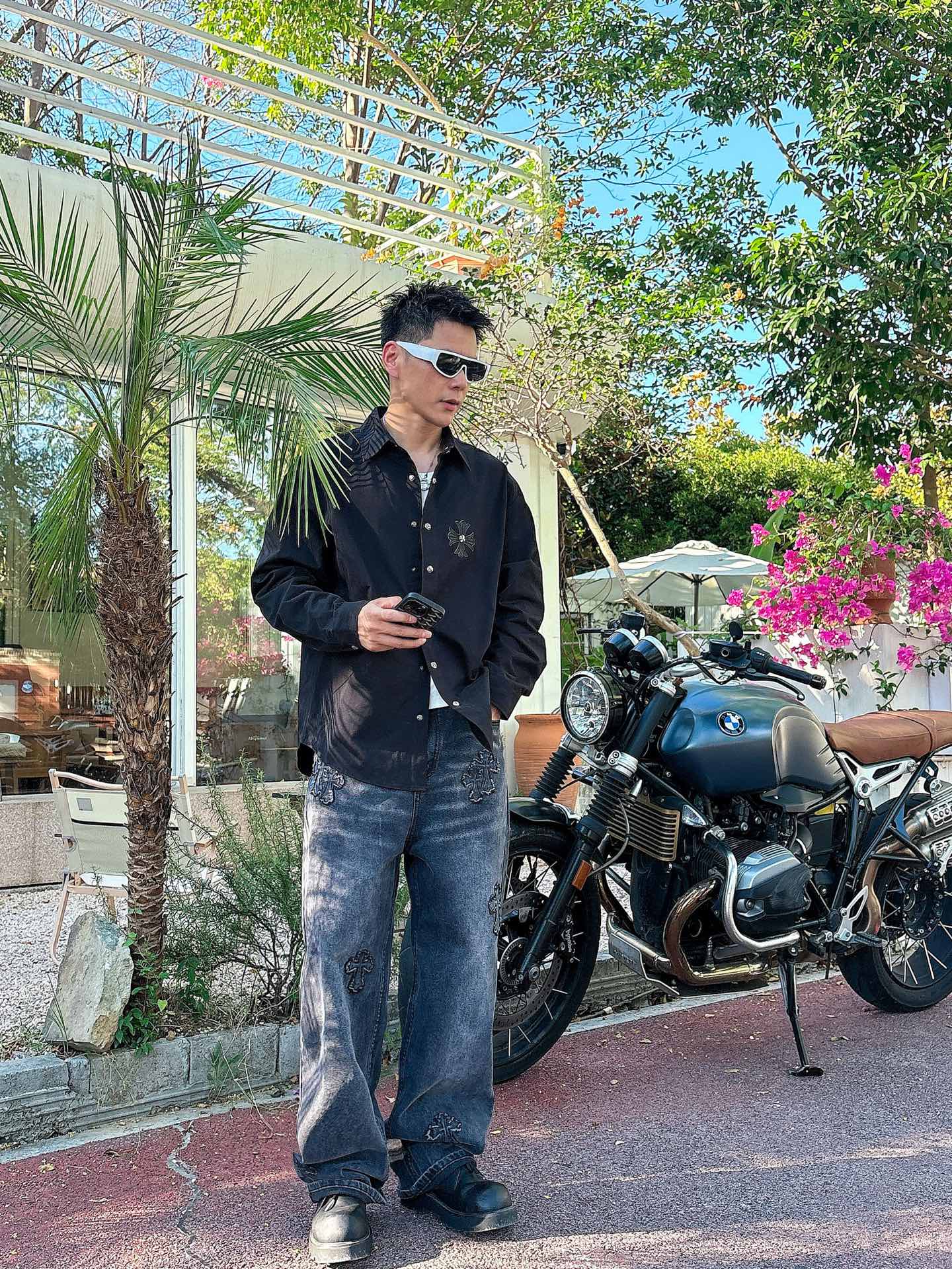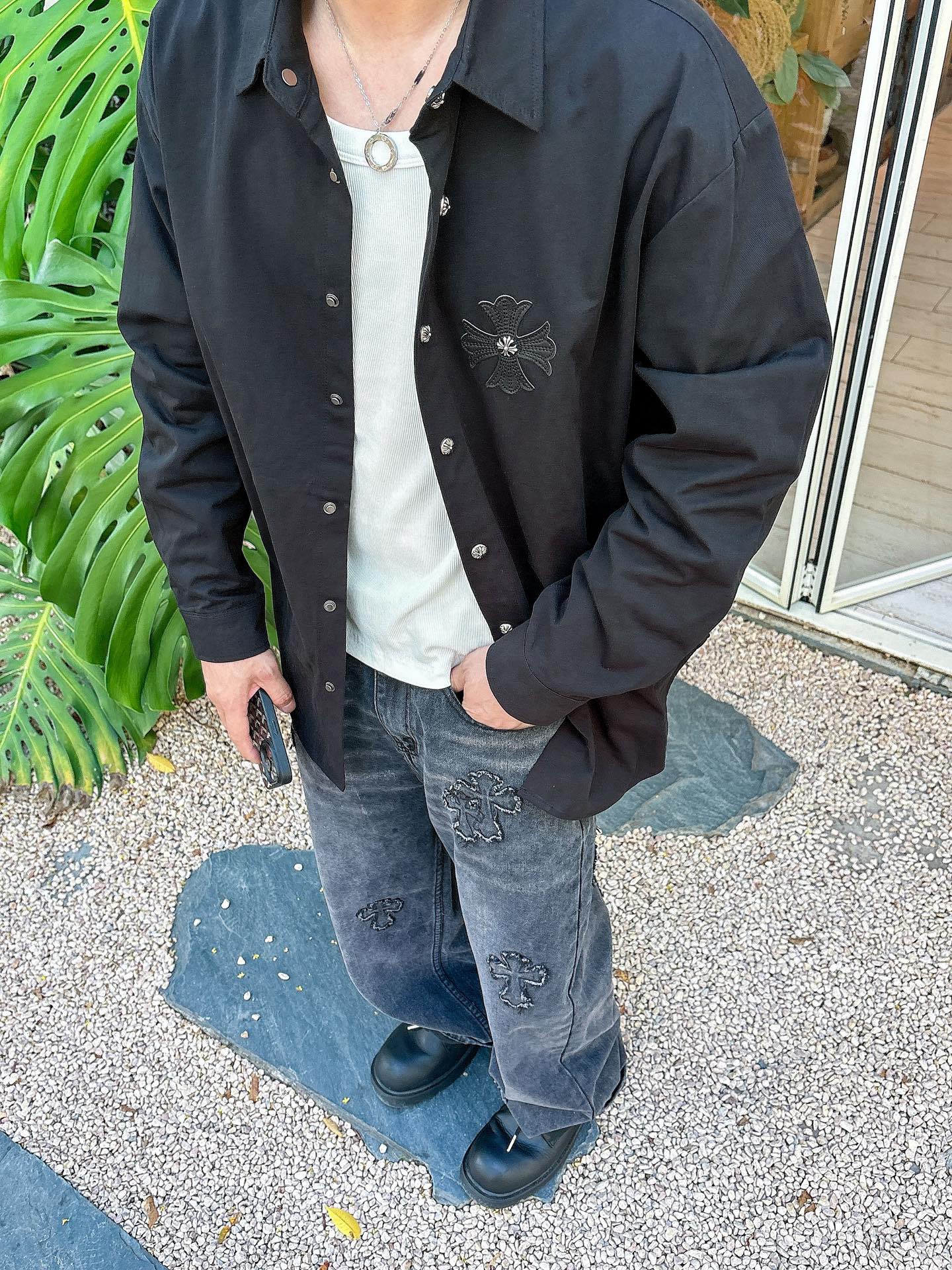 這款衣服是AAAAA 1:1 質量(非常棒). 使用了和原版一模一樣的材料. 商標部分也保持了和鉻心/Chrome Hearts一樣. 圖片拍攝是實物衣服拍攝, 您所收到的實物保證和我們圖片一模一樣.