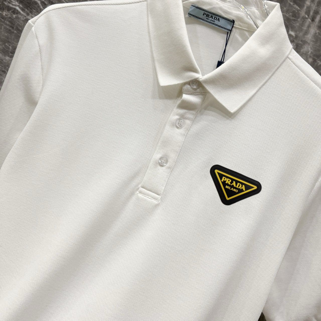 這款衣服是AAAAA 1:1 質量(非常棒). 使用了和原版一模一樣的材料. 商標部分也保持了和普拉達/Prada一樣. 圖片拍攝是實物衣服拍攝, 您所收到的實物保證和我們圖片一模一樣.