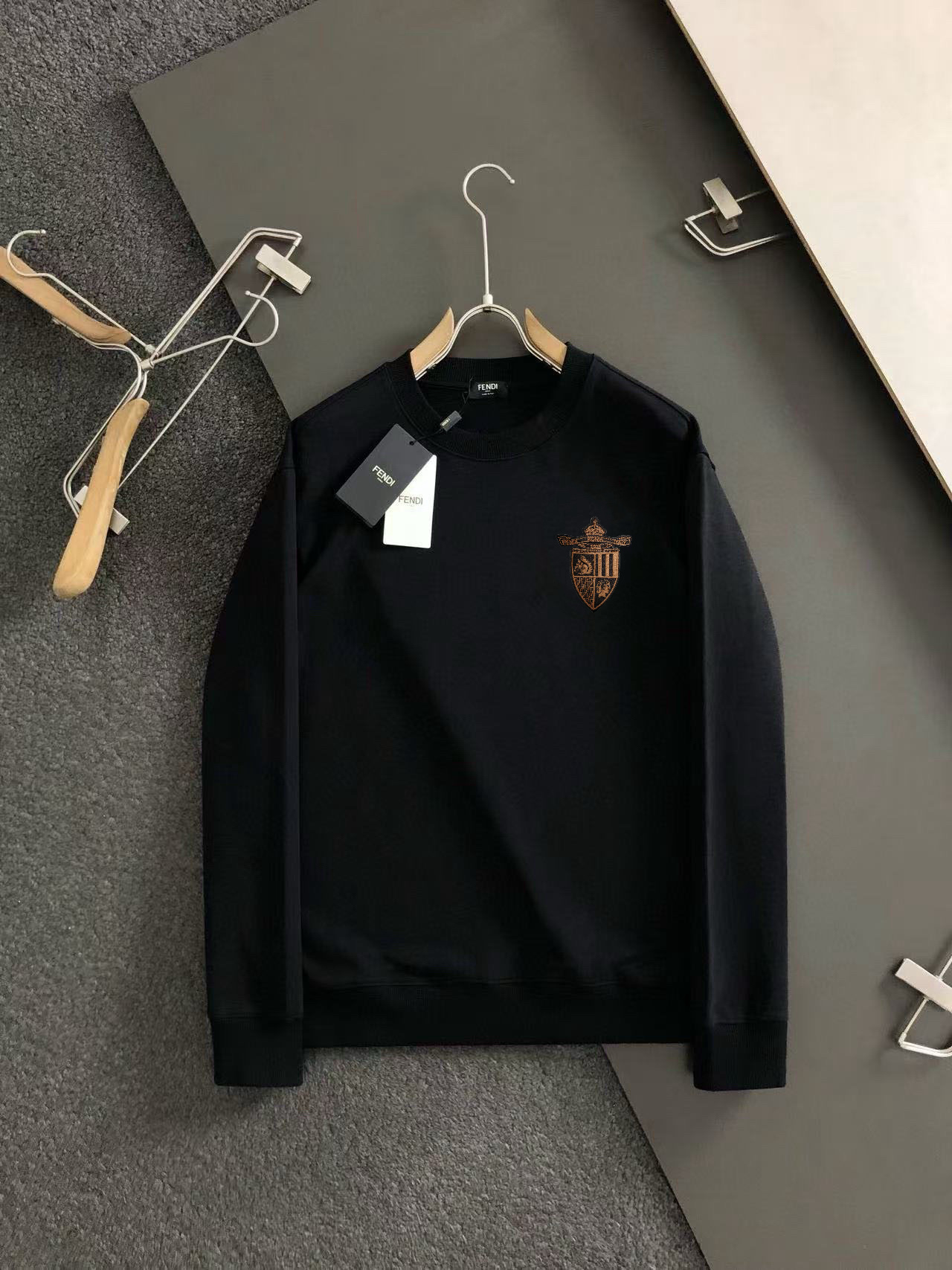 這款衣服是AAAAA 1:1 質量(非常棒). 使用了和原版一模一樣的材料. 商標部分也保持了和芬迪/Fendi一樣. 圖片拍攝是實物衣服拍攝, 您所收到的實物保證和我們圖片一模一樣.