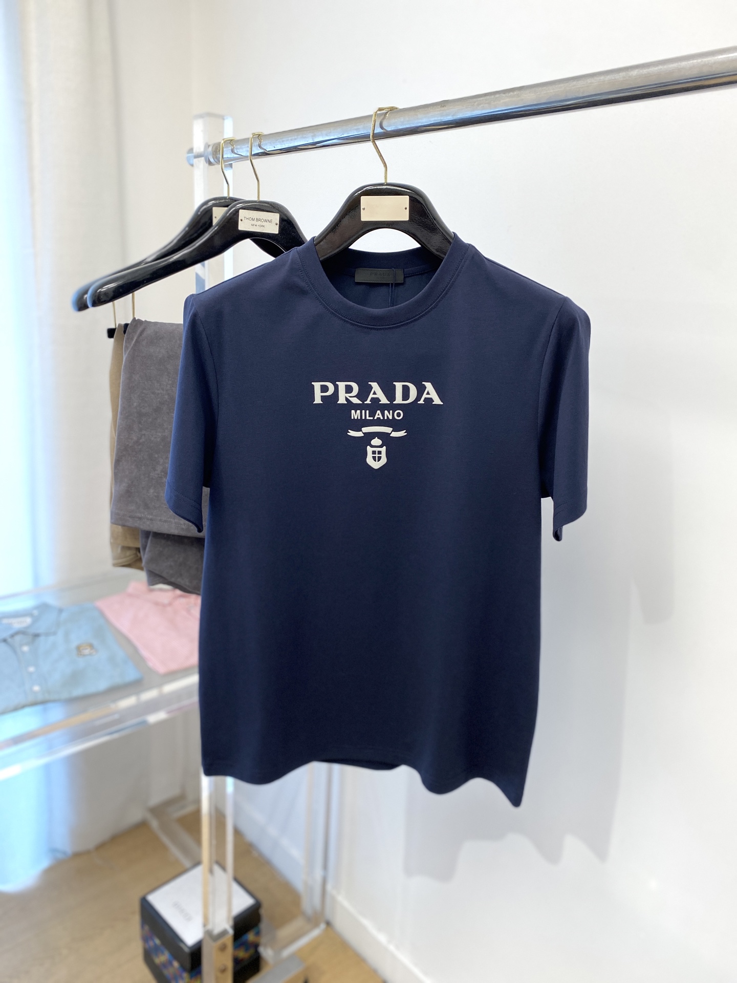 這款衣服是AAAAA 1:1 質量(非常棒). 使用了和原版一模一樣的材料. 商標部分也保持了和普拉達/Prada一樣. 圖片拍攝是實物衣服拍攝, 您所收到的實物保證和我們圖片一模一樣.