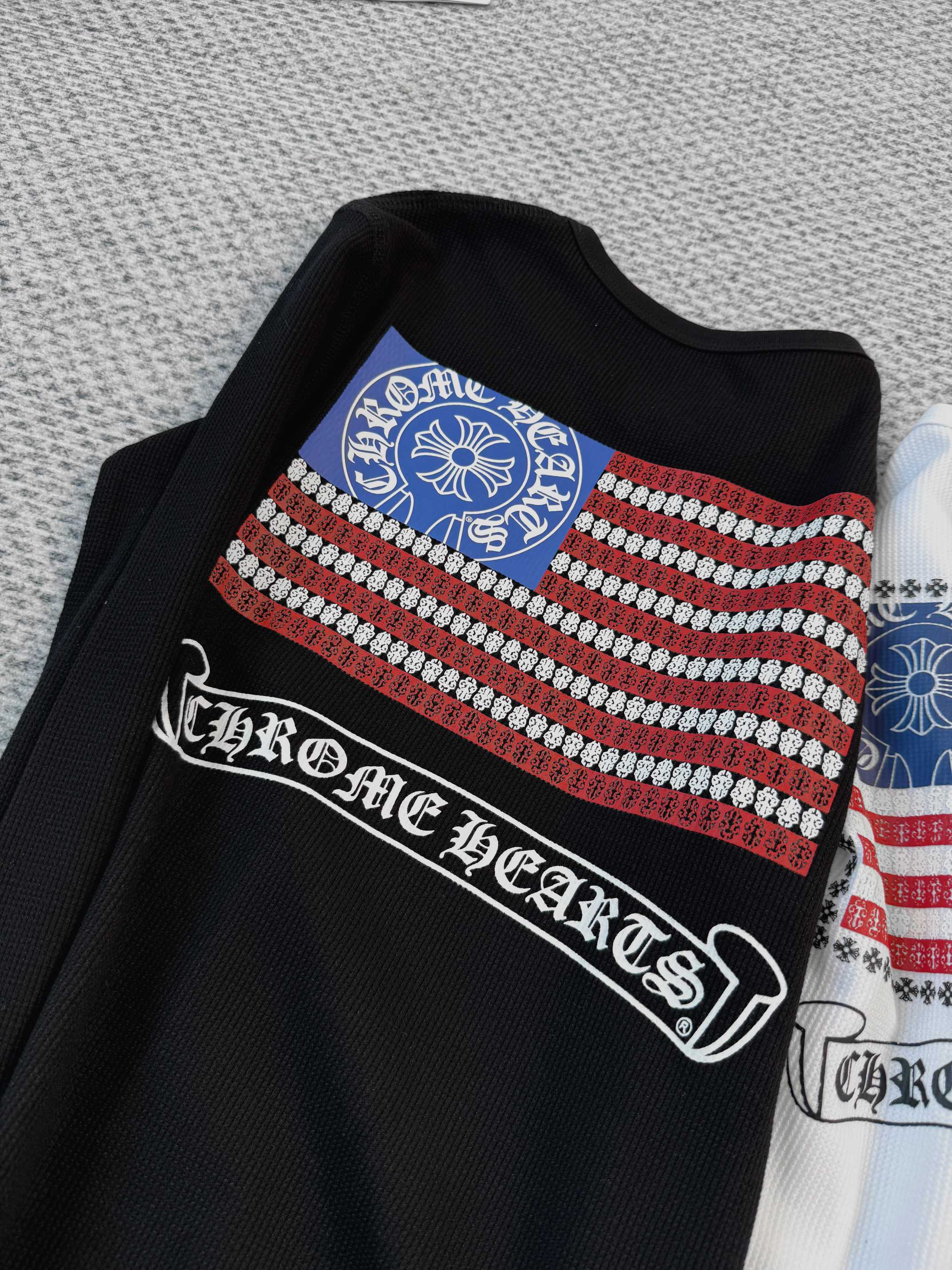 這款衣服是AAAAA 1:1 質量(非常棒). 使用了和原版一模一樣的材料. 商標部分也保持了和鉻心/Chrome Hearts一樣. 圖片拍攝是實物衣服拍攝, 您所收到的實物保證和我們圖片一模一樣.