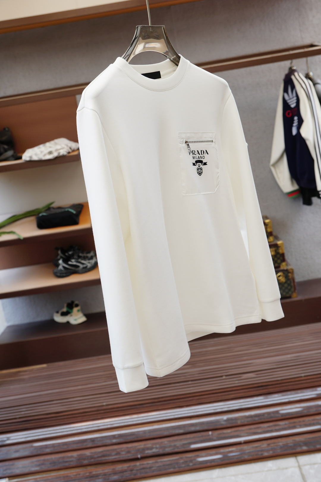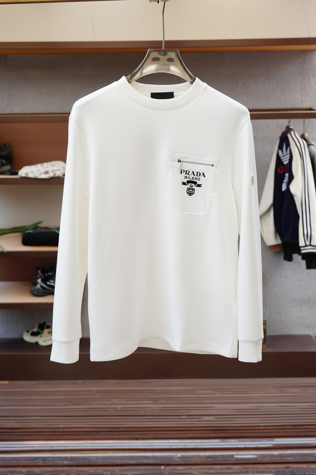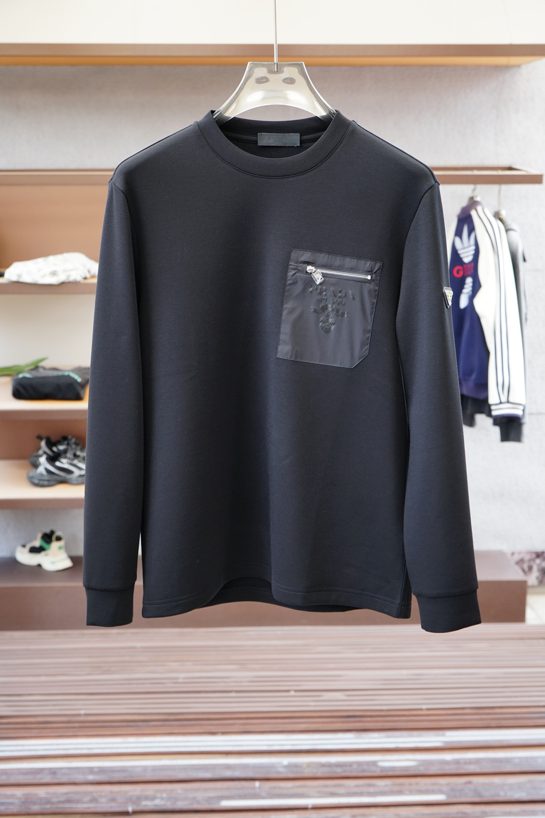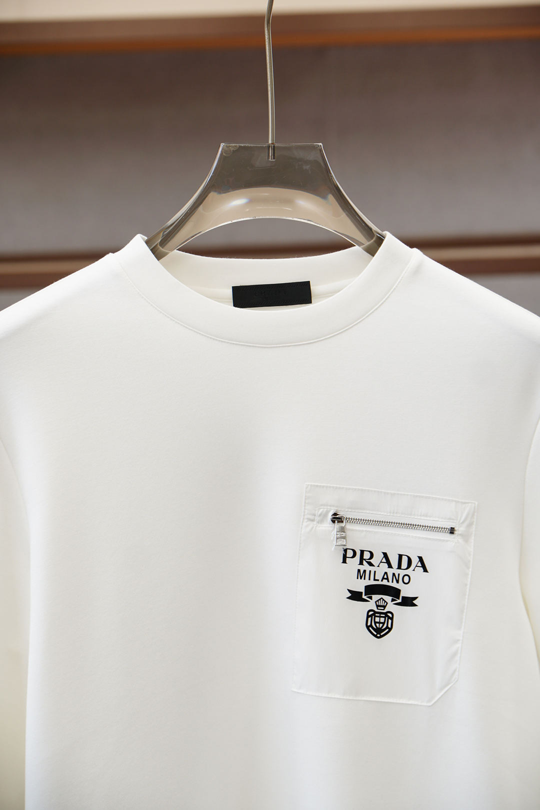 這款衣服是AAAAA 1:1 質量(非常棒). 使用了和原版一模一樣的材料. 商標部分也保持了和普拉達/Prada一樣. 圖片拍攝是實物衣服拍攝, 您所收到的實物保證和我們圖片一模一樣.