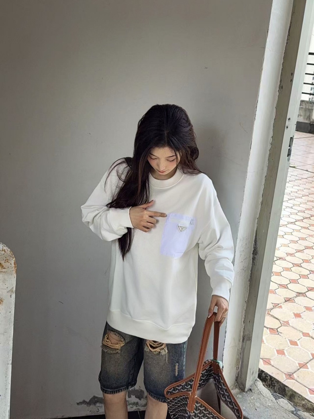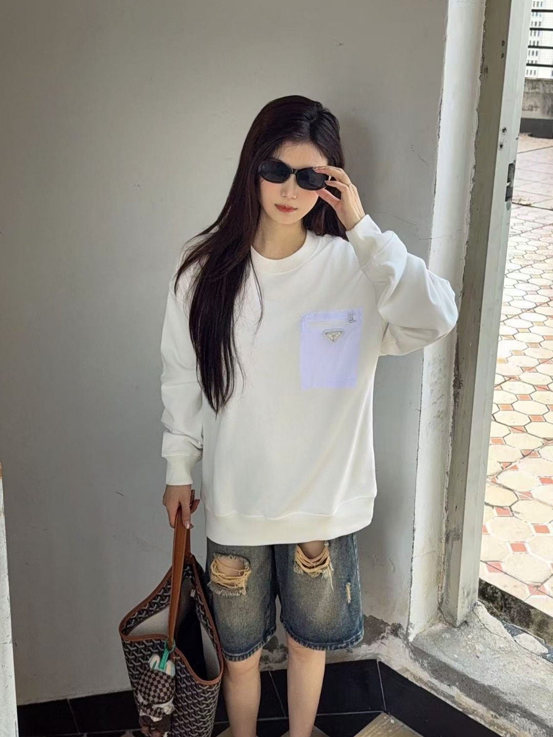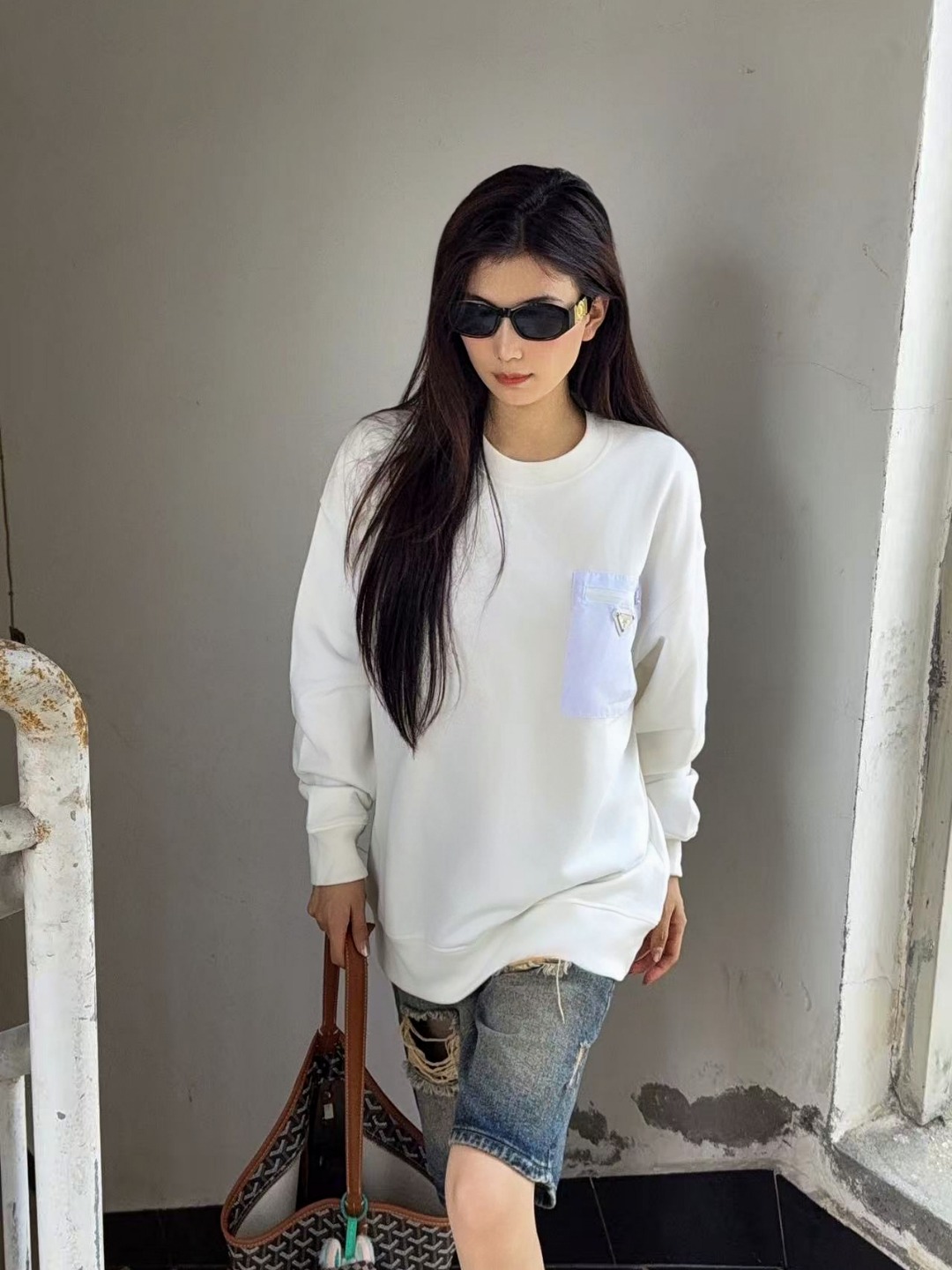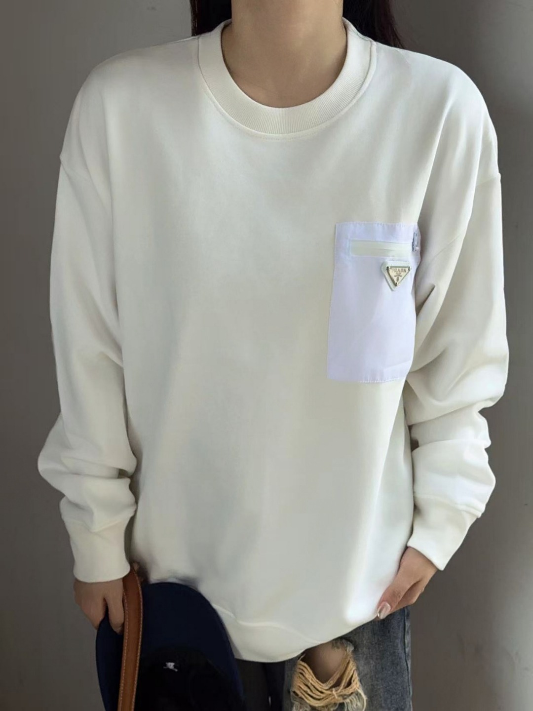 這款衣服是AAAAA 1:1 質量(非常棒). 使用了和原版一模一樣的材料. 商標部分也保持了和普拉達/Prada一樣. 圖片拍攝是實物衣服拍攝, 您所收到的實物保證和我們圖片一模一樣.