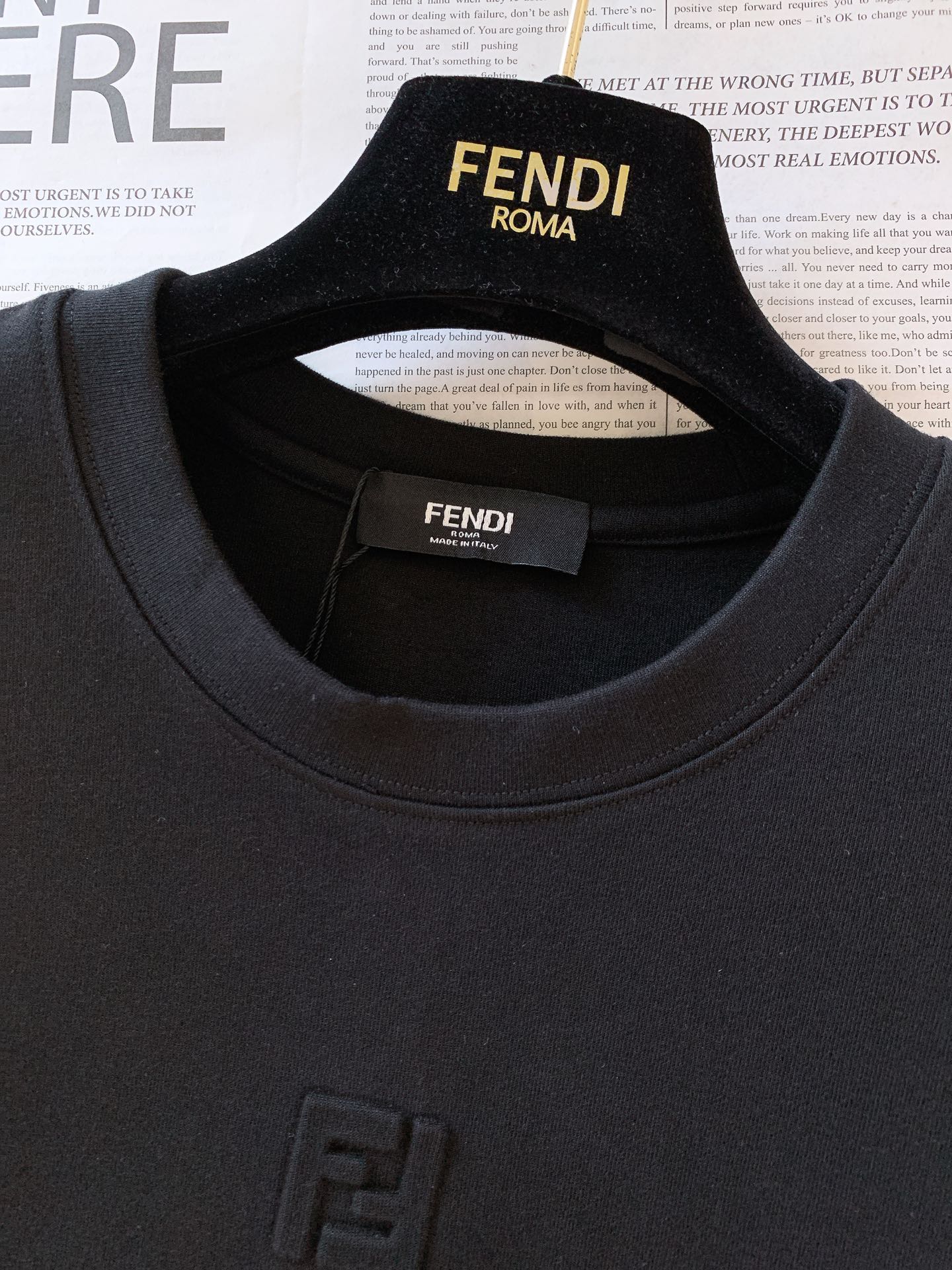這款衣服是AAAAA 1:1 質量(非常棒). 使用了和原版一模一樣的材料. 商標部分也保持了和芬迪/Fendi一樣. 圖片拍攝是實物衣服拍攝, 您所收到的實物保證和我們圖片一模一樣.