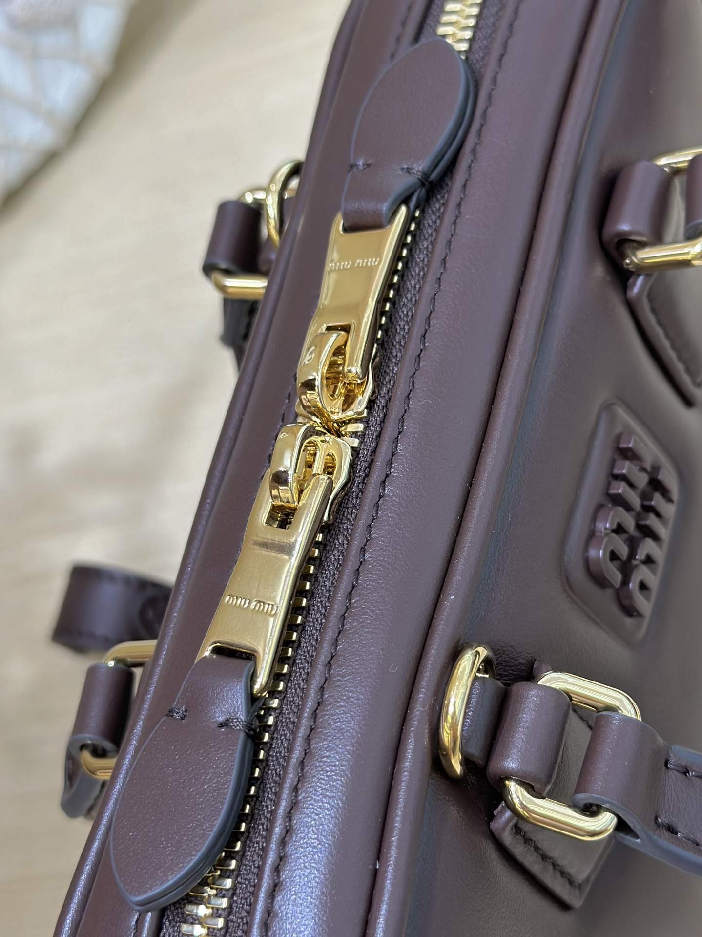 這款包包是AAAAA 1:1 質量(非常棒). 使用了和原版一模一樣的材料. 商標部分也保持了和繆繆/Miu Miu一樣. 圖片拍攝是實物包包拍攝, 您所收到的實物保證和我們圖片一模一樣.