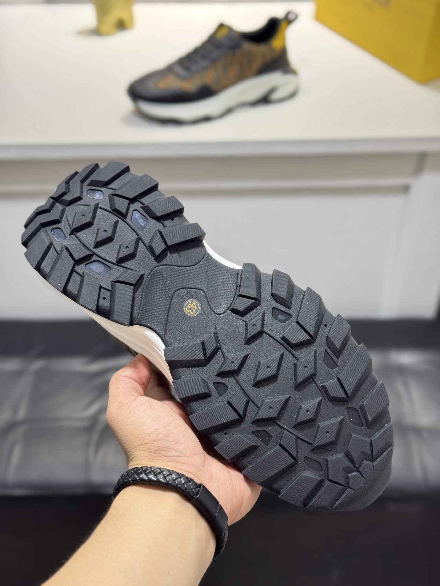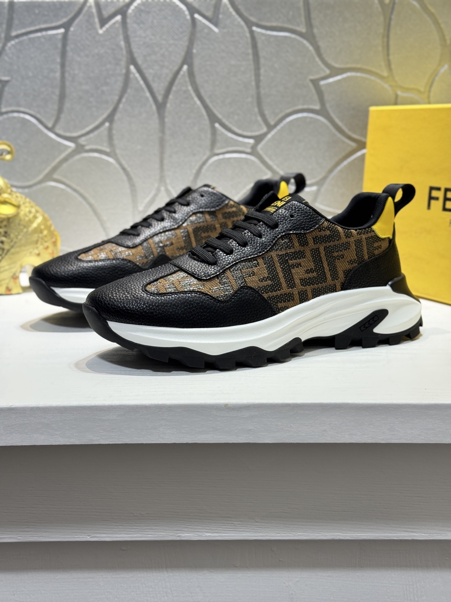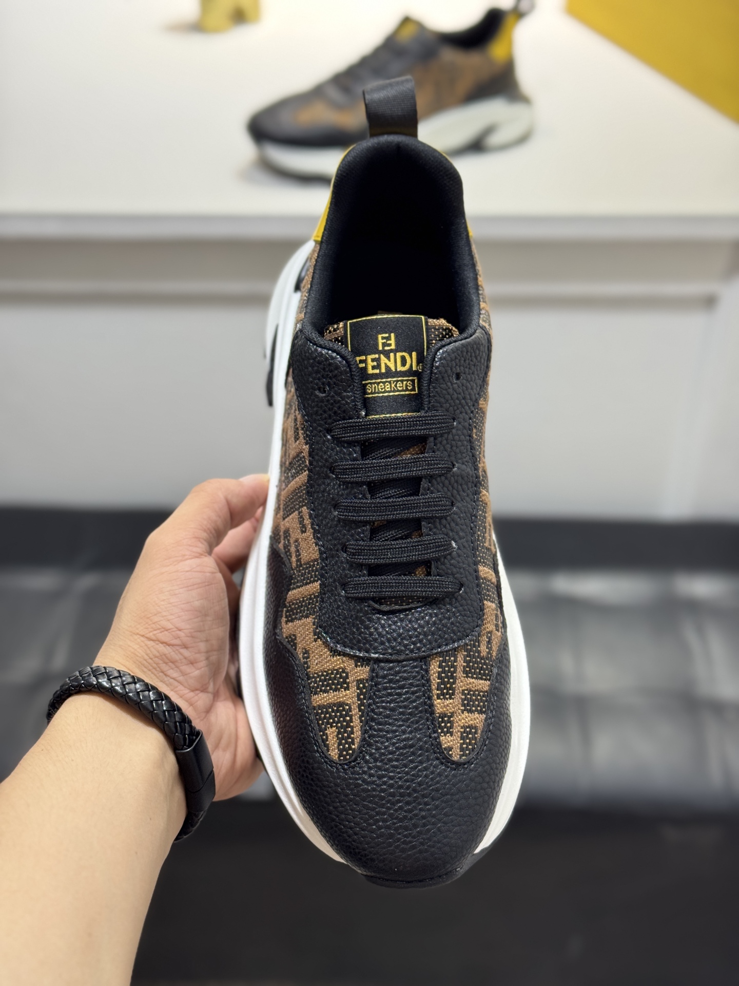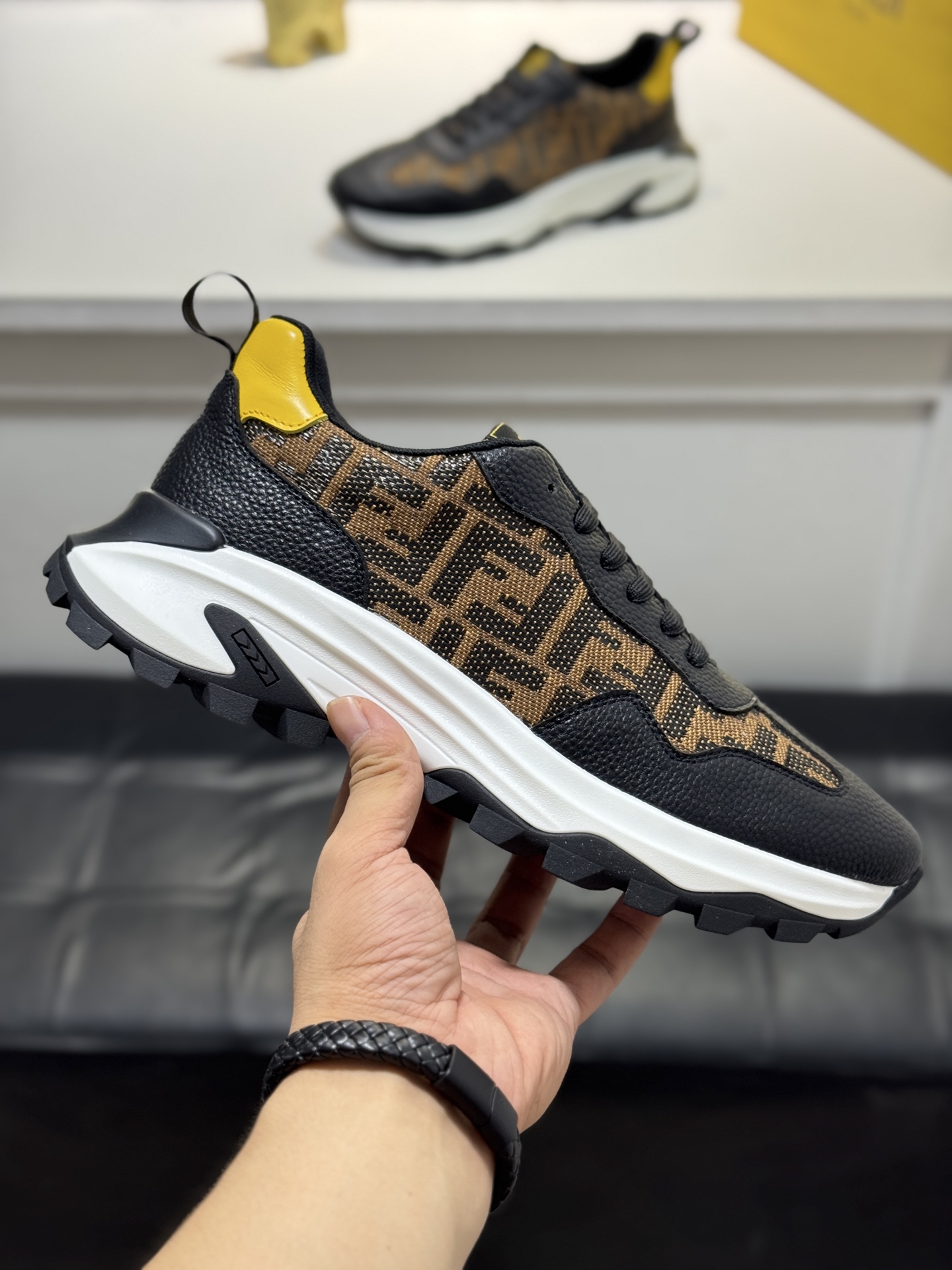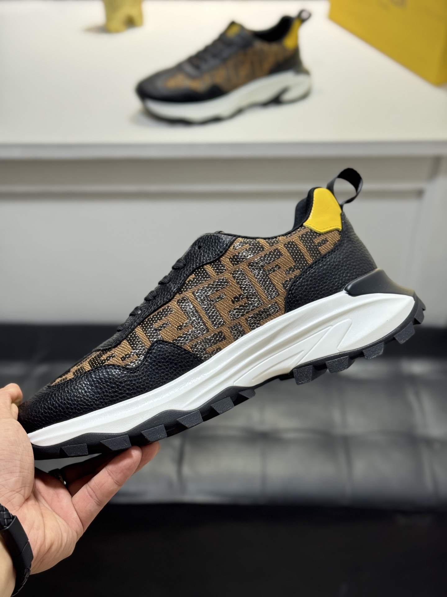 這款鞋子是AAAAA 1:1 質量(非常棒). 使用了和原版一模一樣的材料. 商標部分也保持了和芬迪/Fendi一樣. 圖片拍攝是實物鞋子拍攝, 您所收到的實物保證和我們圖片一模一樣.
