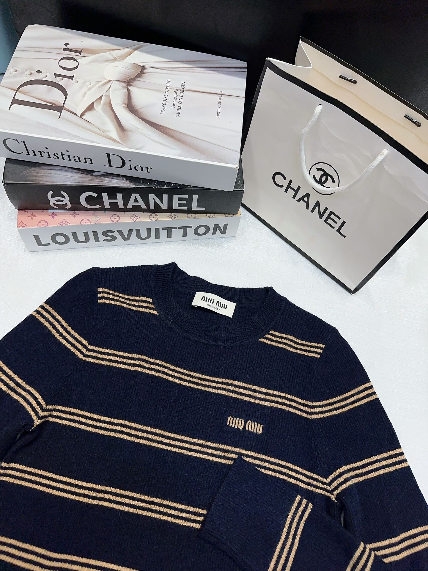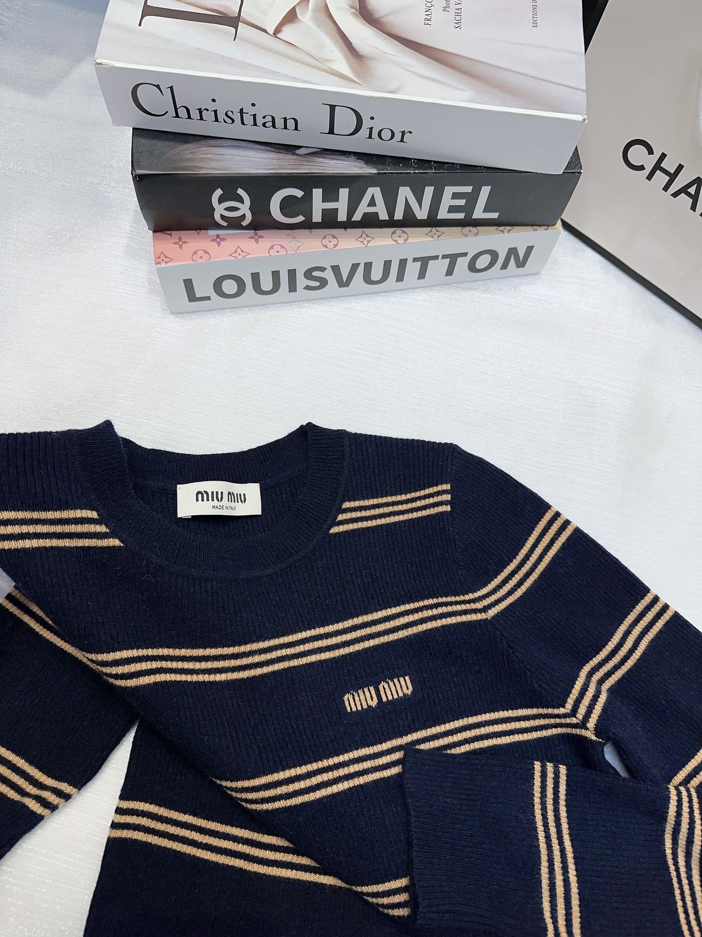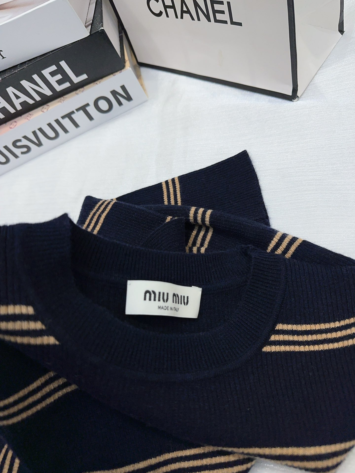 這款衣服是AAAAA 1:1 質量(非常棒). 使用了和原版一模一樣的材料. 商標部分也保持了和繆繆/Miu Miu一樣. 圖片拍攝是實物衣服拍攝, 您所收到的實物保證和我們圖片一模一樣.