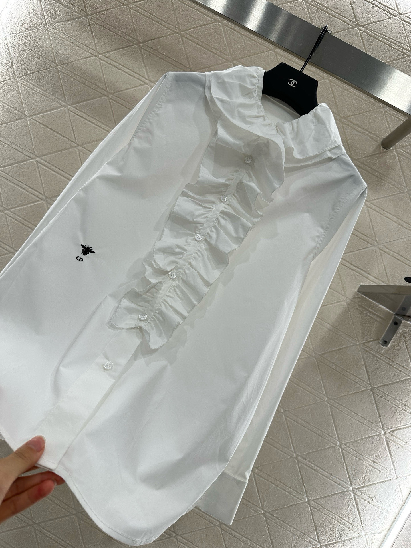 這款衣服是AAAAA 1:1 質量(非常棒). 使用了和原版一模一樣的材料. 商標部分也保持了和迪奧/Dior一樣. 圖片拍攝是實物衣服拍攝, 您所收到的實物保證和我們圖片一模一樣.