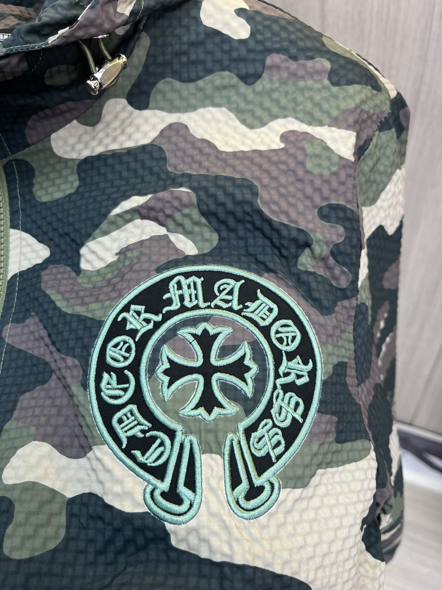 這款衣服是AAAAA 1:1 質量(非常棒). 使用了和原版一模一樣的材料. 商標部分也保持了和鉻心/Chrome Hearts一樣. 圖片拍攝是實物衣服拍攝, 您所收到的實物保證和我們圖片一模一樣.