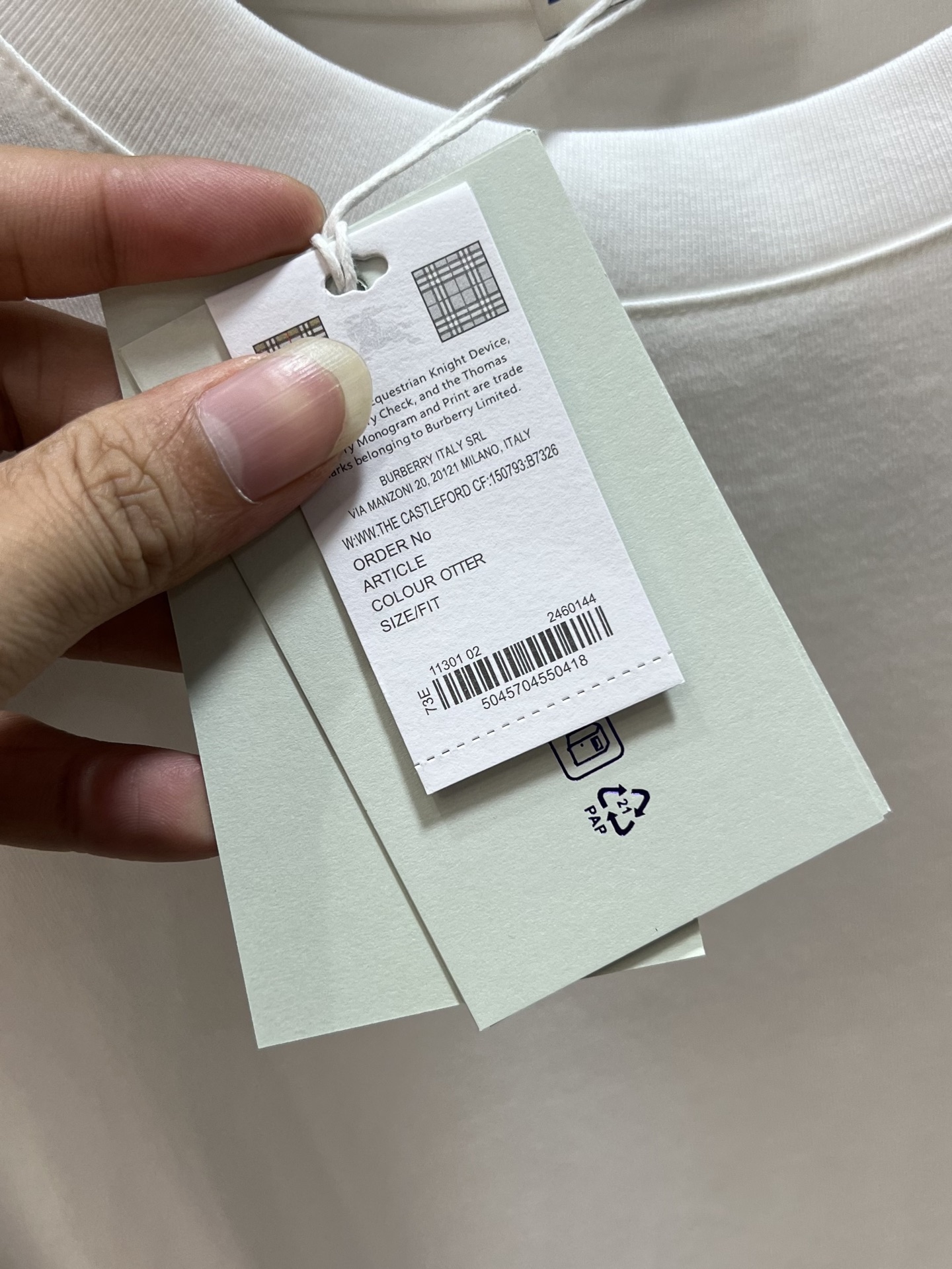 這款衣服是AAAAA 1:1 質量(非常棒). 使用了和原版一模一樣的材料. 商標部分也保持了和巴寶莉/Burberry一樣. 圖片拍攝是實物衣服拍攝, 您所收到的實物保證和我們圖片一模一樣.