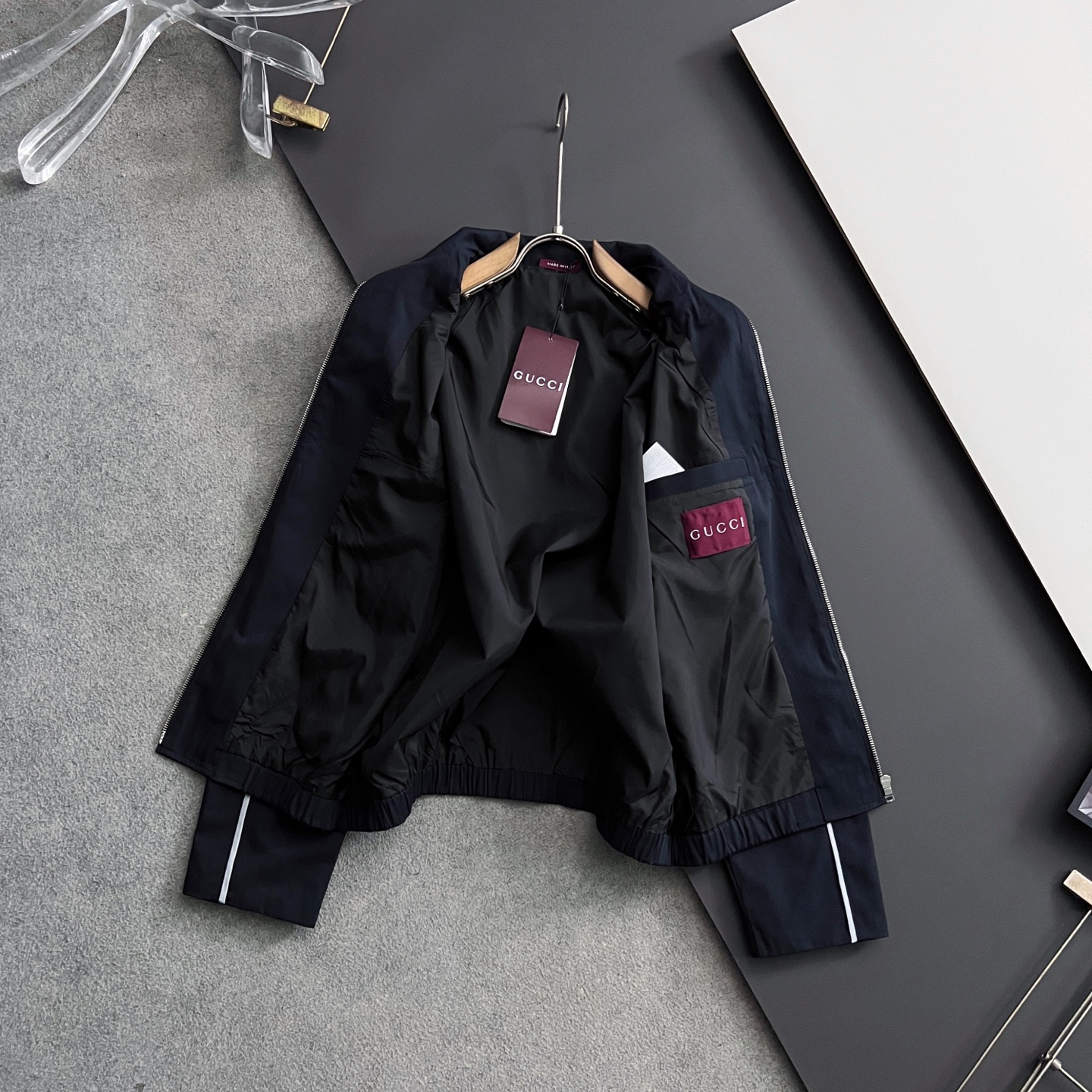 這款衣服是AAAAA 1:1 質量(非常棒). 使用了和原版一模一樣的材料. 商標部分也保持了和古奇/Gucci一樣. 圖片拍攝是實物衣服拍攝, 您所收到的實物保證和我們圖片一模一樣.