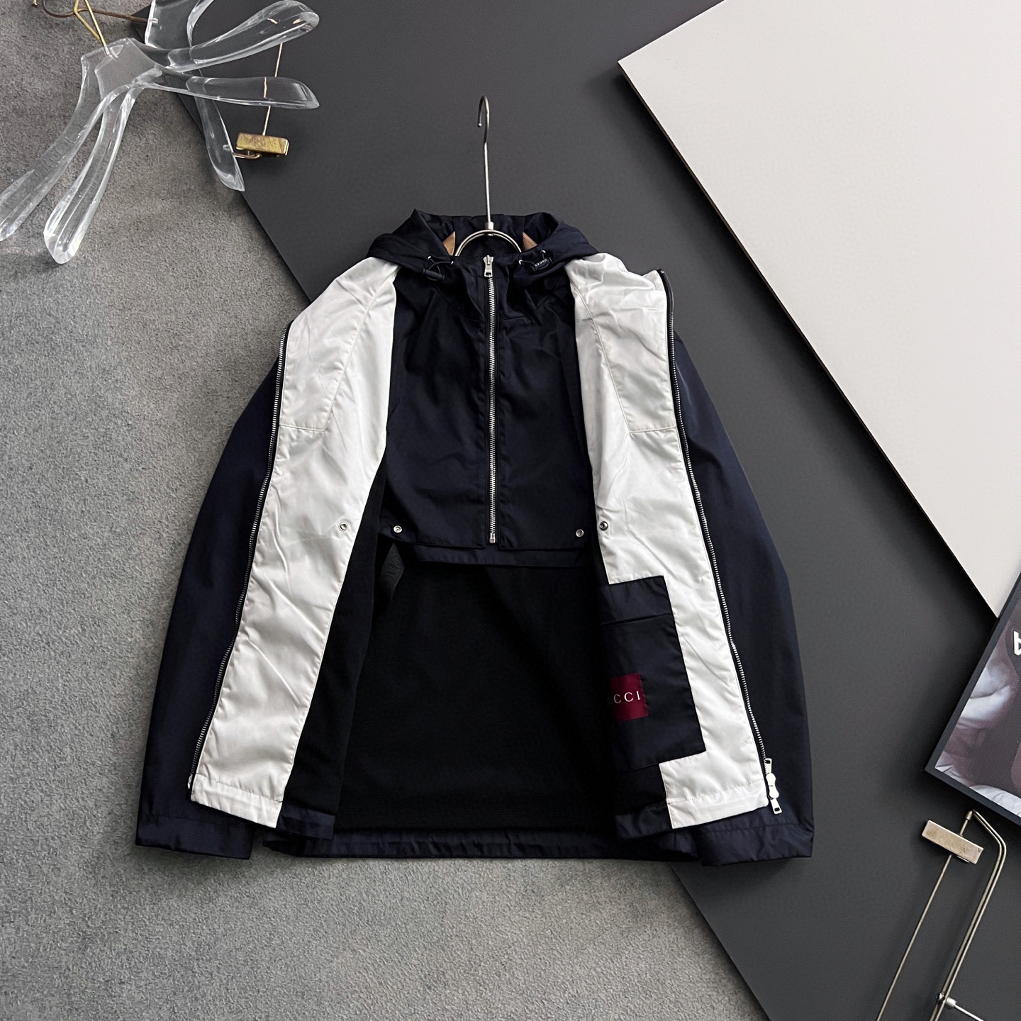 這款衣服是AAAAA 1:1 質量(非常棒). 使用了和原版一模一樣的材料. 商標部分也保持了和古奇/Gucci一樣. 圖片拍攝是實物衣服拍攝, 您所收到的實物保證和我們圖片一模一樣.