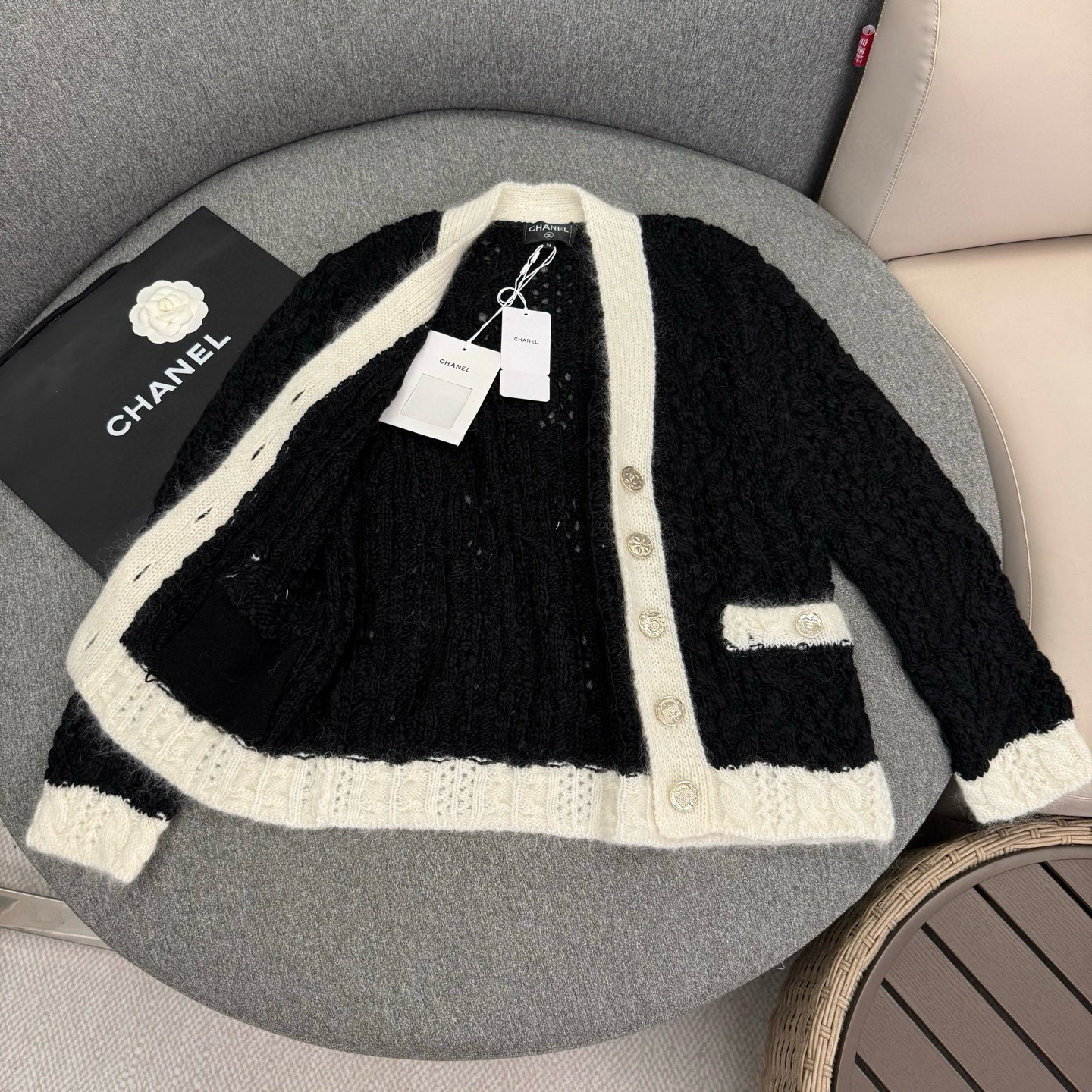 這款衣服是AAAAA 1:1 質量(非常棒). 使用了和原版一模一樣的材料. 商標部分也保持了和香奈兒/Chanel一樣. 圖片拍攝是實物衣服拍攝, 您所收到的實物保證和我們圖片一模一樣.