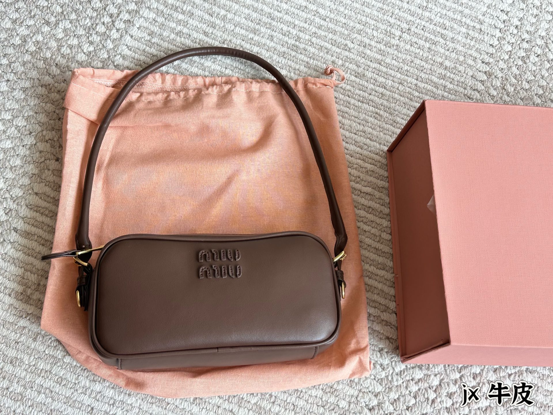 這款包包是AAAAA 1:1 質量(非常棒). 使用了和原版一模一樣的材料. 商標部分也保持了和繆繆/Miu Miu一樣. 圖片拍攝是實物包包拍攝, 您所收到的實物保證和我們圖片一模一樣.