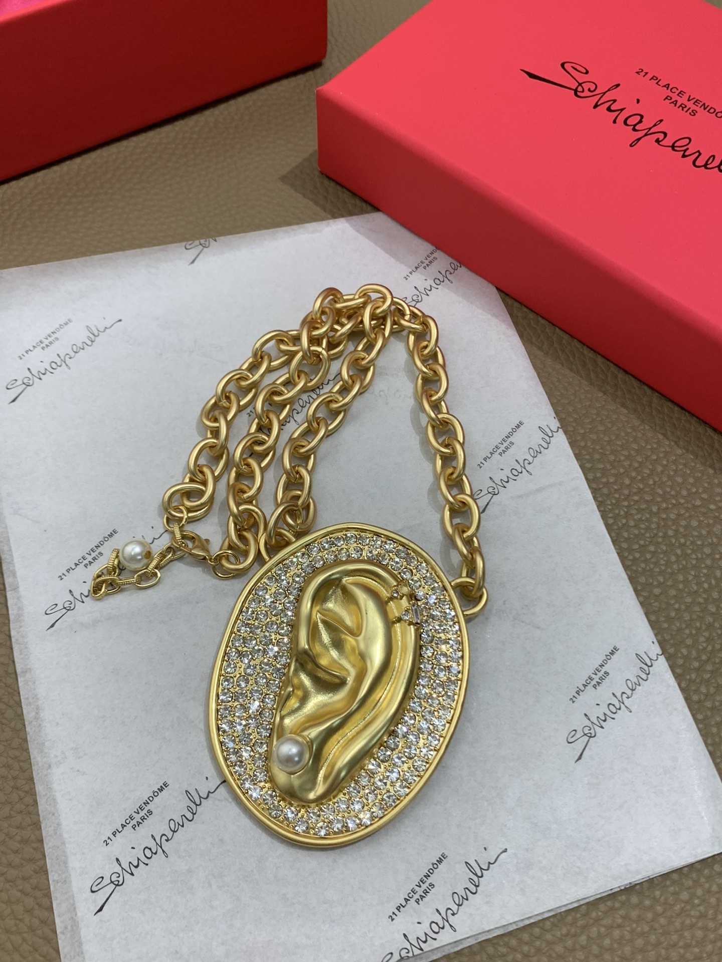 這款是AAAAA 1:1 質量(非常棒). 使用了和原版一模一樣的材料. 商標部分也保持了和Schiaparelli一樣. 圖片拍攝是實物拍攝, 您所收到的實物保證和我們圖片一模一樣.