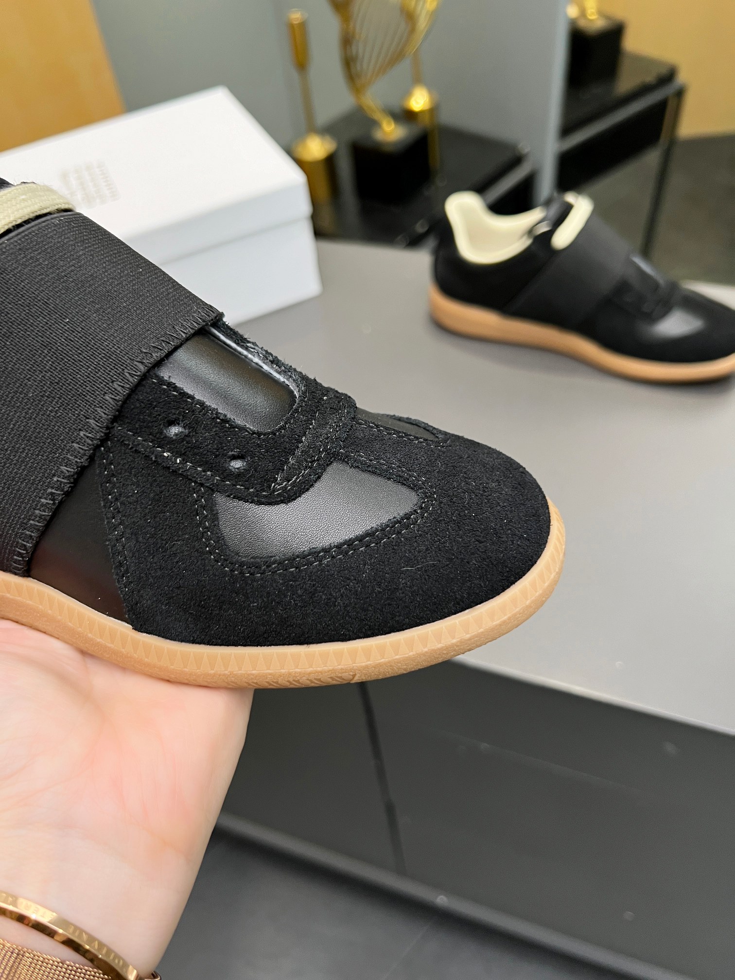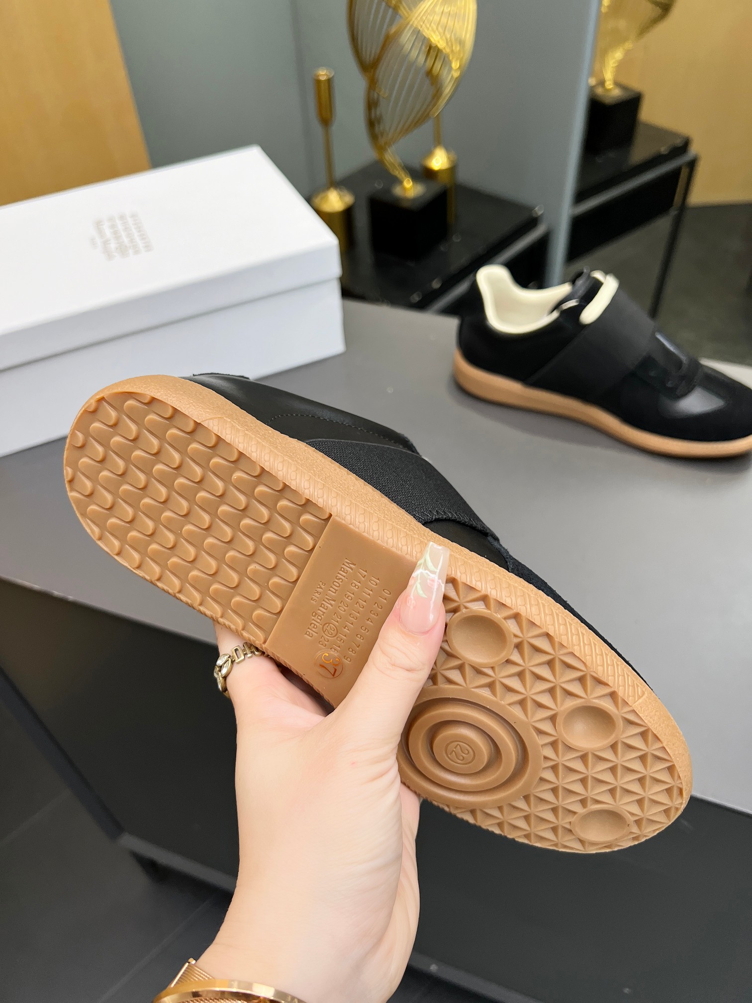 這款鞋子是AAAAA 1:1 質量(非常棒). 使用了和原版一模一樣的材料. 商標部分也保持了和Maison Margiela一樣. 圖片拍攝是實物鞋子拍攝, 您所收到的實物保證和我們圖片一模一樣.