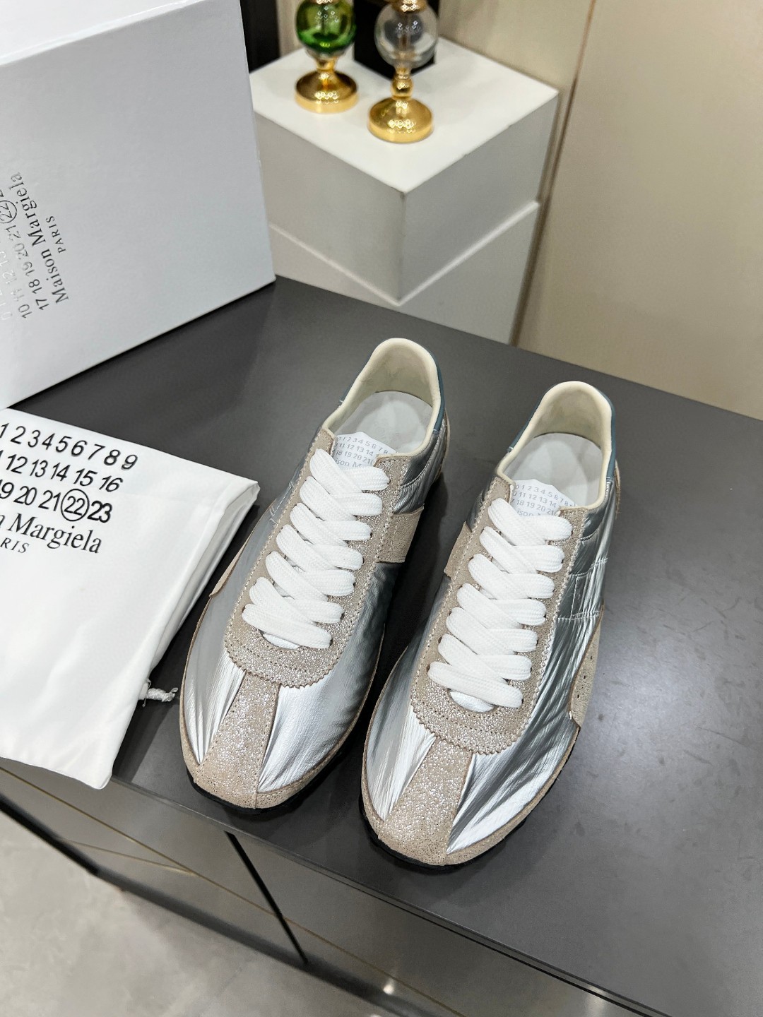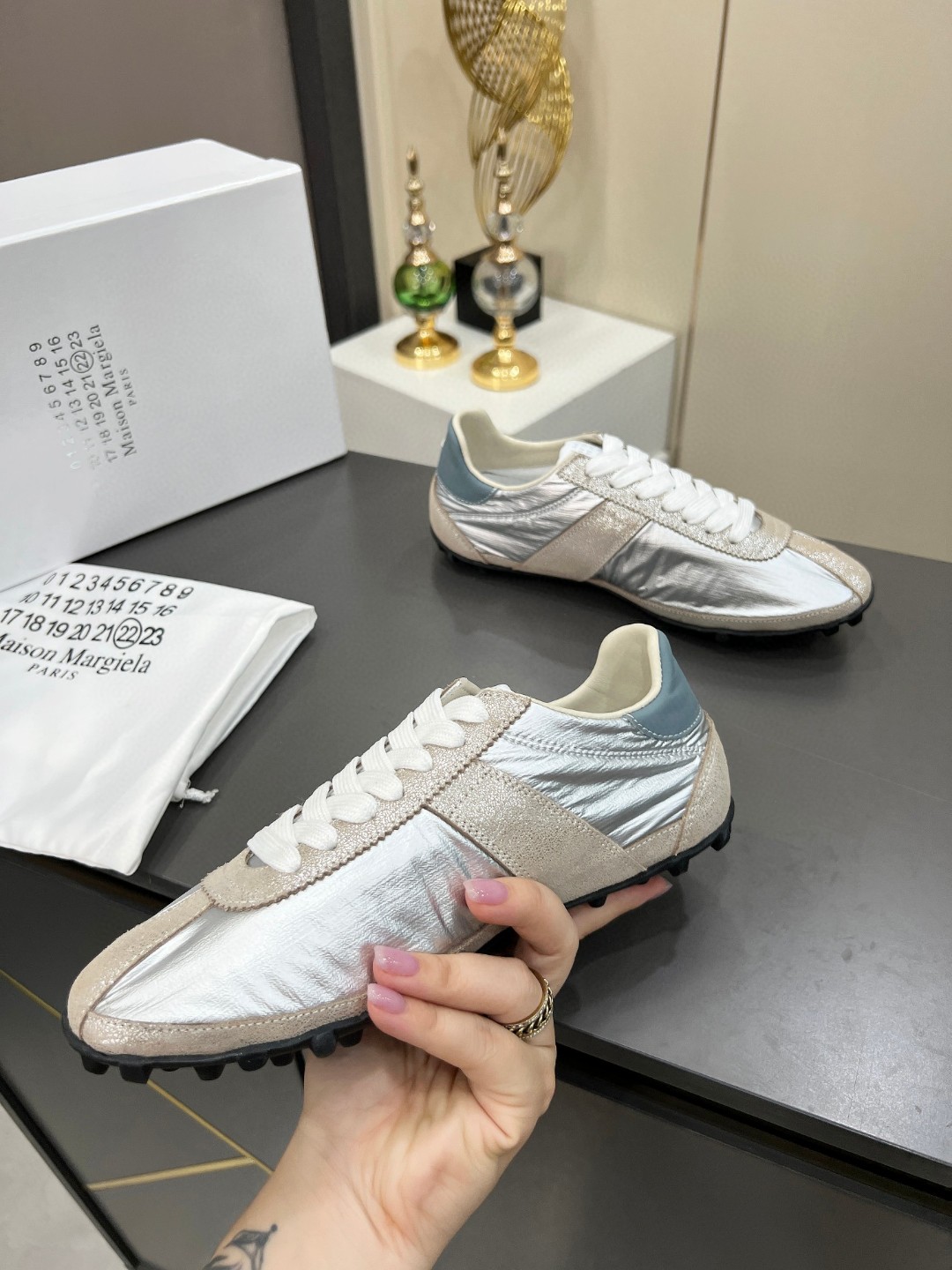 這款鞋子是AAAAA 1:1 質量(非常棒). 使用了和原版一模一樣的材料. 商標部分也保持了和Maison Margiela一樣. 圖片拍攝是實物鞋子拍攝, 您所收到的實物保證和我們圖片一模一樣.