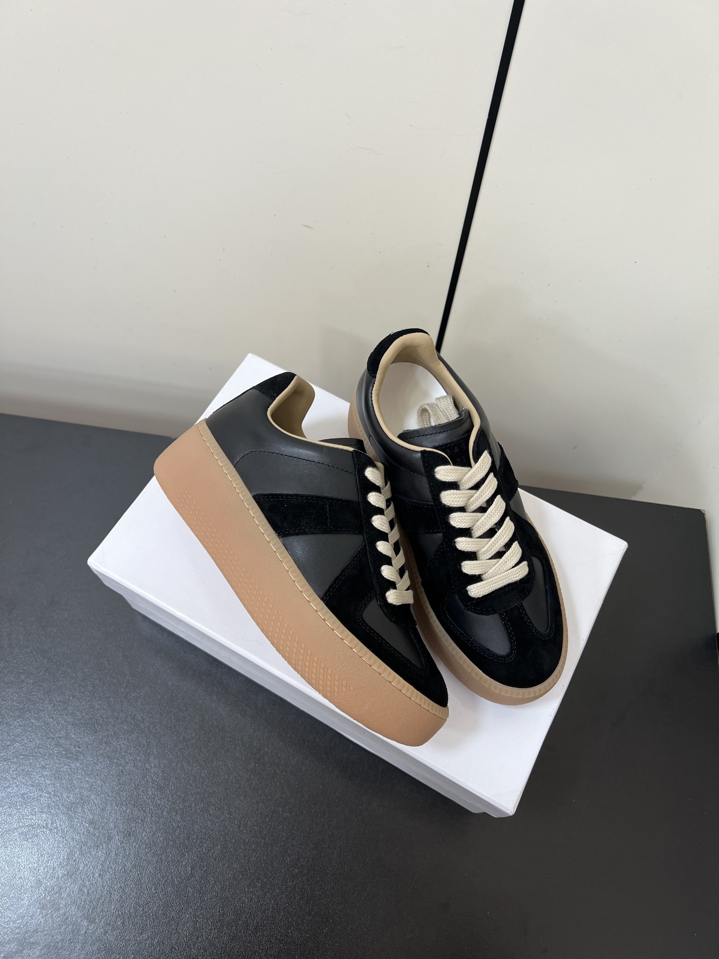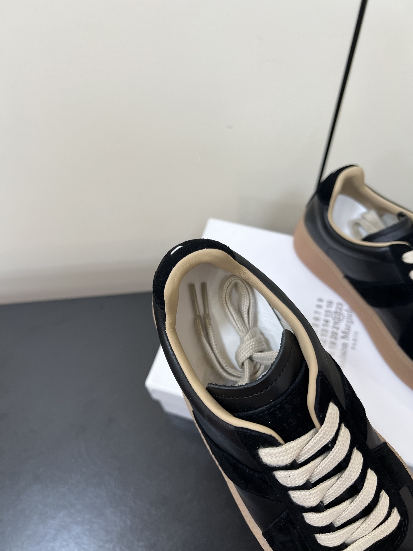 這款鞋子是AAAAA 1:1 質量(非常棒). 使用了和原版一模一樣的材料. 商標部分也保持了和Maison Margiela一樣. 圖片拍攝是實物鞋子拍攝, 您所收到的實物保證和我們圖片一模一樣.