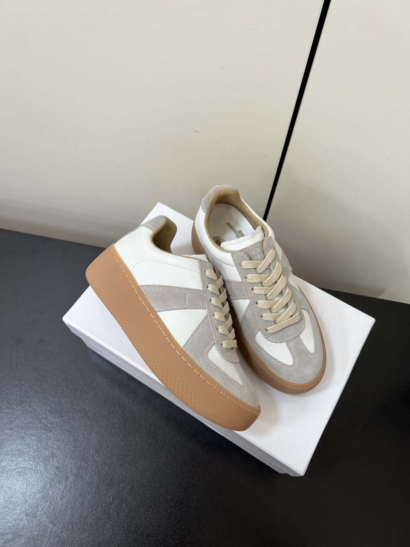 這款鞋子是AAAAA 1:1 質量(非常棒). 使用了和原版一模一樣的材料. 商標部分也保持了和Maison Margiela一樣. 圖片拍攝是實物鞋子拍攝, 您所收到的實物保證和我們圖片一模一樣.