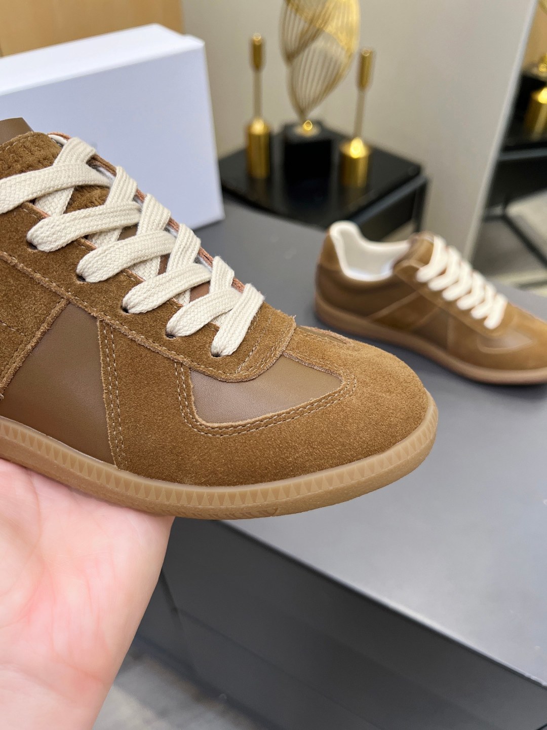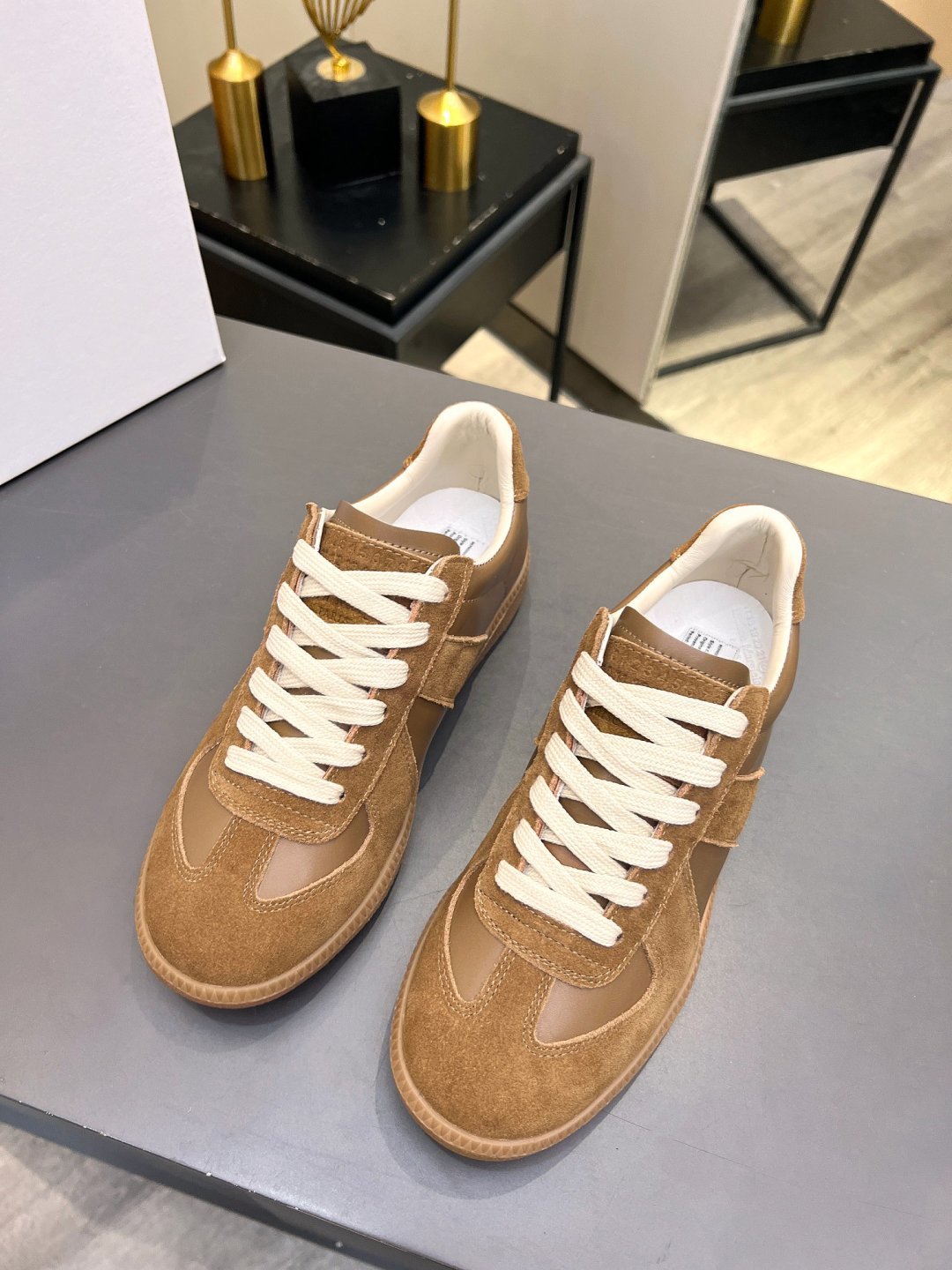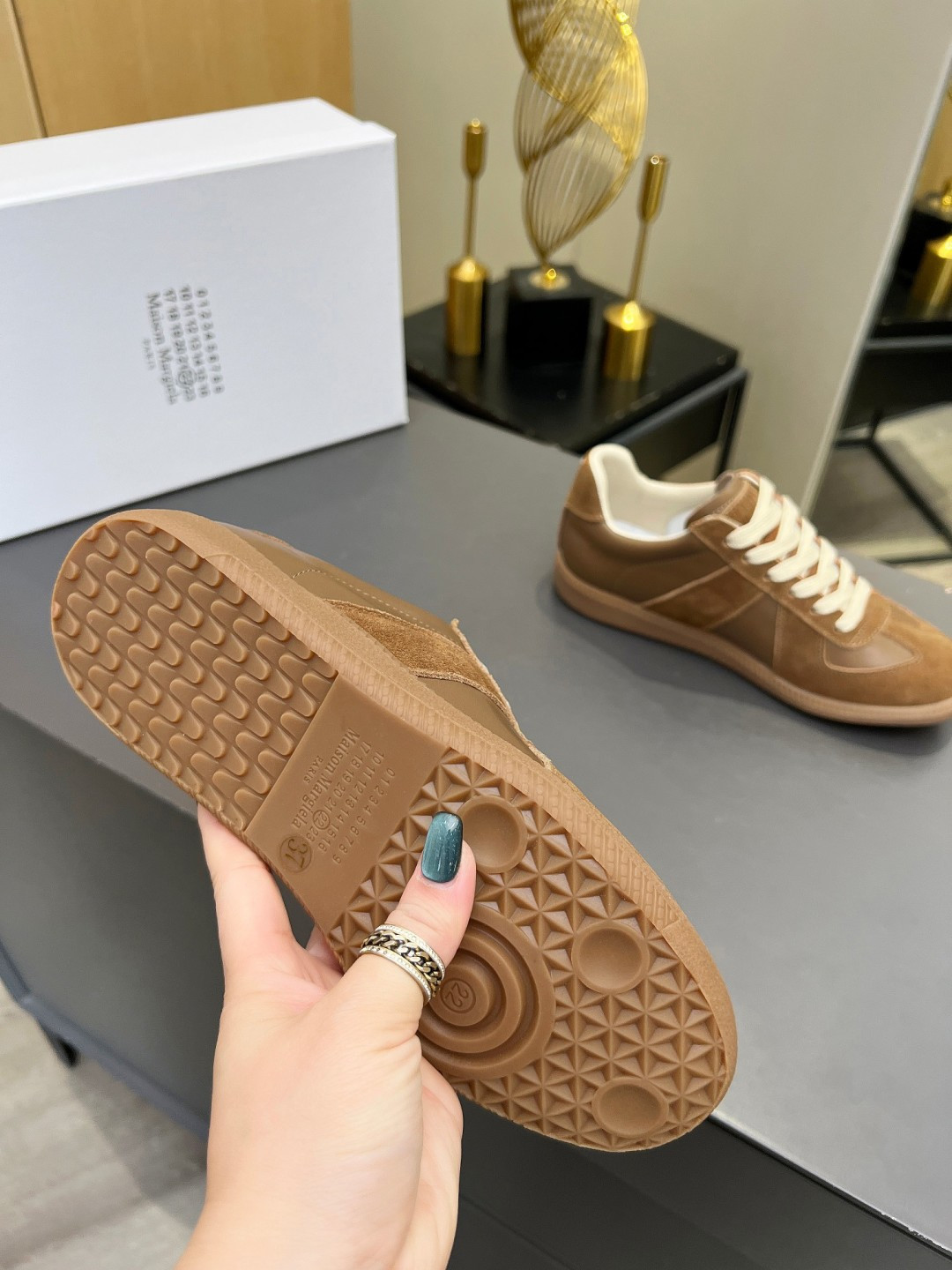 這款鞋子是AAAAA 1:1 質量(非常棒). 使用了和原版一模一樣的材料. 商標部分也保持了和Maison Margiela一樣. 圖片拍攝是實物鞋子拍攝, 您所收到的實物保證和我們圖片一模一樣.