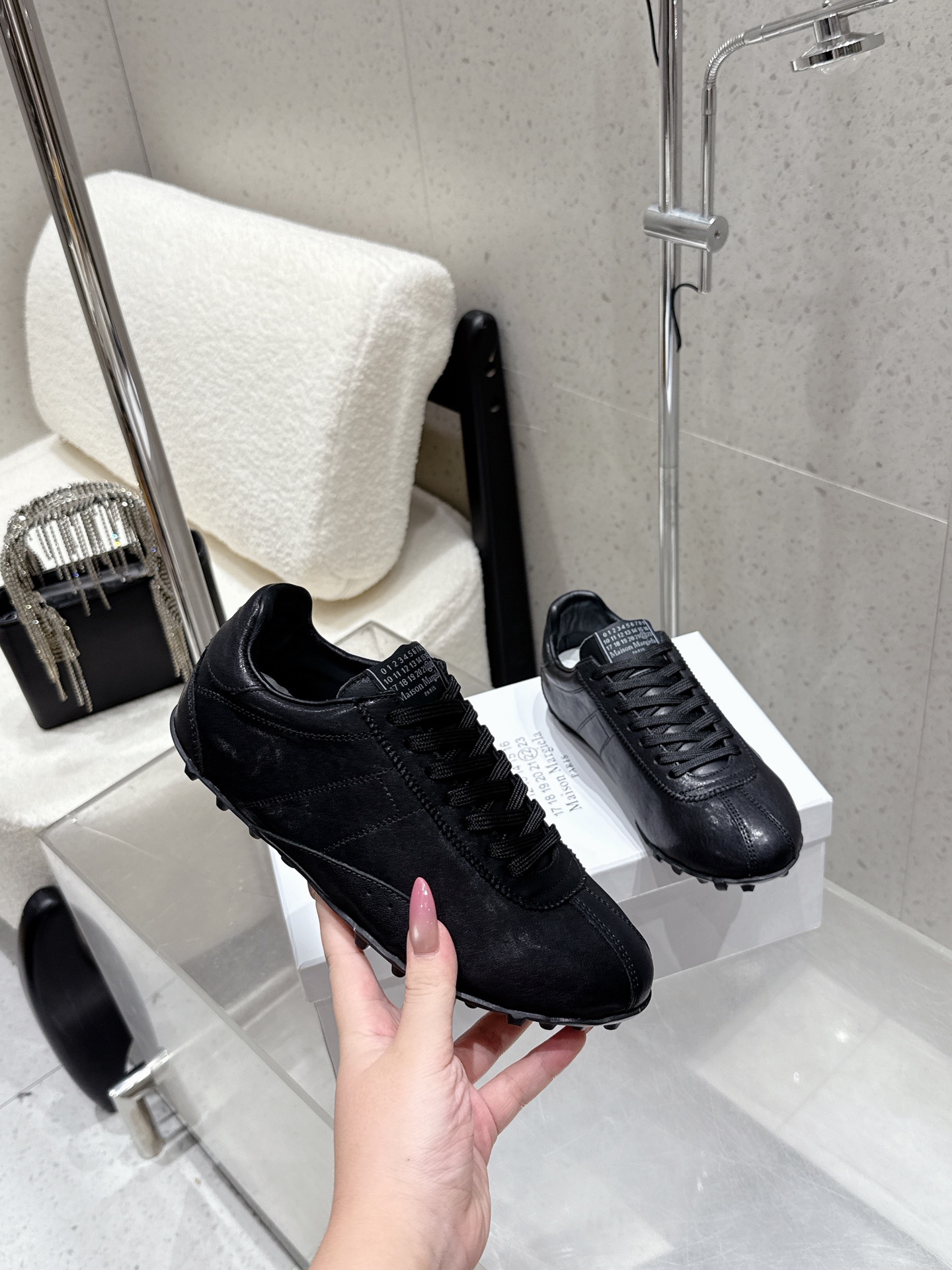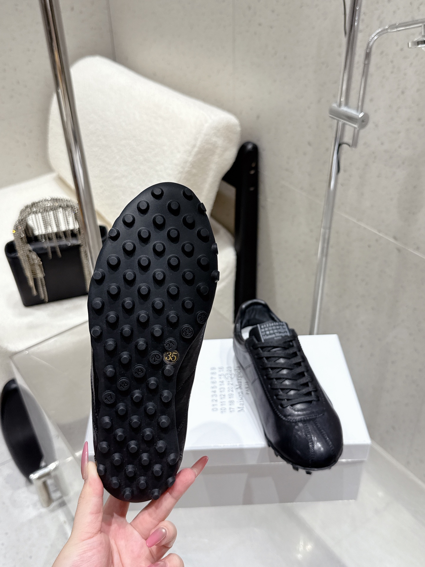 這款鞋子是AAAAA 1:1 質量(非常棒). 使用了和原版一模一樣的材料. 商標部分也保持了和Maison Margiela一樣. 圖片拍攝是實物鞋子拍攝, 您所收到的實物保證和我們圖片一模一樣.