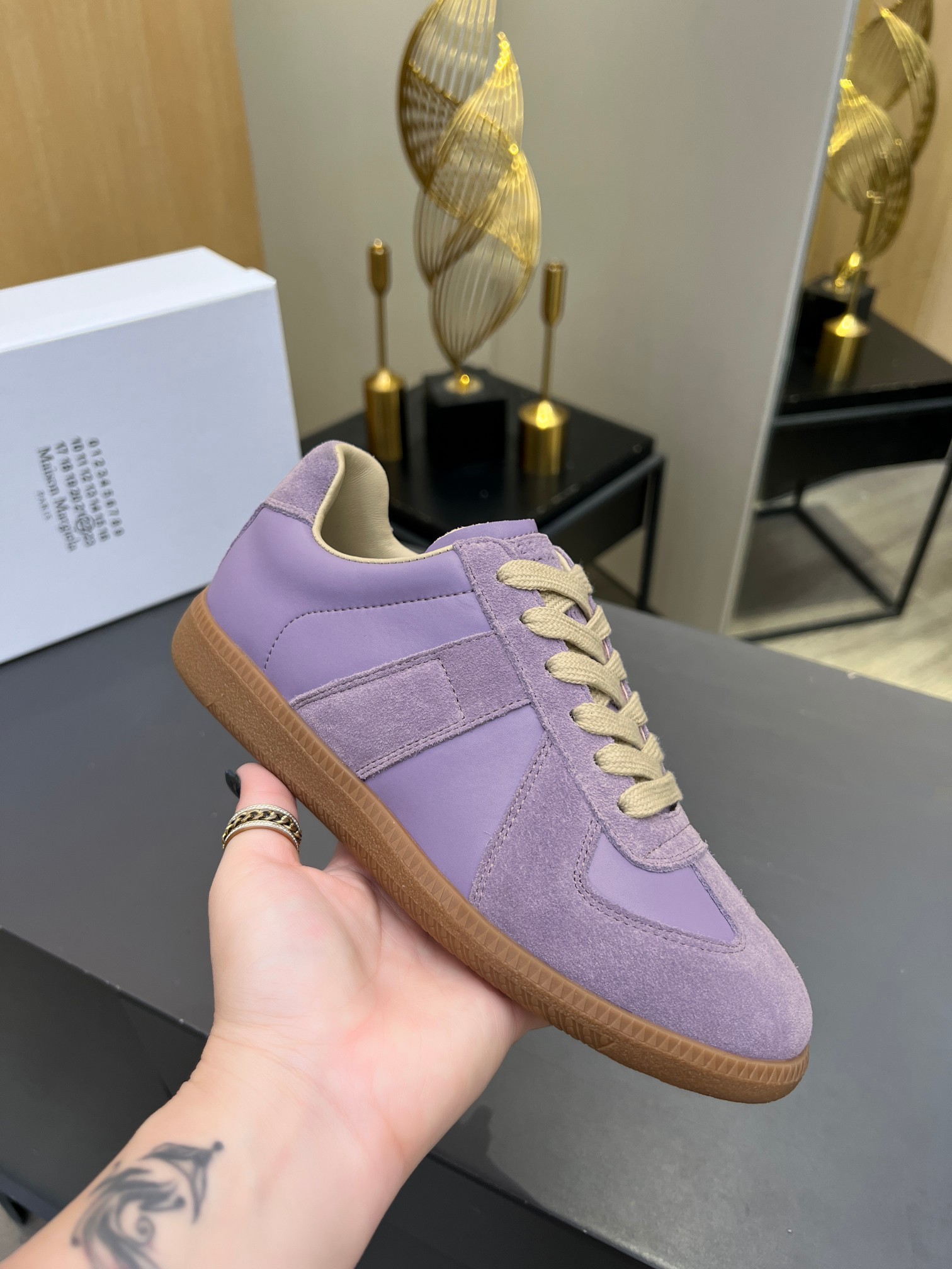 這款鞋子是AAAAA 1:1 質量(非常棒). 使用了和原版一模一樣的材料. 商標部分也保持了和Maison Margiela一樣. 圖片拍攝是實物鞋子拍攝, 您所收到的實物保證和我們圖片一模一樣.