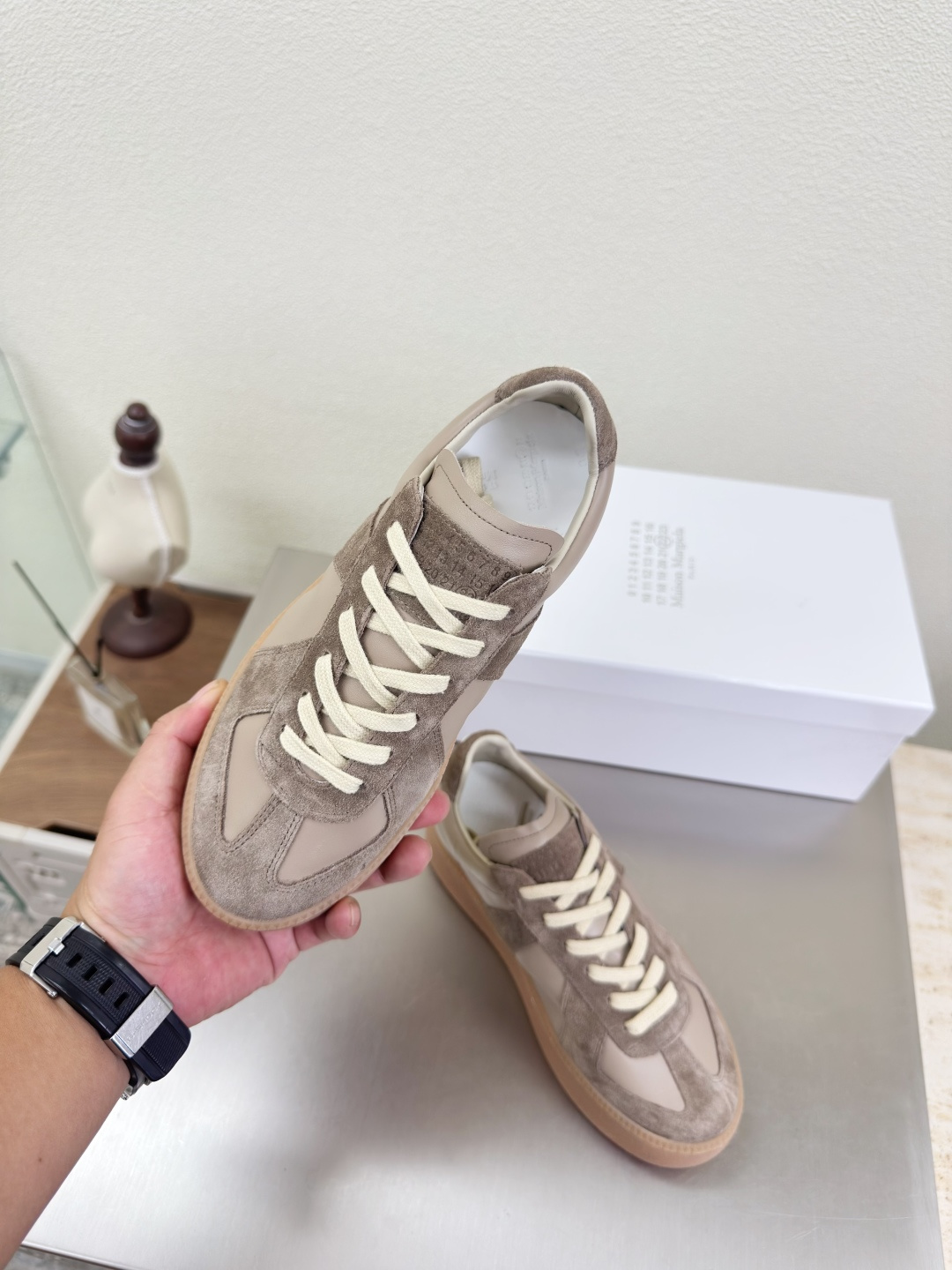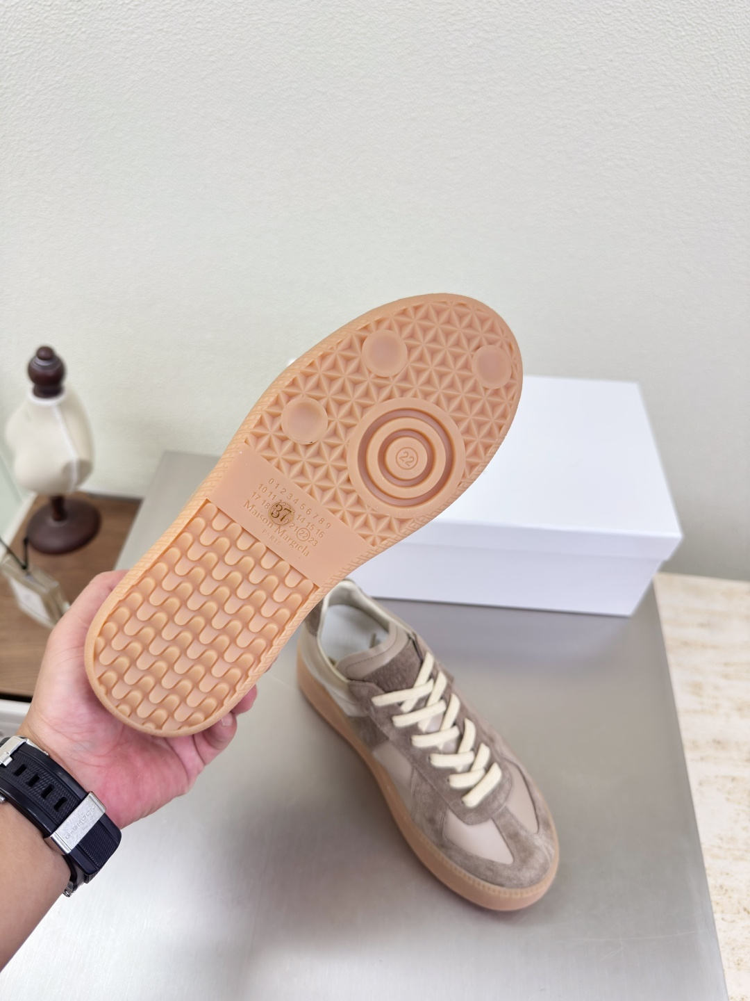這款鞋子是AAAAA 1:1 質量(非常棒). 使用了和原版一模一樣的材料. 商標部分也保持了和Maison Margiela一樣. 圖片拍攝是實物鞋子拍攝, 您所收到的實物保證和我們圖片一模一樣.
