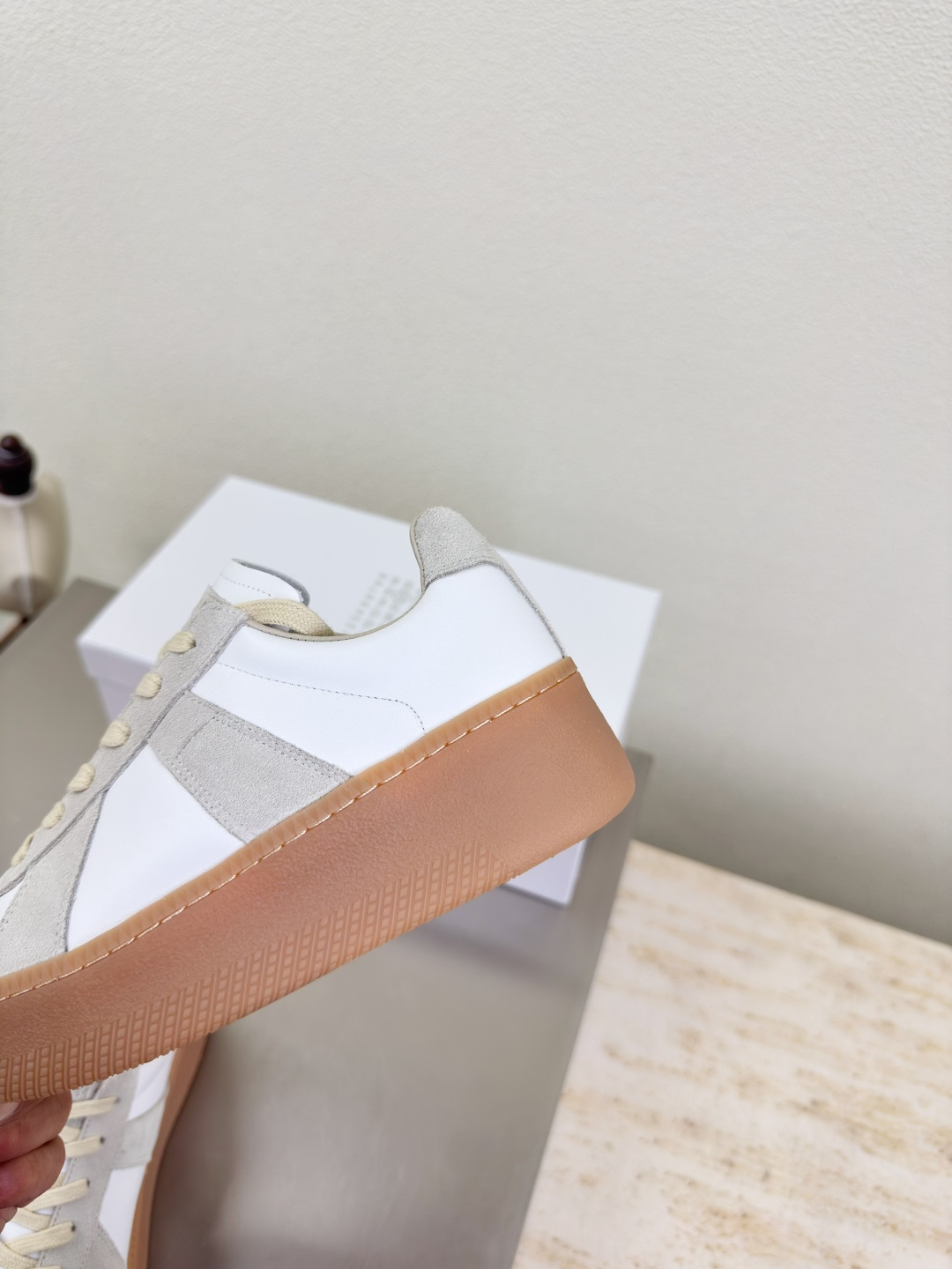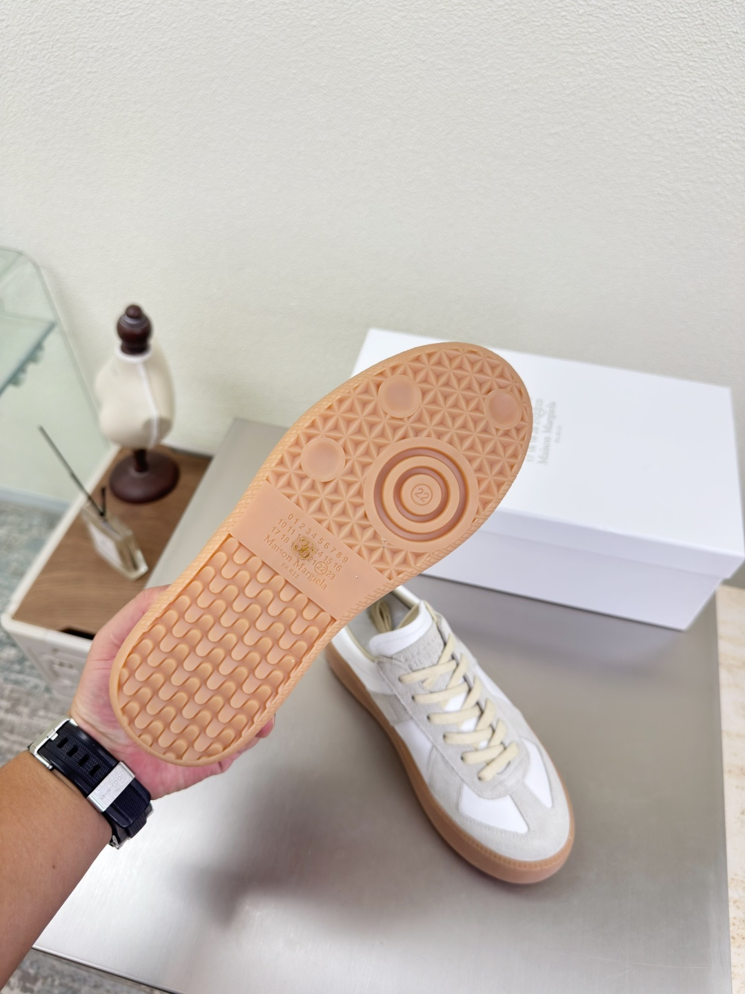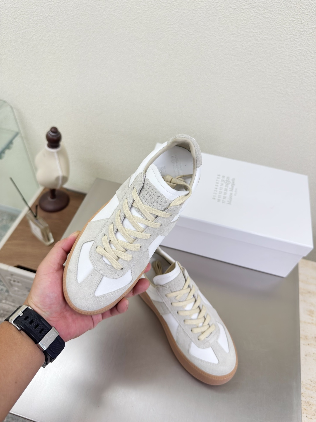 這款鞋子是AAAAA 1:1 質量(非常棒). 使用了和原版一模一樣的材料. 商標部分也保持了和Maison Margiela一樣. 圖片拍攝是實物鞋子拍攝, 您所收到的實物保證和我們圖片一模一樣.