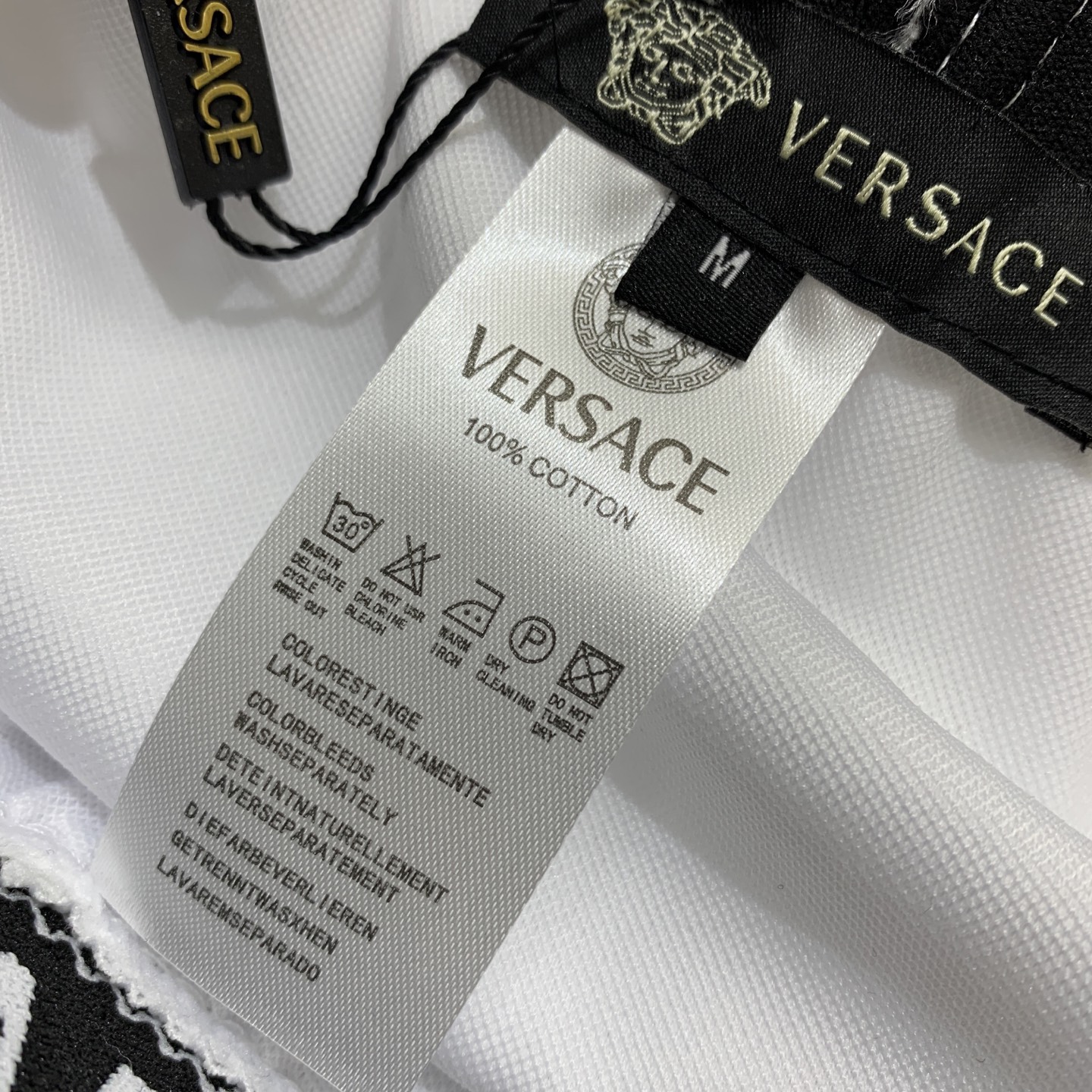 這款衣服是AAAAA 1:1 質量(非常棒). 使用了和原版一模一樣的材料. 商標部分也保持了和范思哲/Versace一樣. 圖片拍攝是實物衣服拍攝, 您所收到的實物保證和我們圖片一模一樣.
