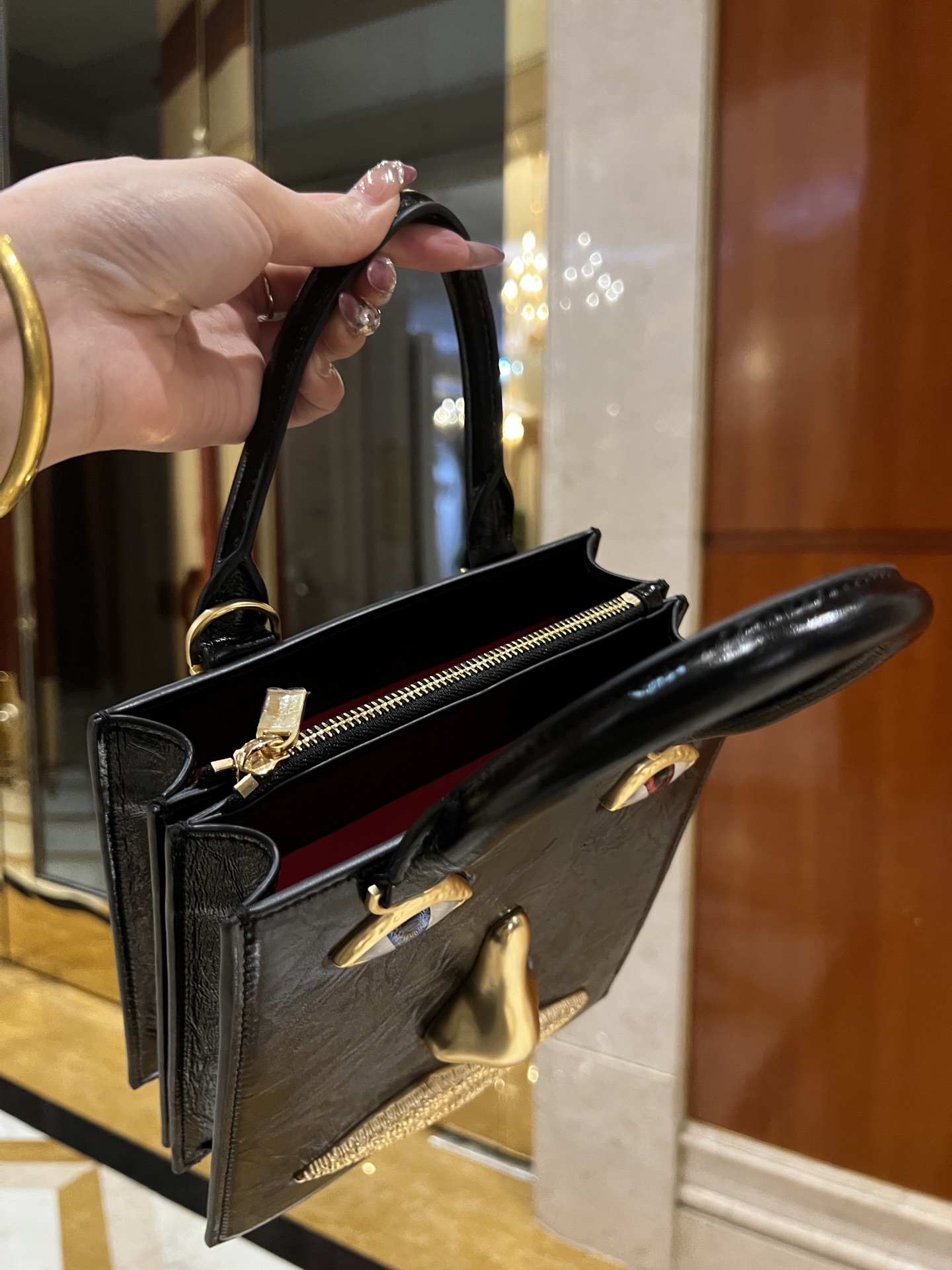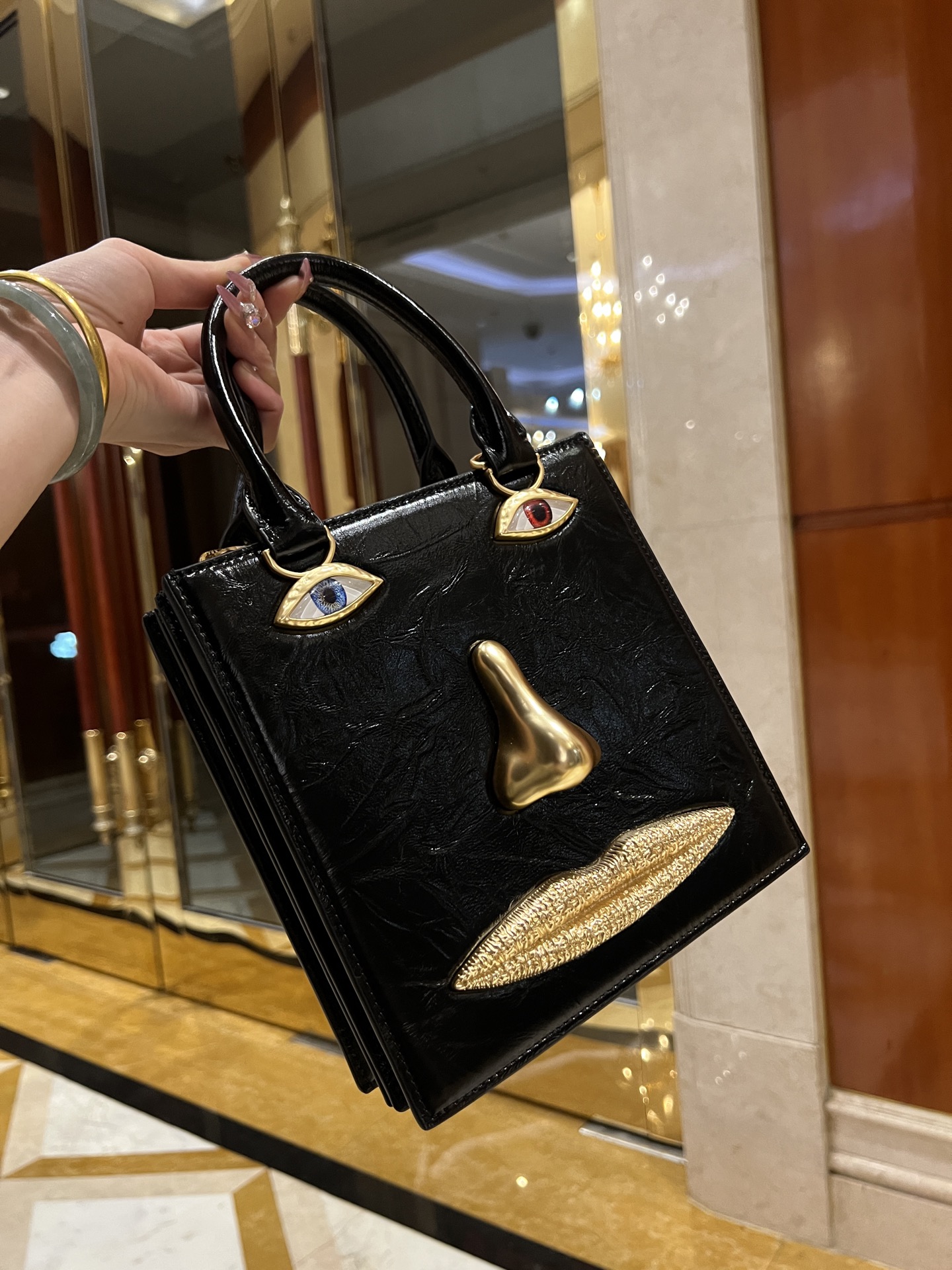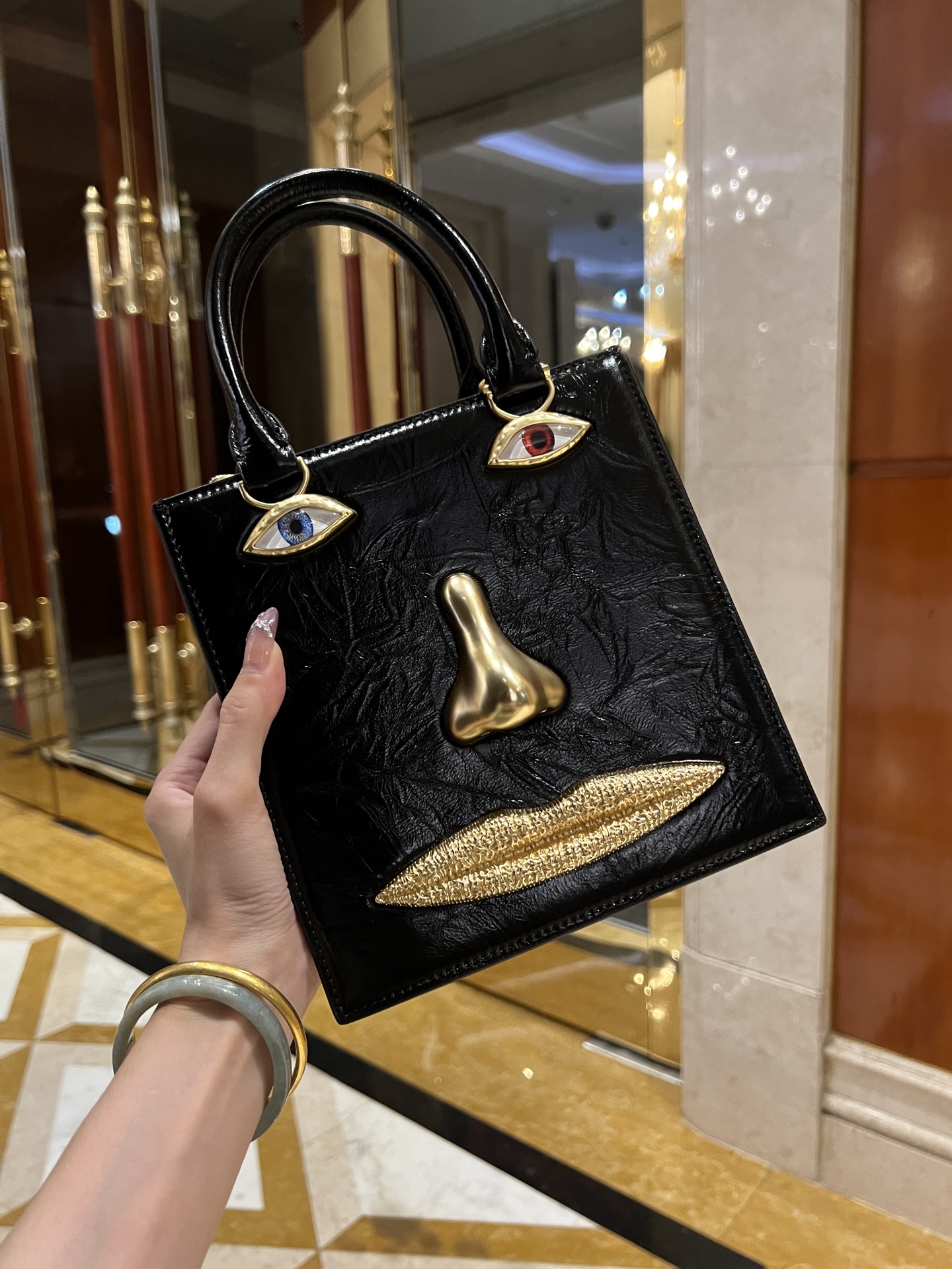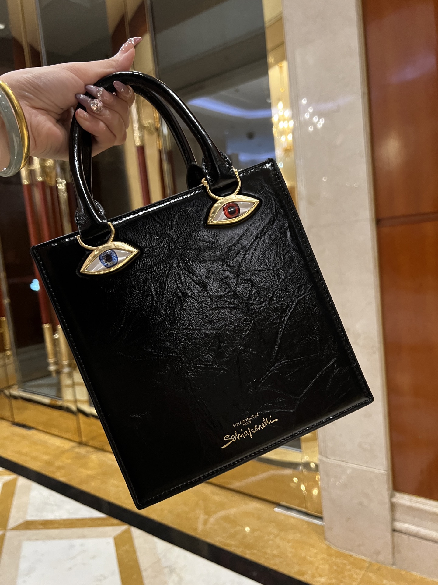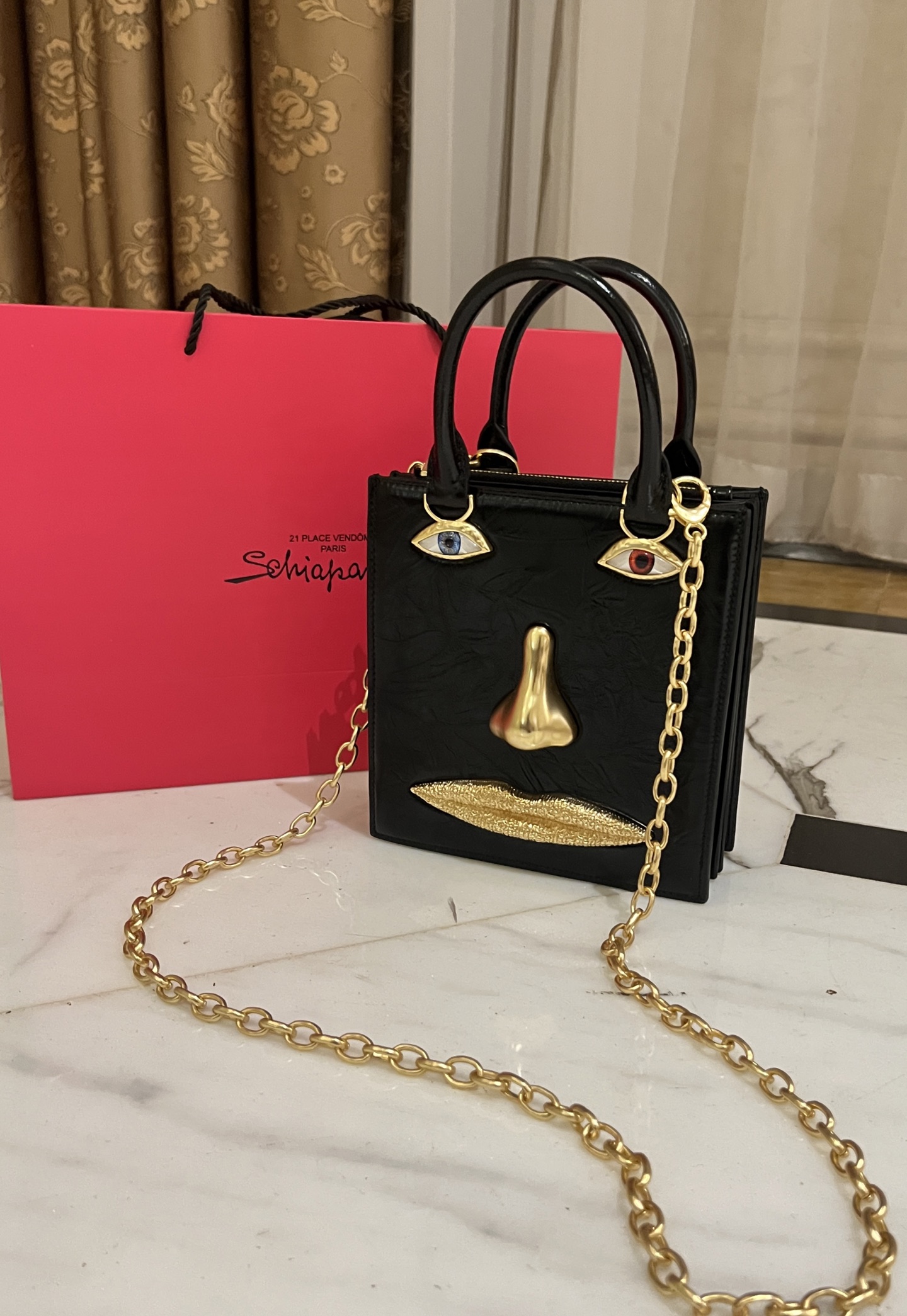 這款包包是AAAAA 1:1 質量(非常棒). 使用了和原版一模一樣的材料. 商標部分也保持了和Schiaparelli一樣. 圖片拍攝是實物包包拍攝, 您所收到的實物保證和我們圖片一模一樣.