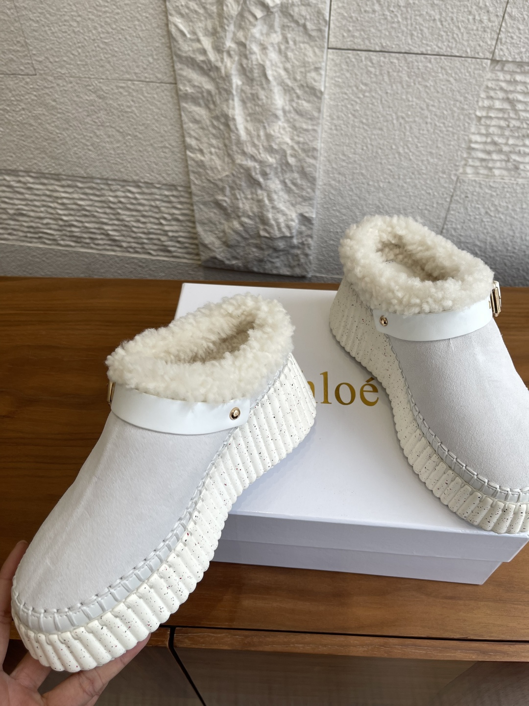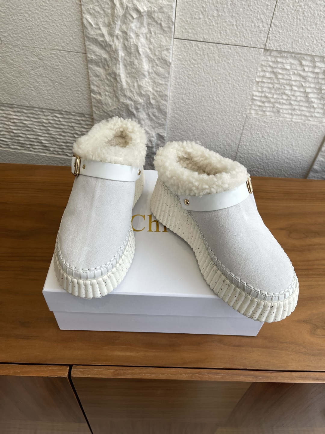 這款鞋子是AAAAA 1:1 質量(非常棒). 使用了和原版一模一樣的材料. 商標部分也保持了和克洛伊/Chloe一樣. 圖片拍攝是實物鞋子拍攝, 您所收到的實物保證和我們圖片一模一樣.