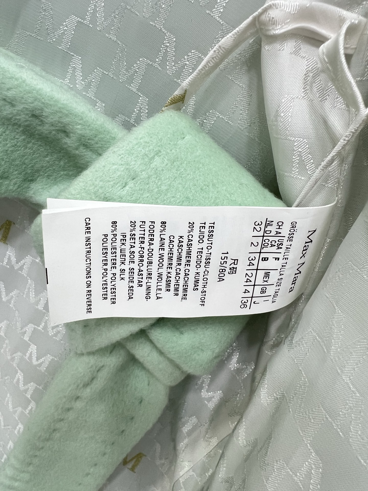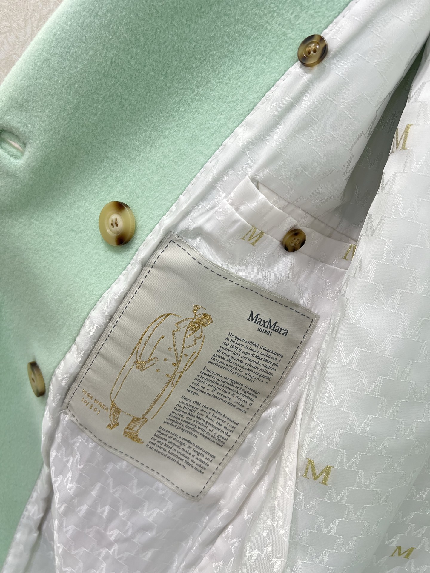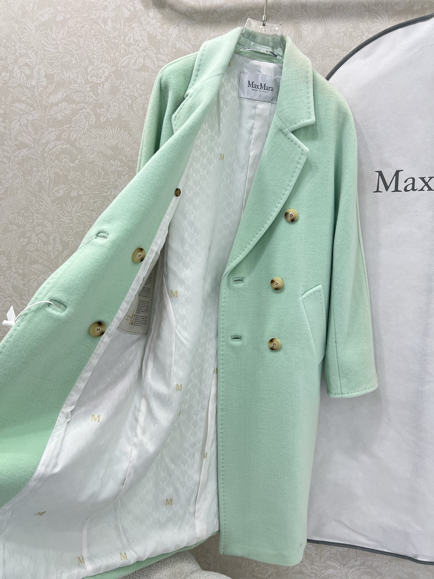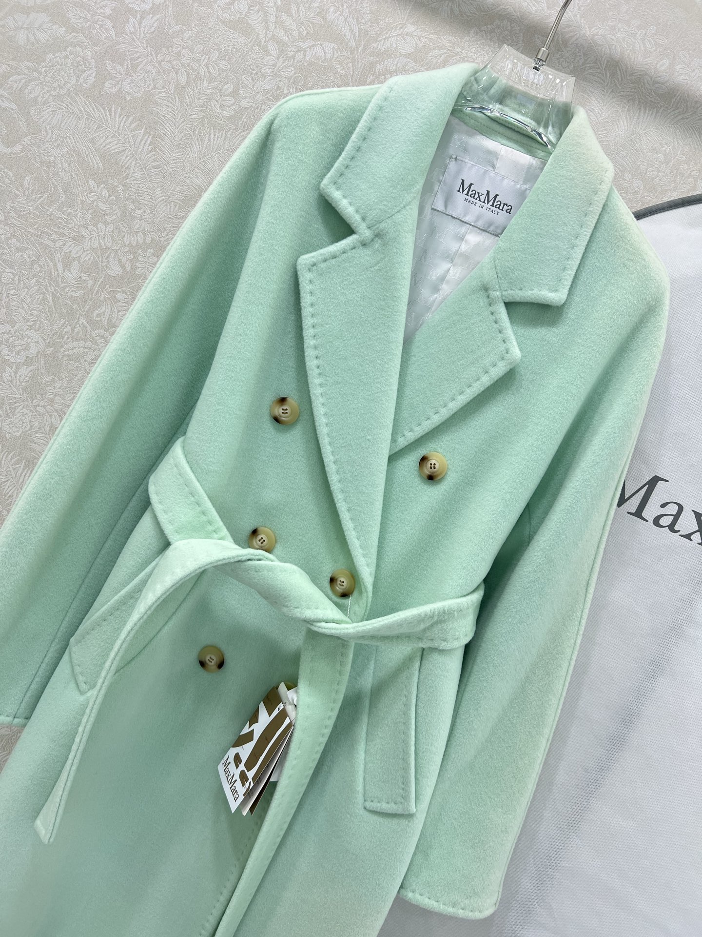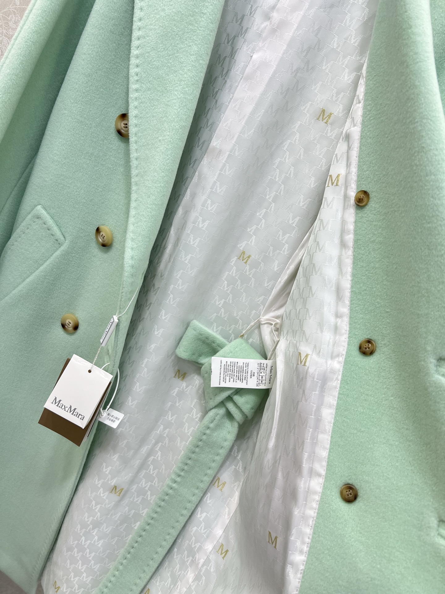 這款衣服是AAAAA 1:1 質量(非常棒). 使用了和原版一模一樣的材料. 商標部分也保持了和Max Mara一樣. 圖片拍攝是實物衣服拍攝, 您所收到的實物保證和我們圖片一模一樣.