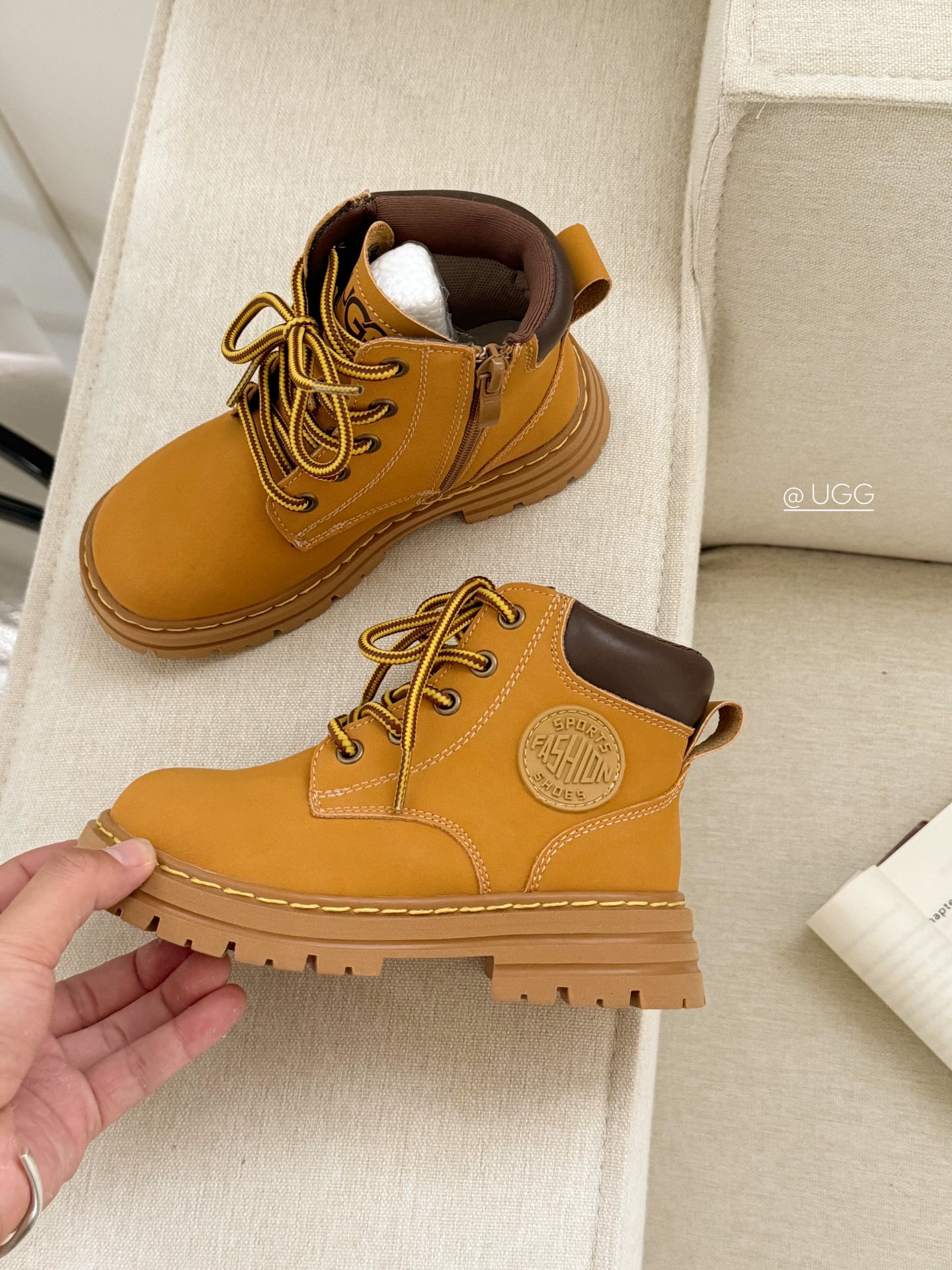 這款儿童鞋是AAAAA 1:1 質量(非常棒). 使用了和原版一模一樣的材料. 商標部分也保持了和UGG一樣. 圖片拍攝是實物儿童鞋拍攝, 您所收到的實物保證和我們圖片一模一樣.