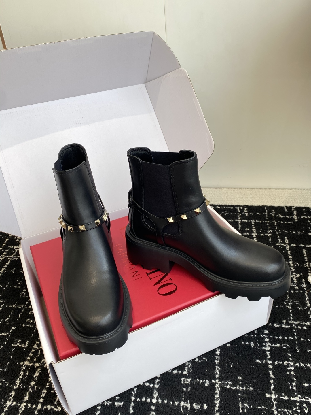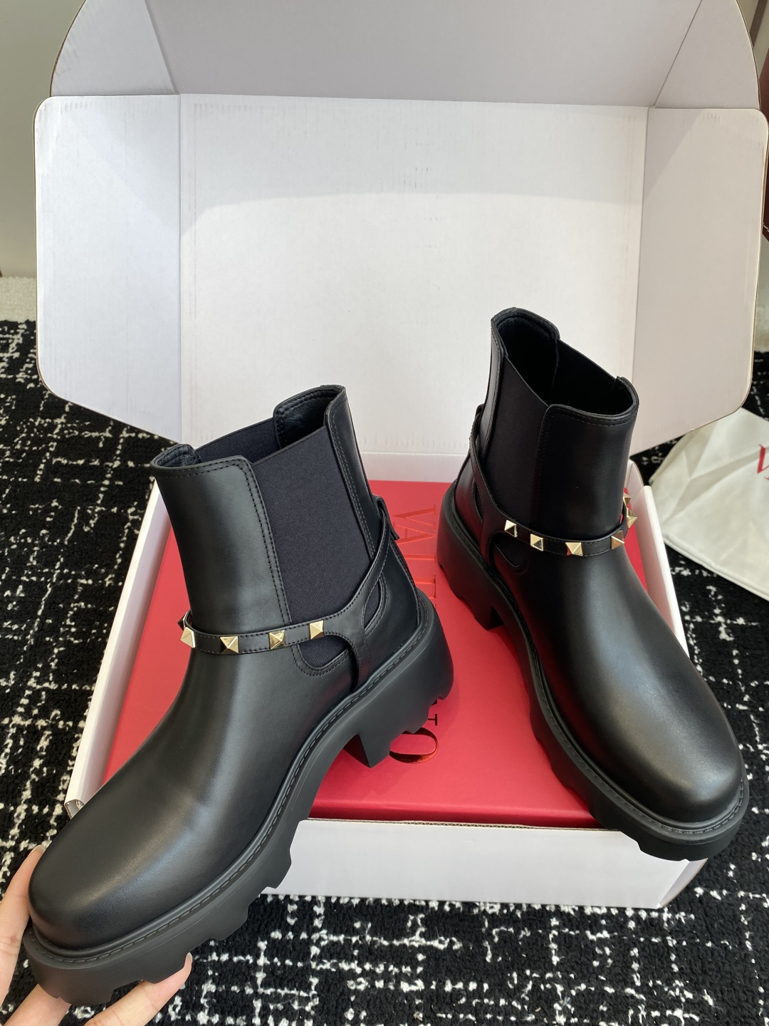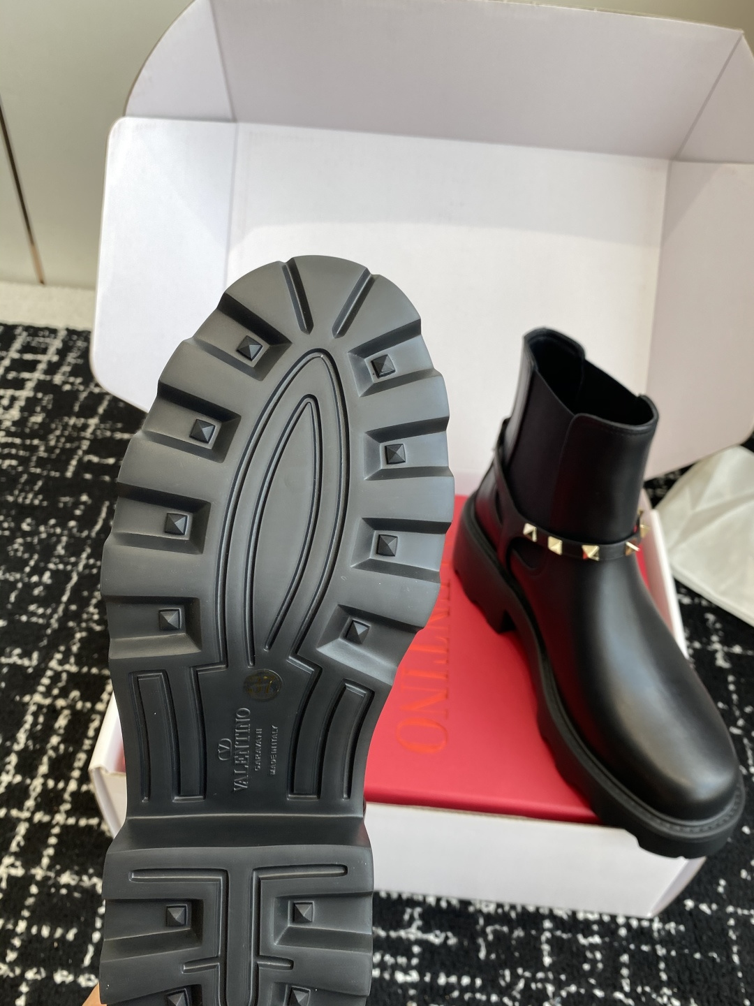 這款鞋子是AAAAA 1:1 質量(非常棒). 使用了和原版一模一樣的材料. 商標部分也保持了和瓦倫蒂諾/Valentino一樣. 圖片拍攝是實物鞋子拍攝, 您所收到的實物保證和我們圖片一模一樣.