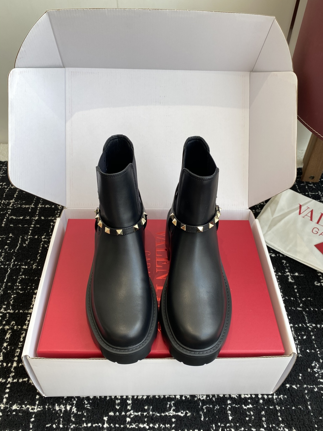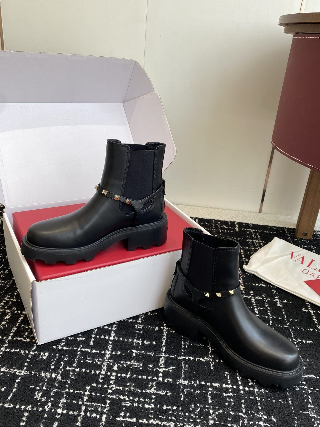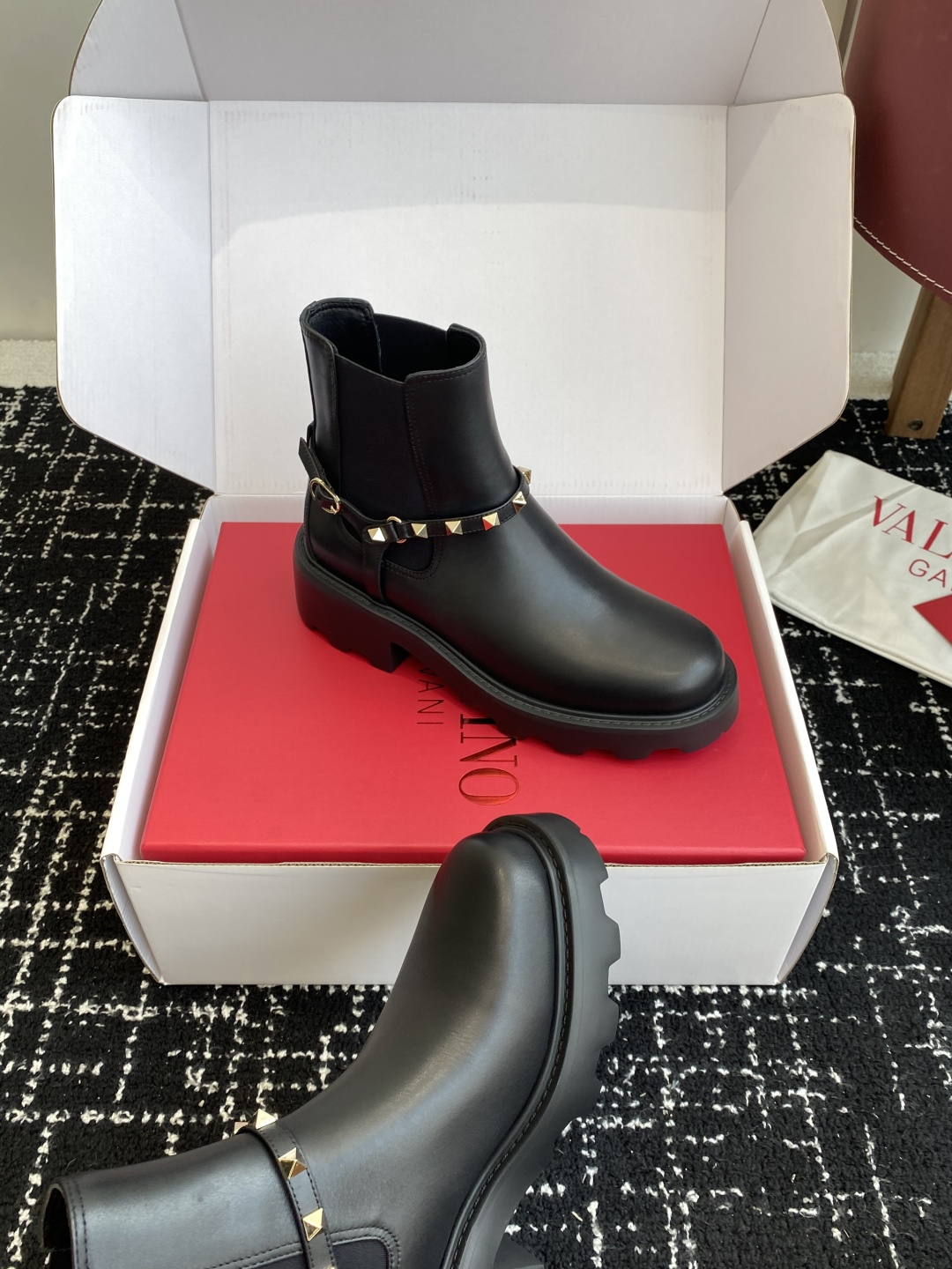 這款鞋子是AAAAA 1:1 質量(非常棒). 使用了和原版一模一樣的材料. 商標部分也保持了和瓦倫蒂諾/Valentino一樣. 圖片拍攝是實物鞋子拍攝, 您所收到的實物保證和我們圖片一模一樣.
