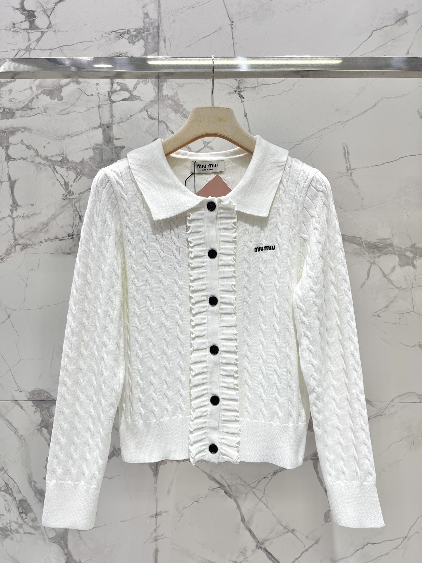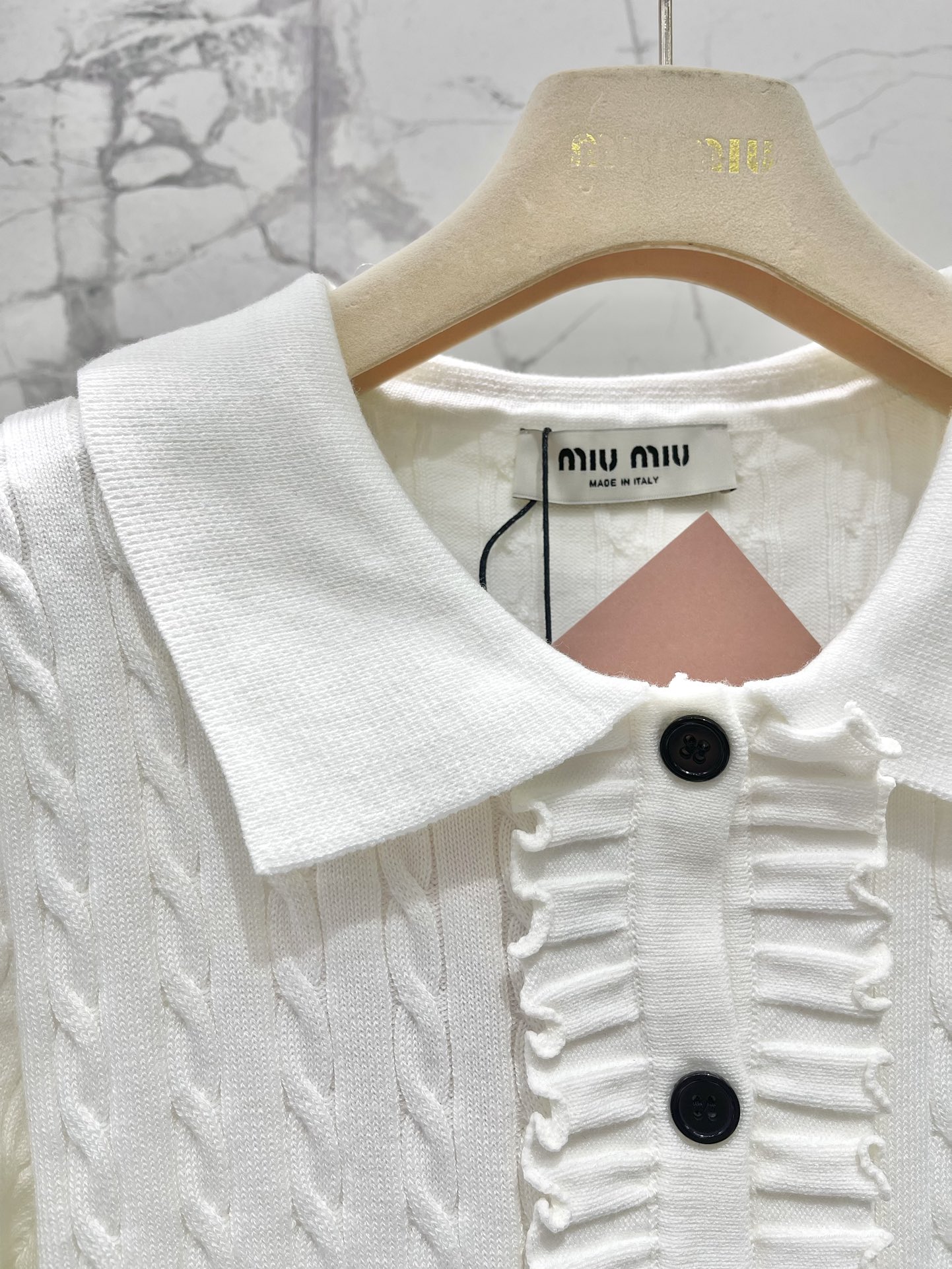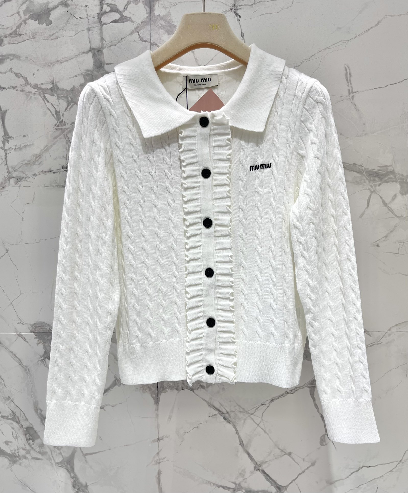 這款衣服是AAAAA 1:1 質量(非常棒). 使用了和原版一模一樣的材料. 商標部分也保持了和繆繆/Miu Miu一樣. 圖片拍攝是實物衣服拍攝, 您所收到的實物保證和我們圖片一模一樣.