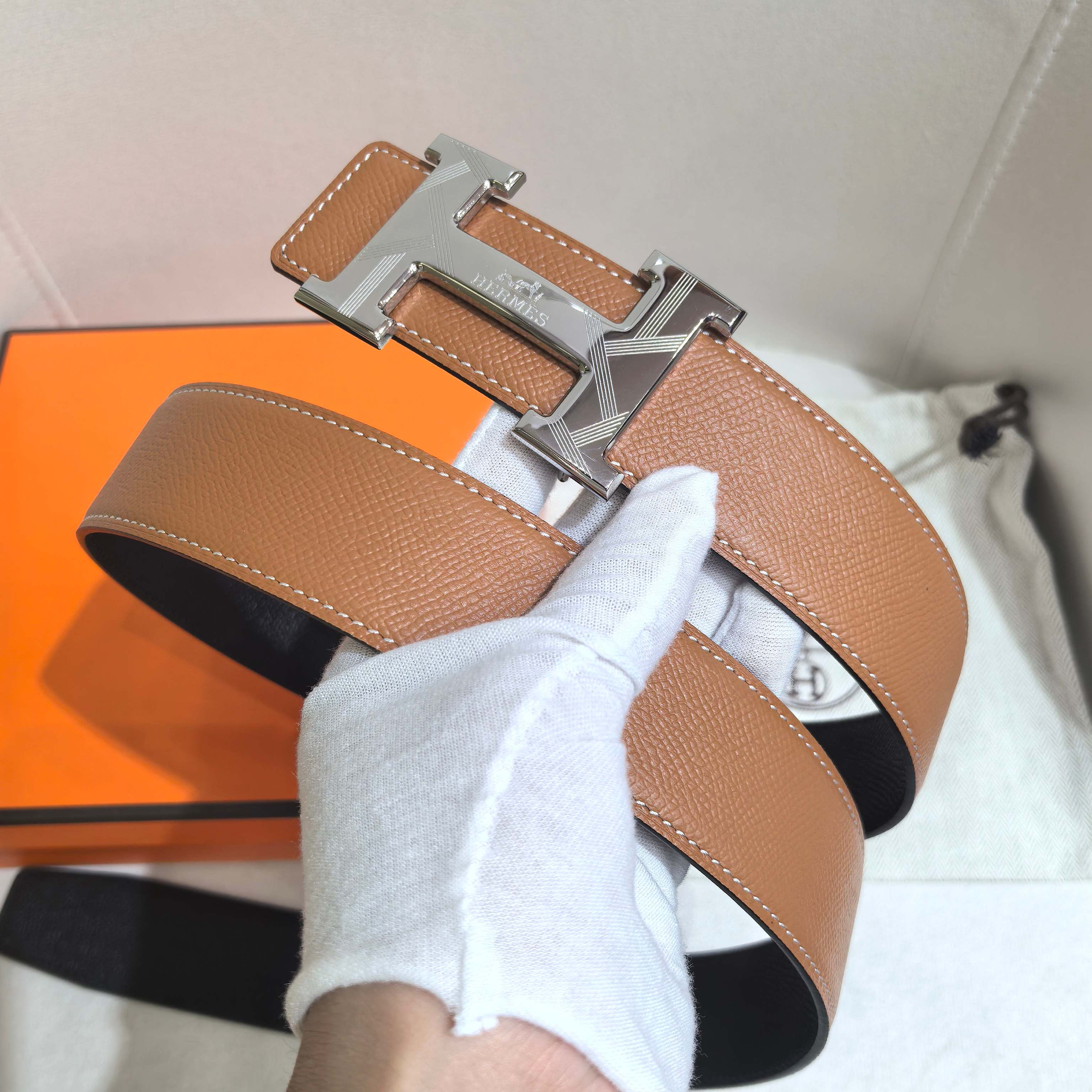 這款皮帶是AAAAA 1:1 質量(非常棒). 使用了和原版一模一樣的材料. 商標部分也保持了和愛馬仕/Hermes一樣. 圖片拍攝是實物皮帶拍攝, 您所收到的實物保證和我們圖片一模一樣.