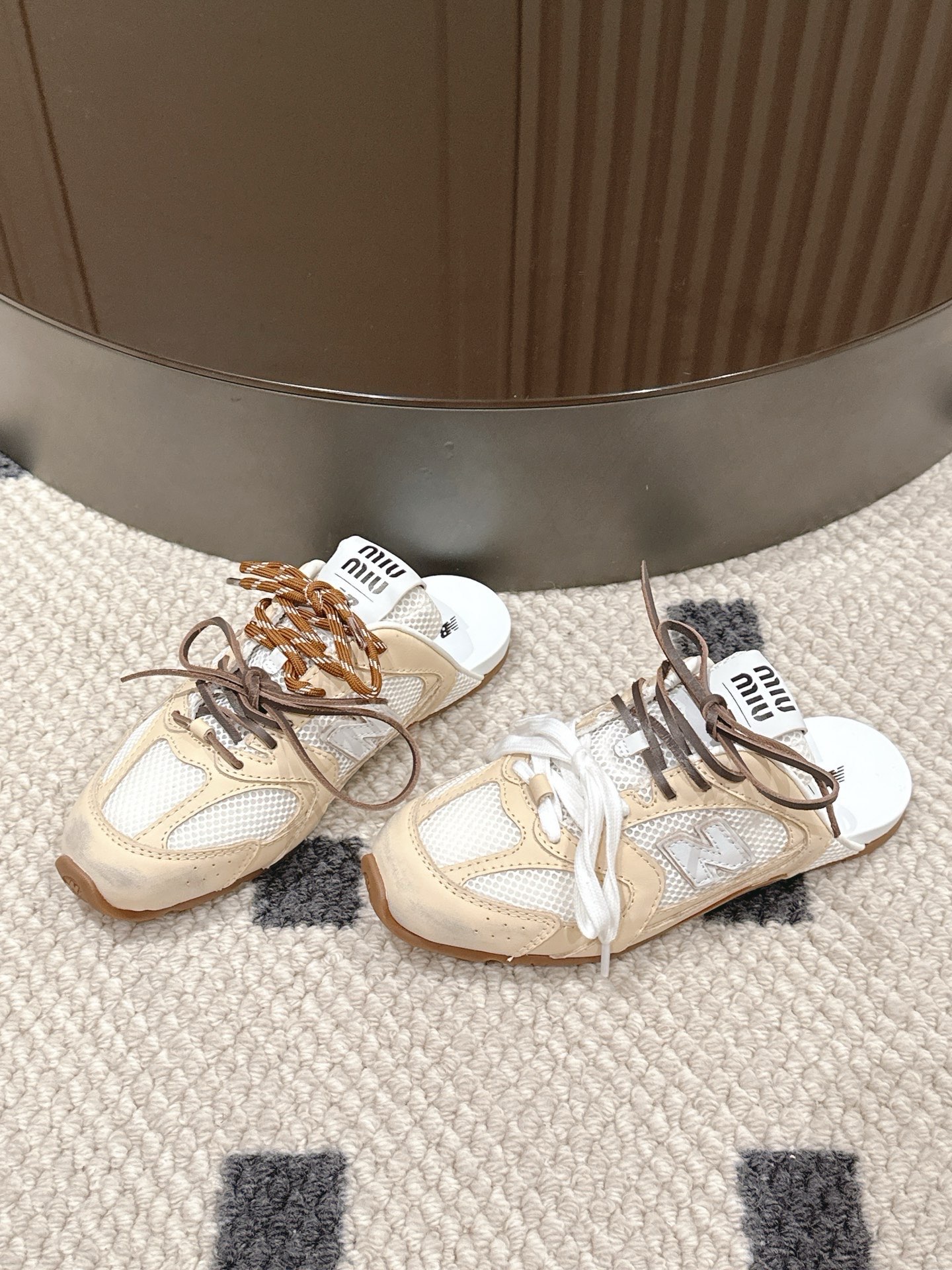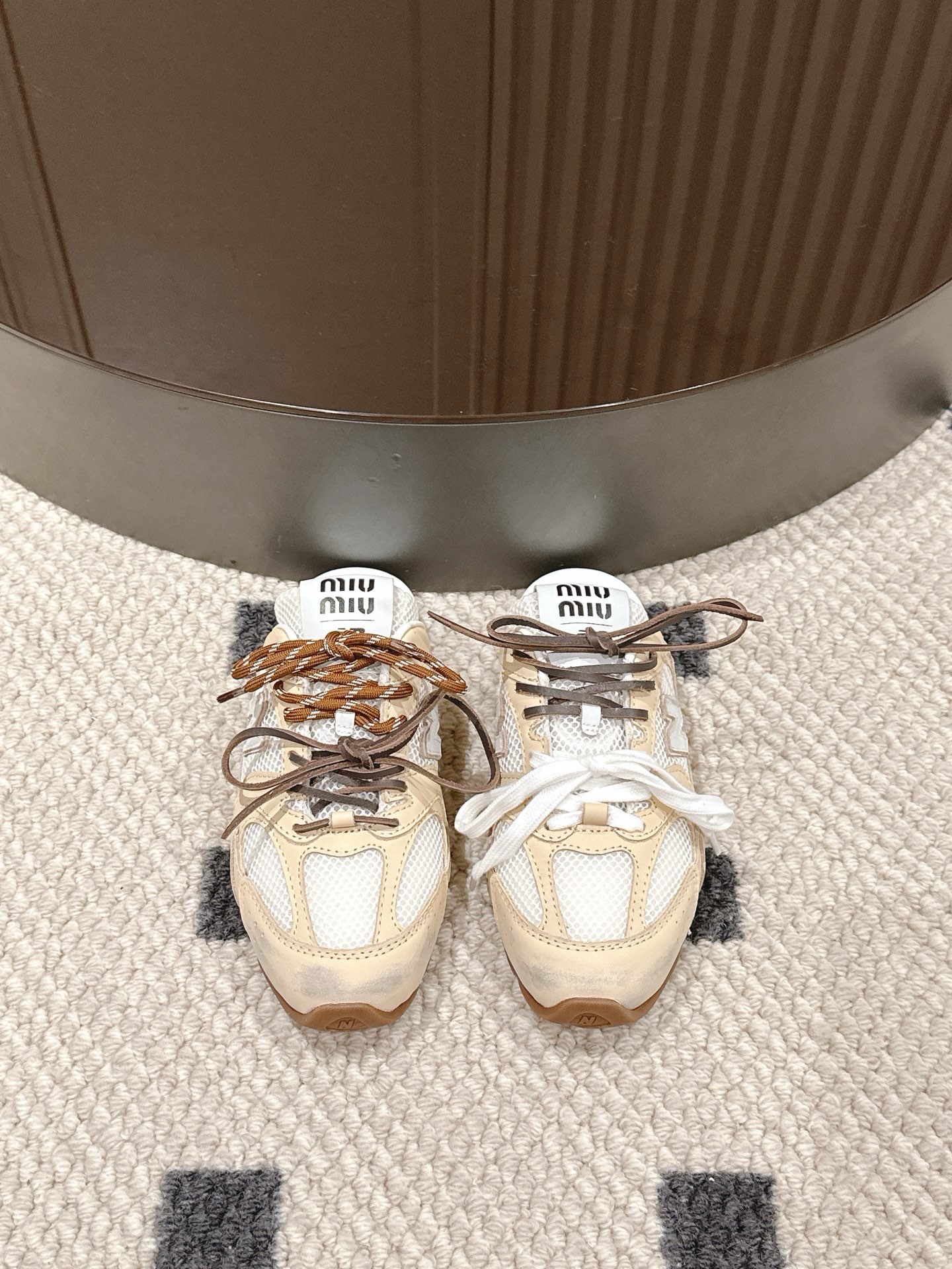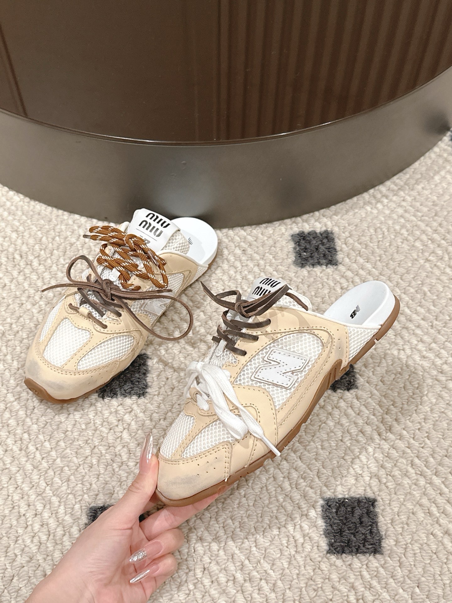 這款鞋子是AAAAA 1:1 質量(非常棒). 使用了和原版一模一樣的材料. 商標部分也保持了和繆繆/Miu Miu一樣. 圖片拍攝是實物鞋子拍攝, 您所收到的實物保證和我們圖片一模一樣.