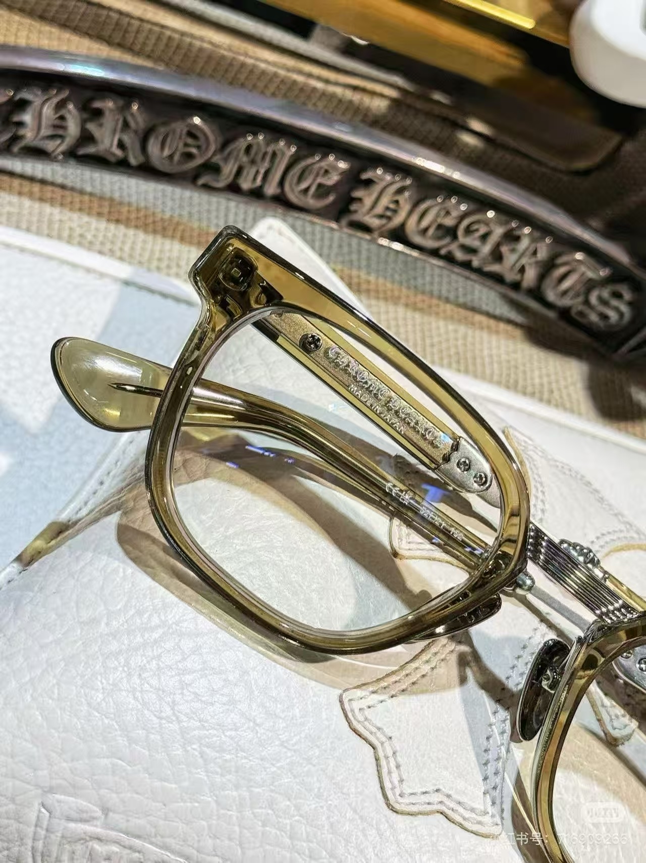 這款太陽眼鏡是AAAAA 1:1 質量(非常棒). 使用了和原版一模一樣的材料. 商標部分也保持了和鉻心/Chrome Hearts一樣. 圖片拍攝是實物太陽眼鏡拍攝, 您所收到的實物保證和我們圖片一模一樣.
