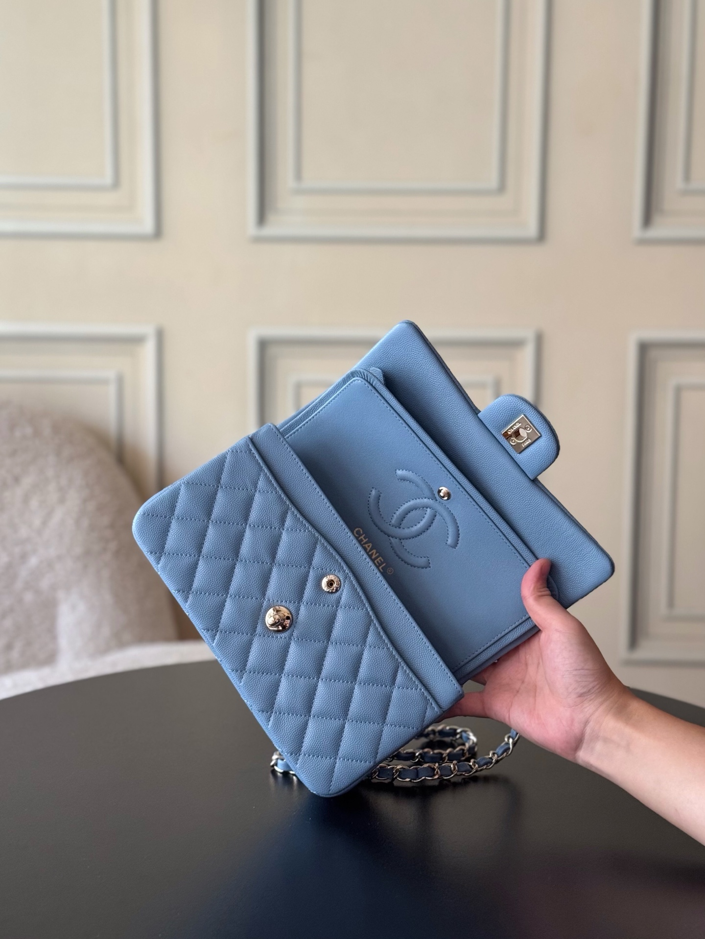 這款包包是AAAAA 1:1 質量(非常棒). 使用了和原版一模一樣的材料. 商標部分也保持了和香奈兒/Chanel一樣. 圖片拍攝是實物包包拍攝, 您所收到的實物保證和我們圖片一模一樣.